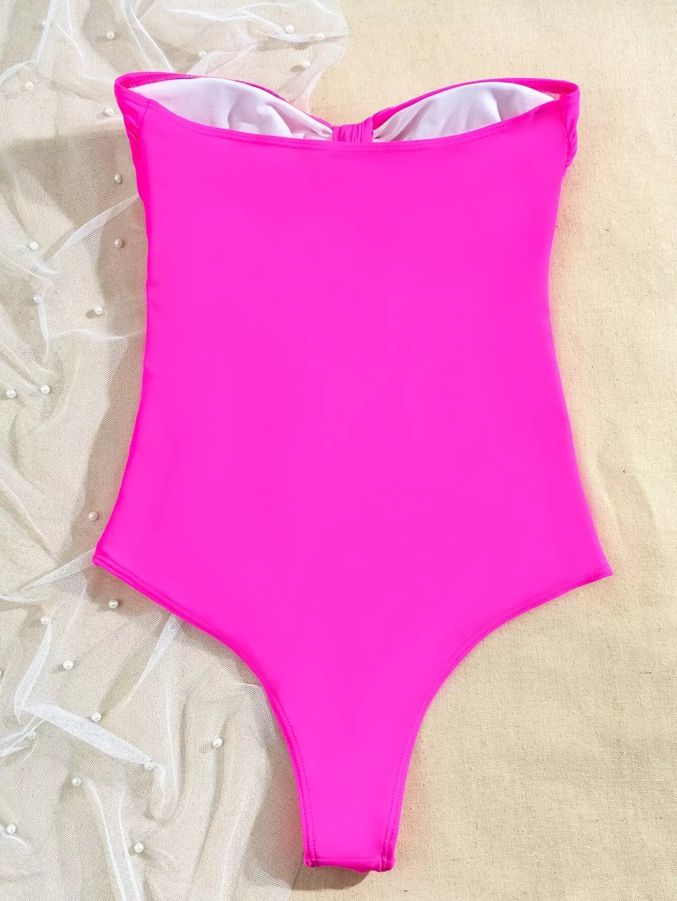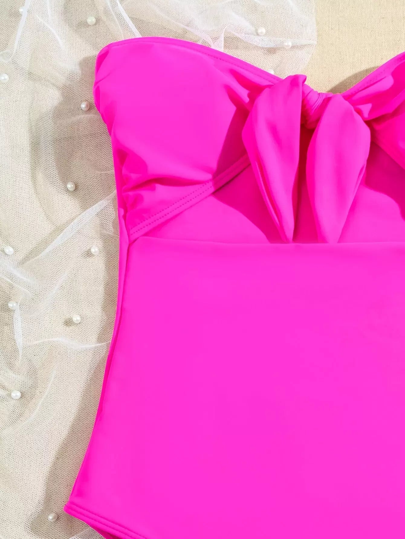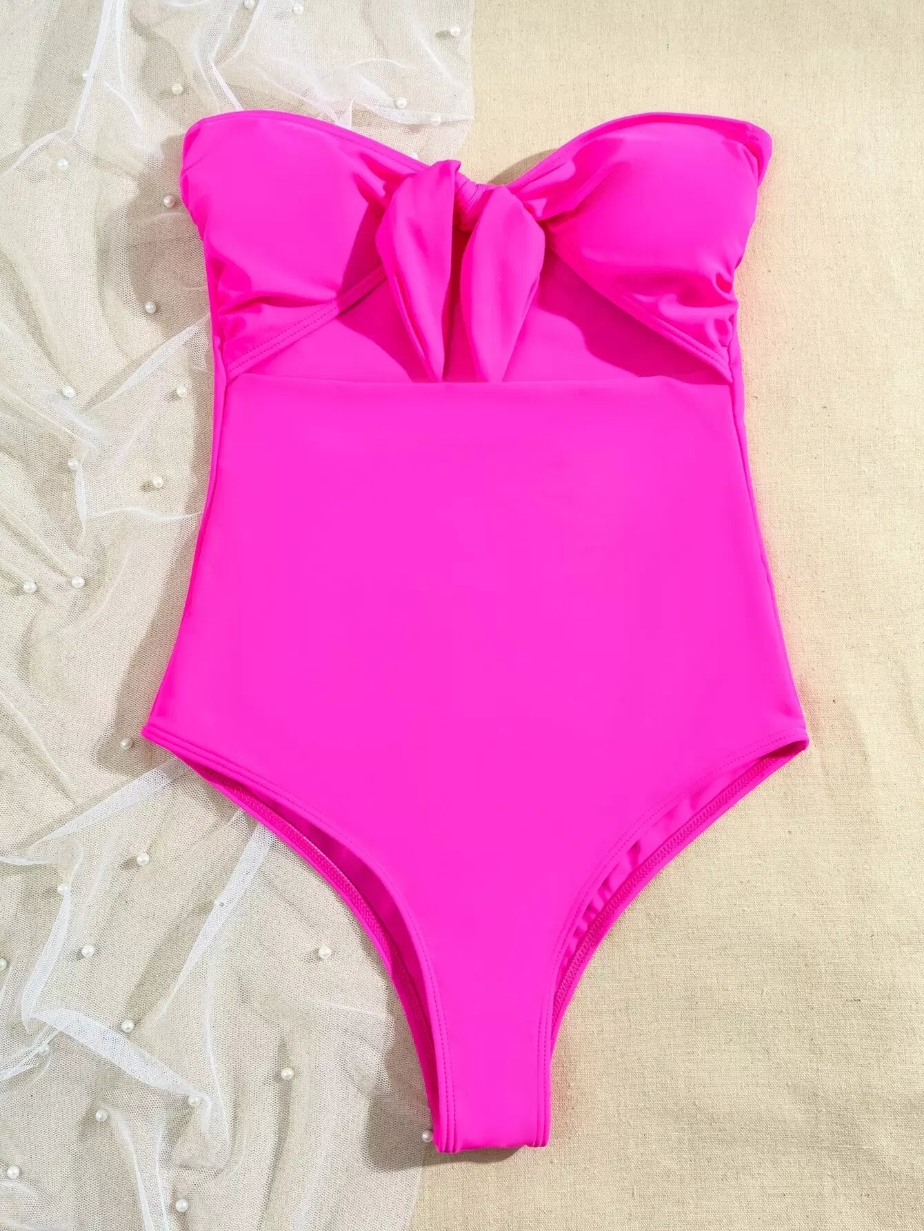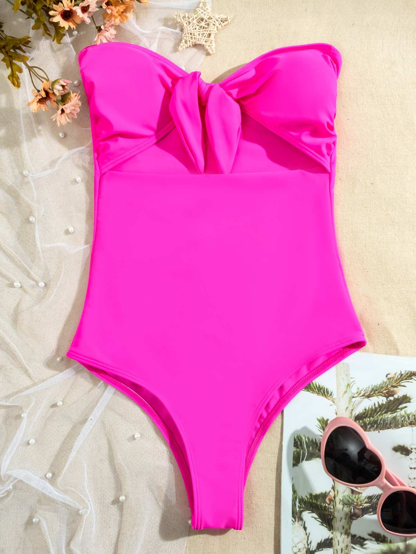 Cut-out Knot Front Bandeau One Piece Swimsuit