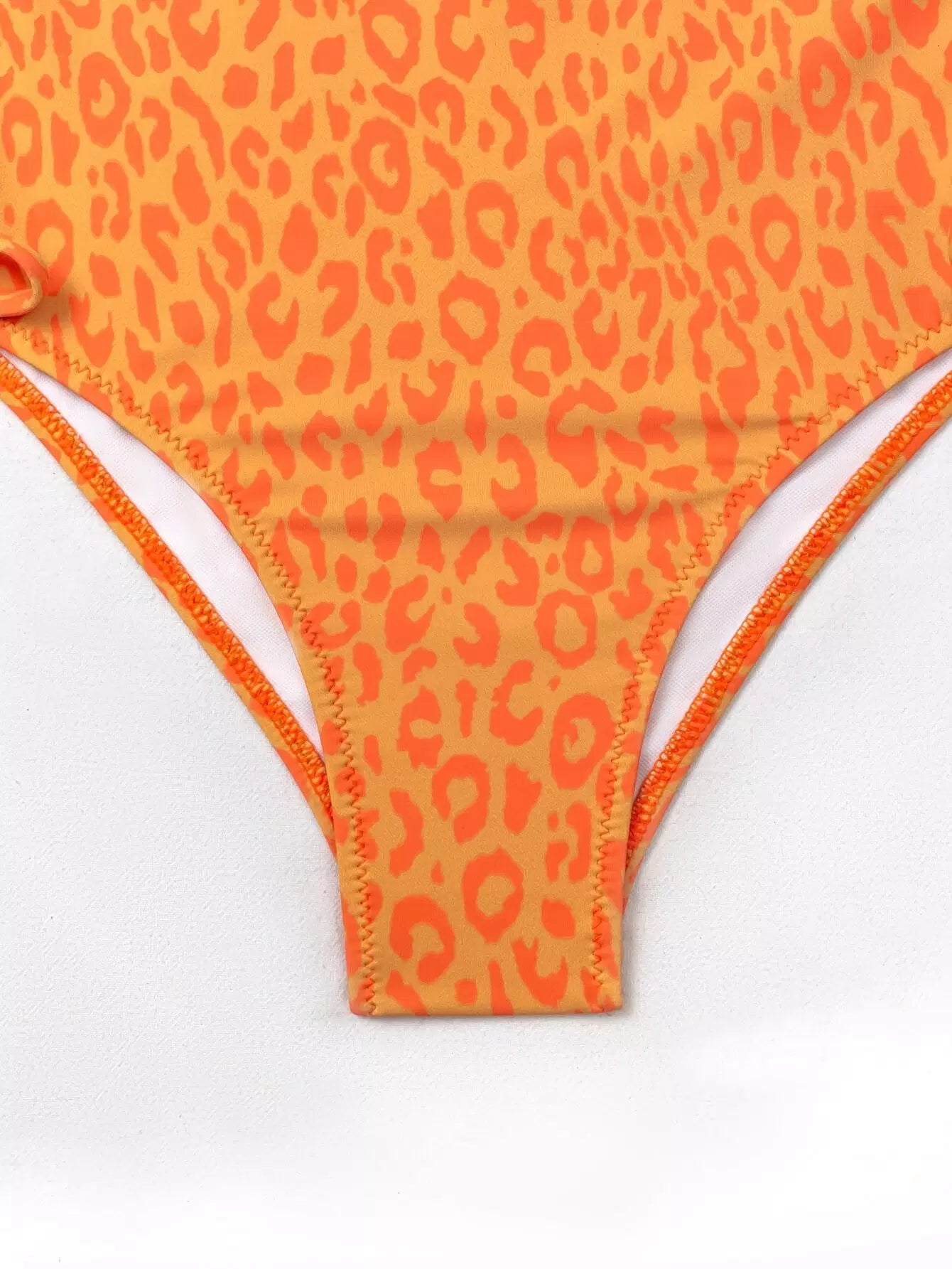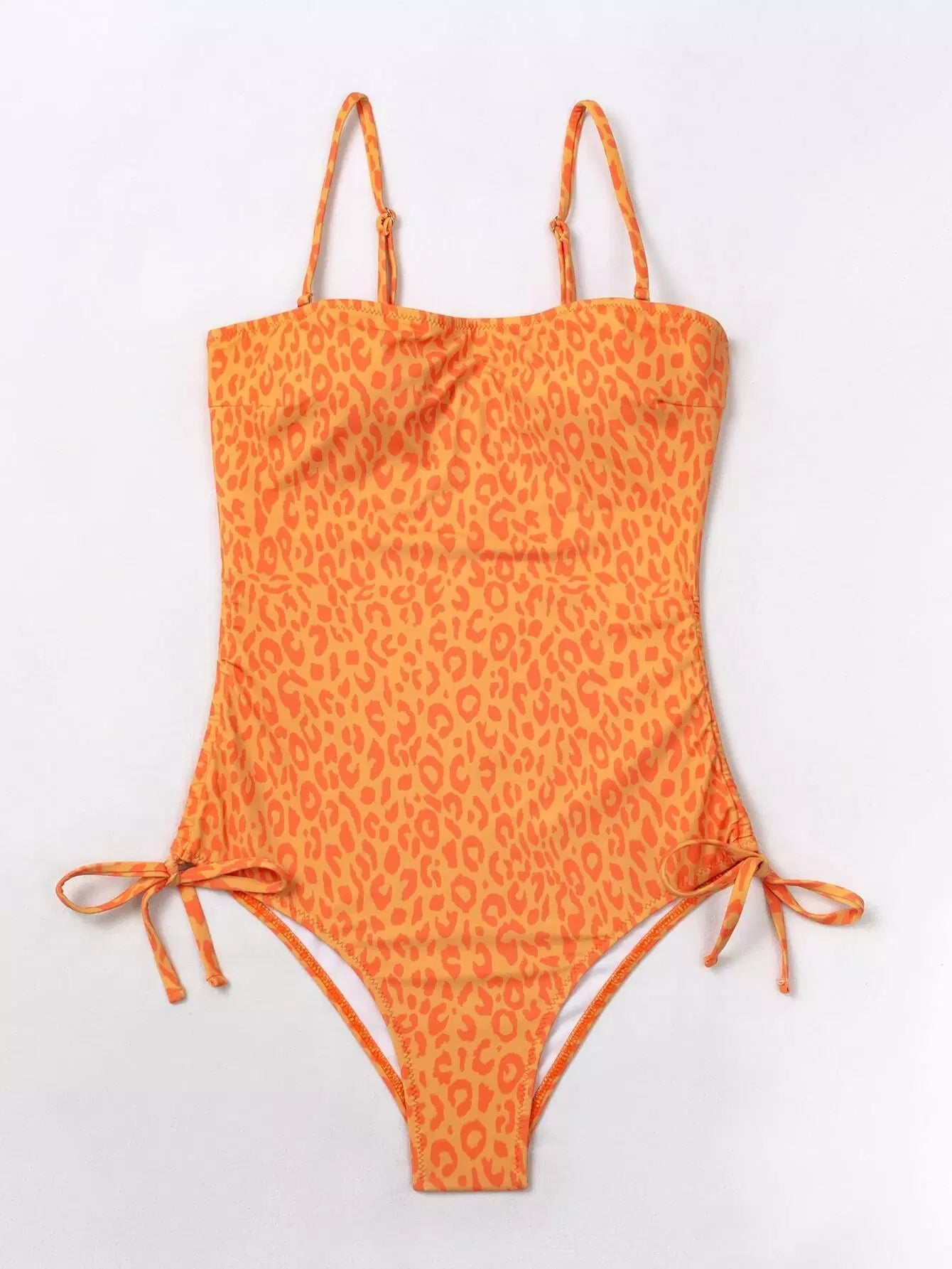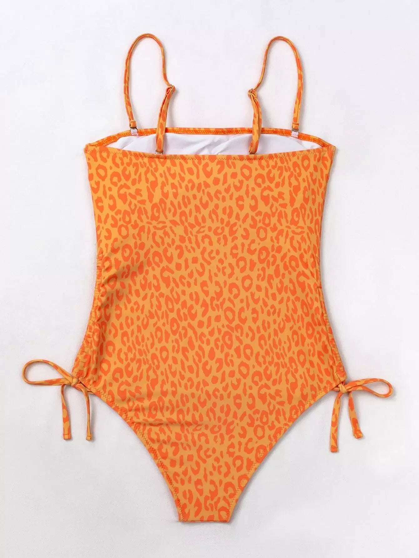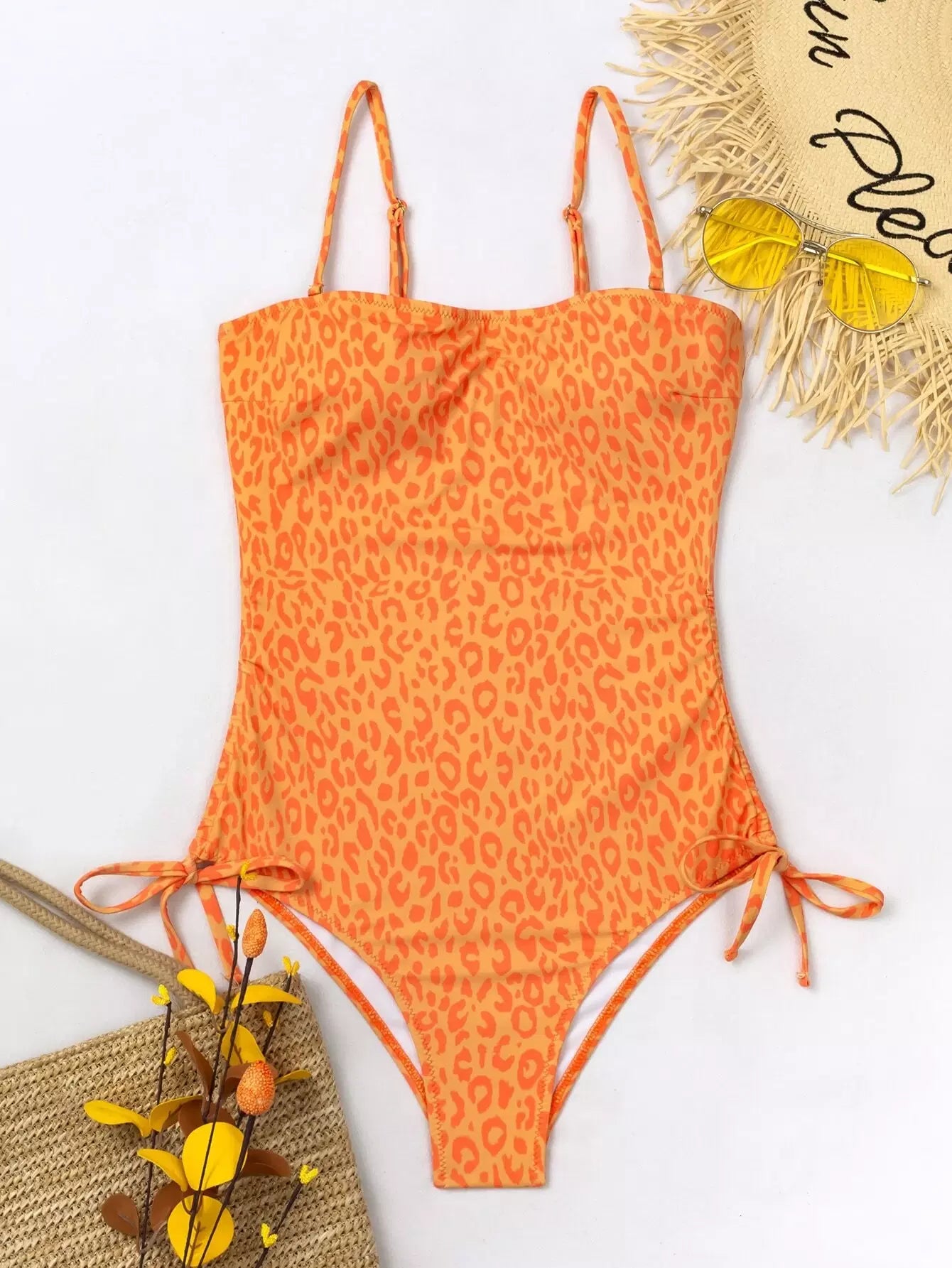 Leopard Drawstring Tie Side One Piece Swimsuit