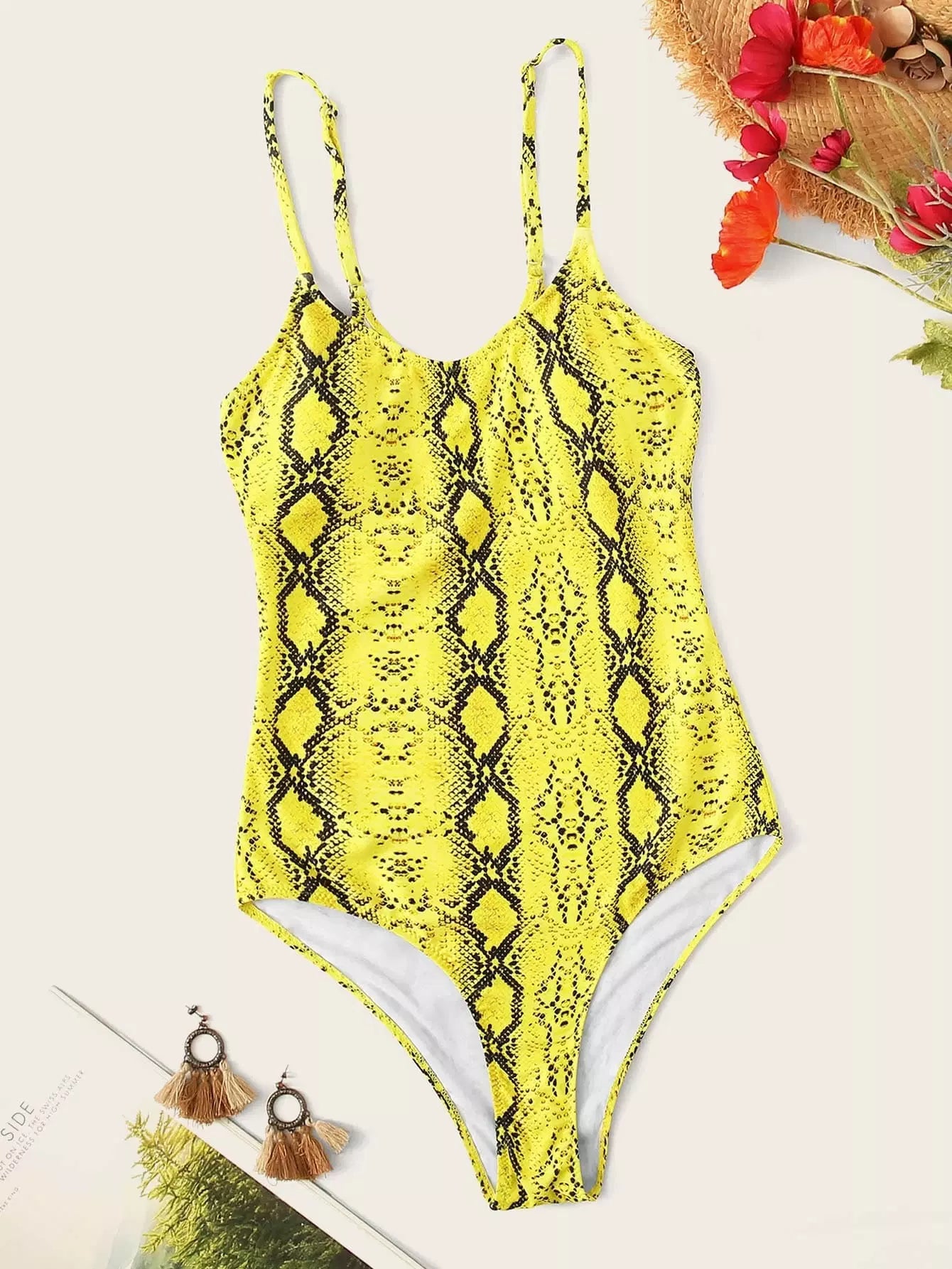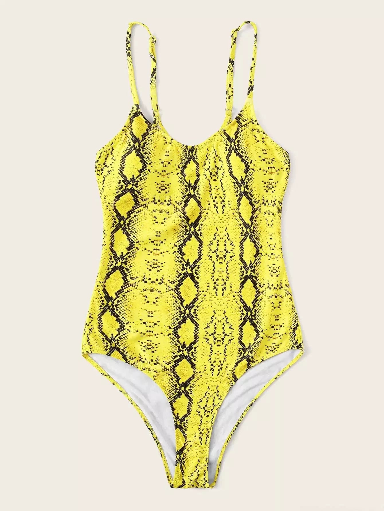 Women - Snakeskin Print One Piece Cami Swimsuit
