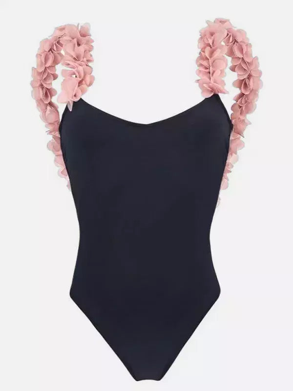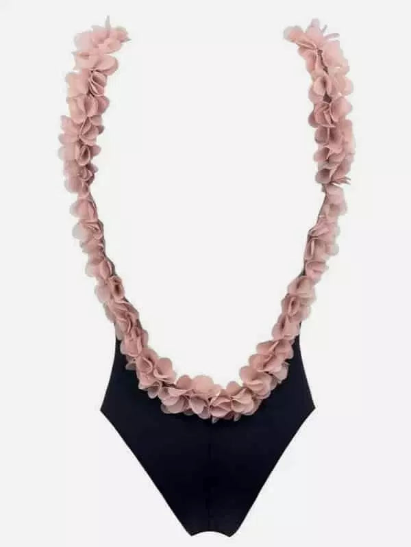 Stereo Flowers Detail Low Back One Piece Swimsuit