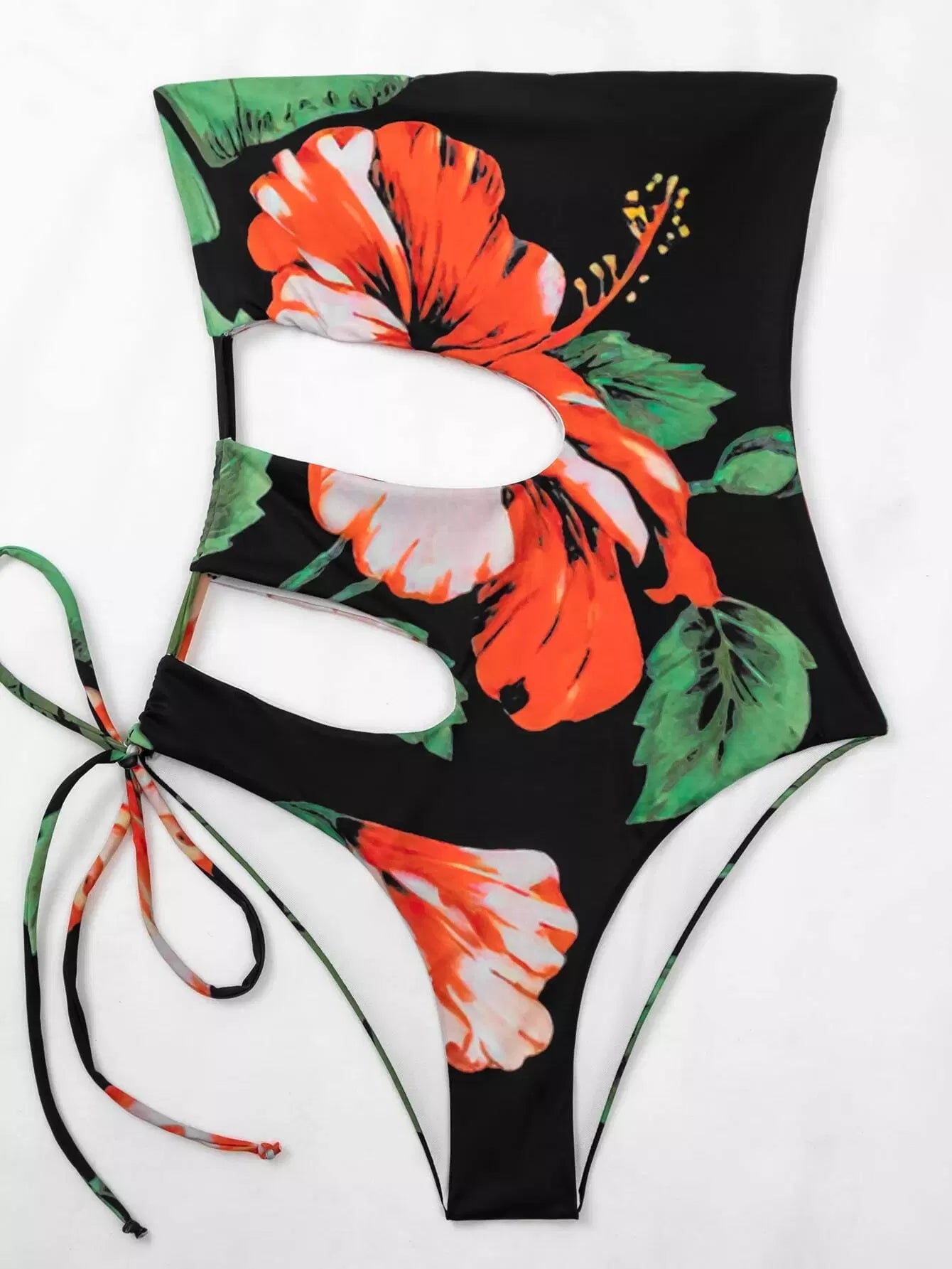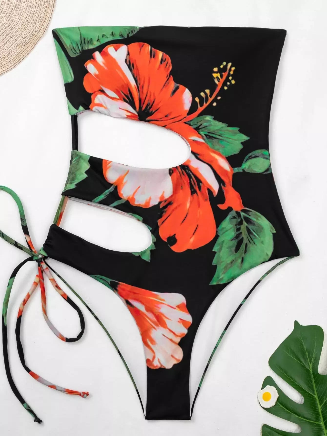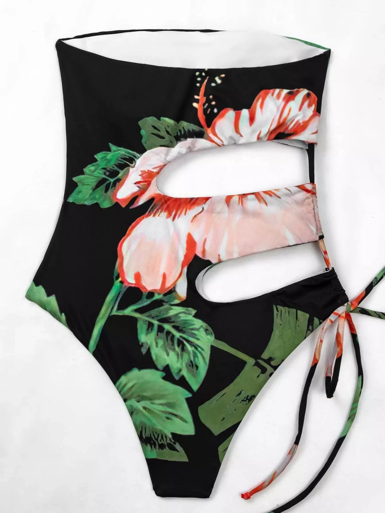 Tropical Cut-out Bandeau One Piece Swimsuit