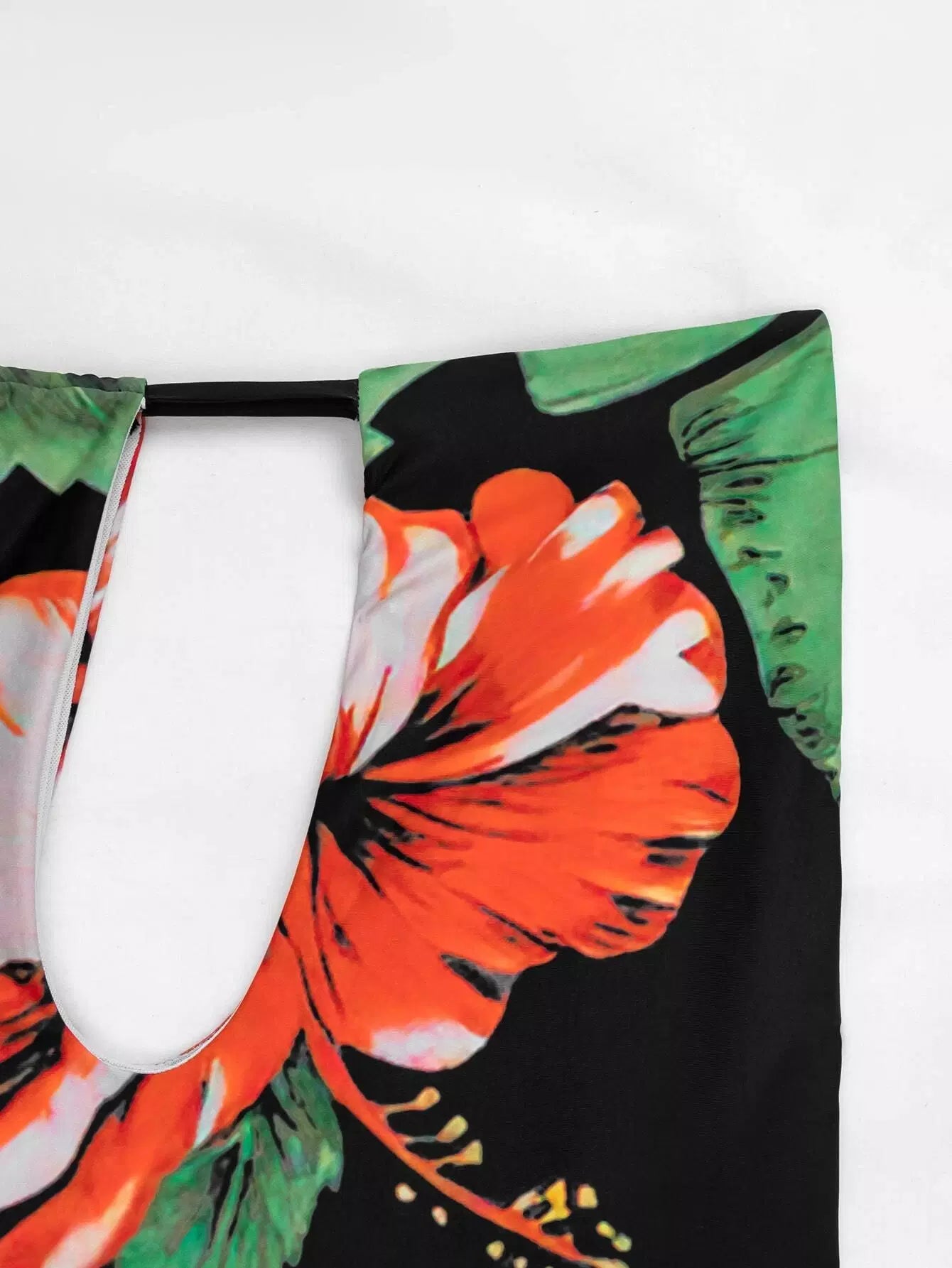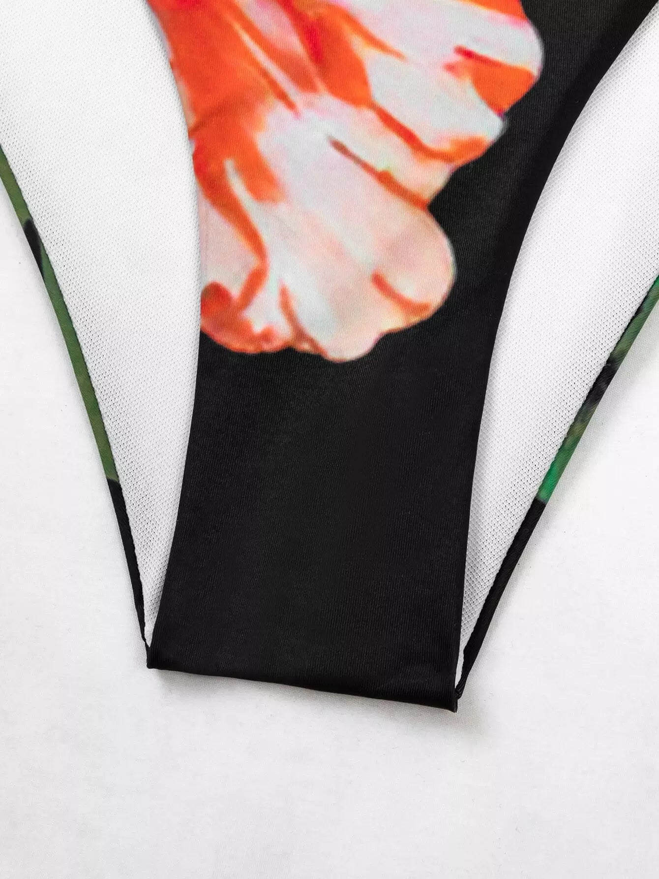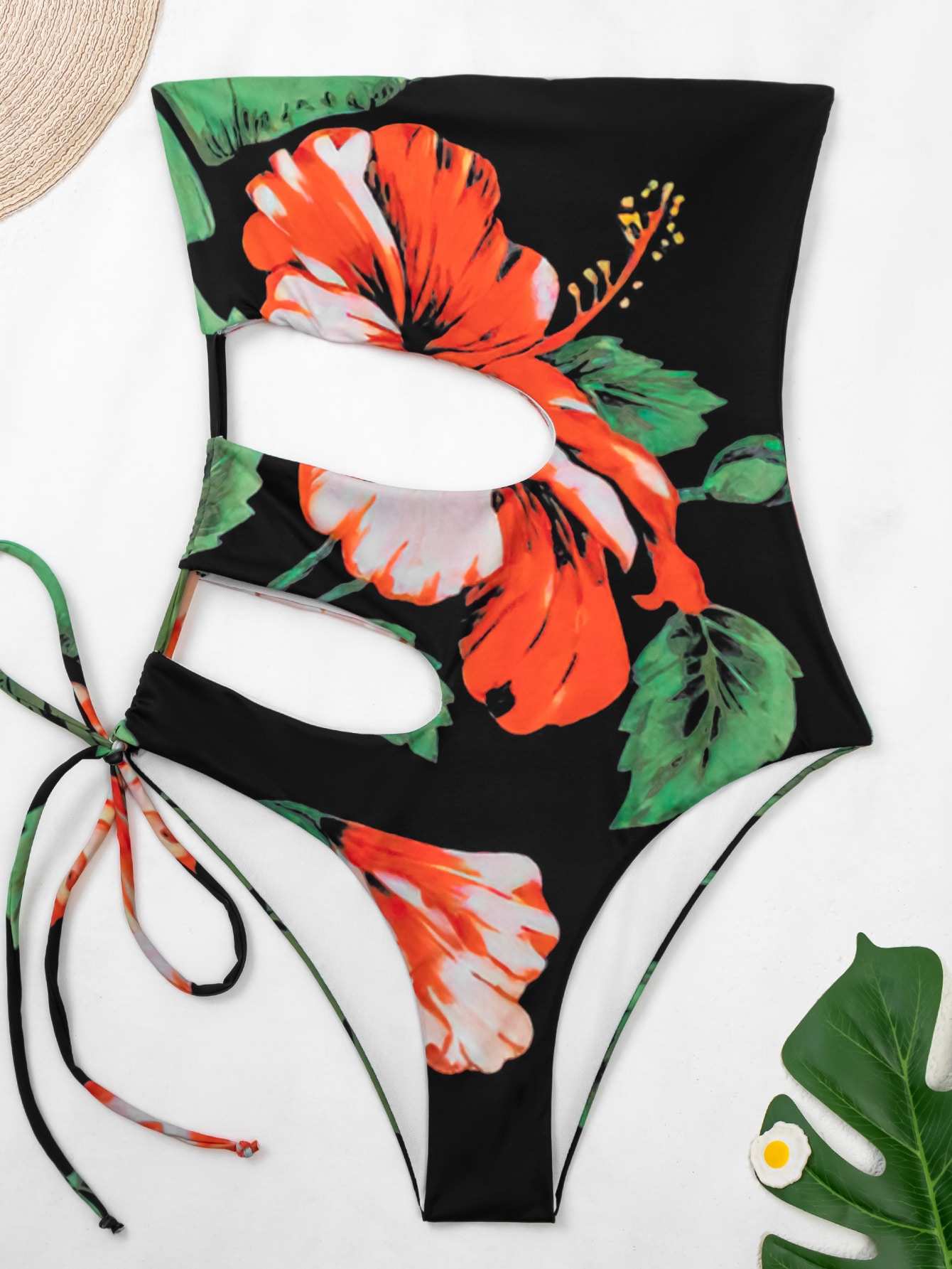 Tropical Cut-out Bandeau One Piece Swimsuit