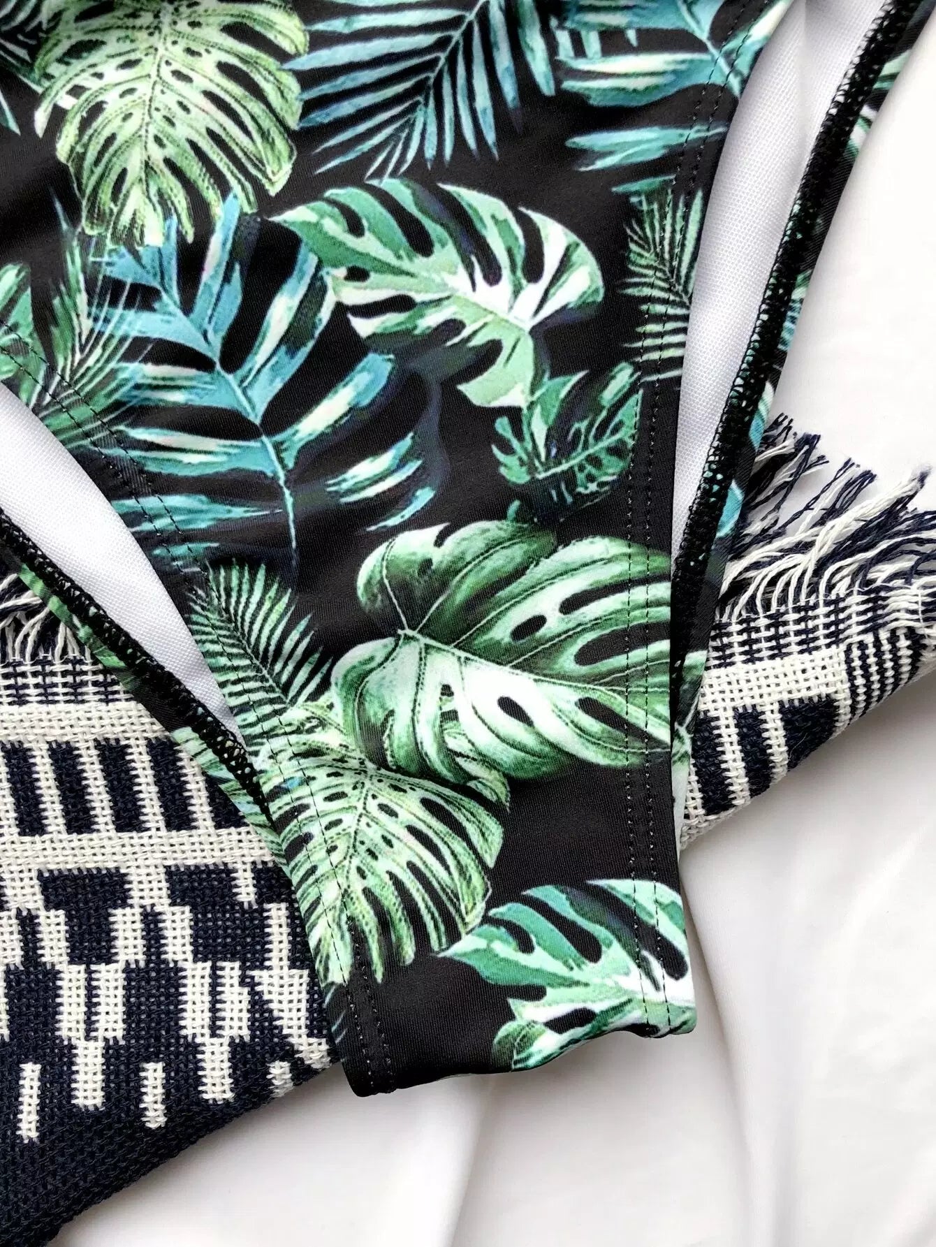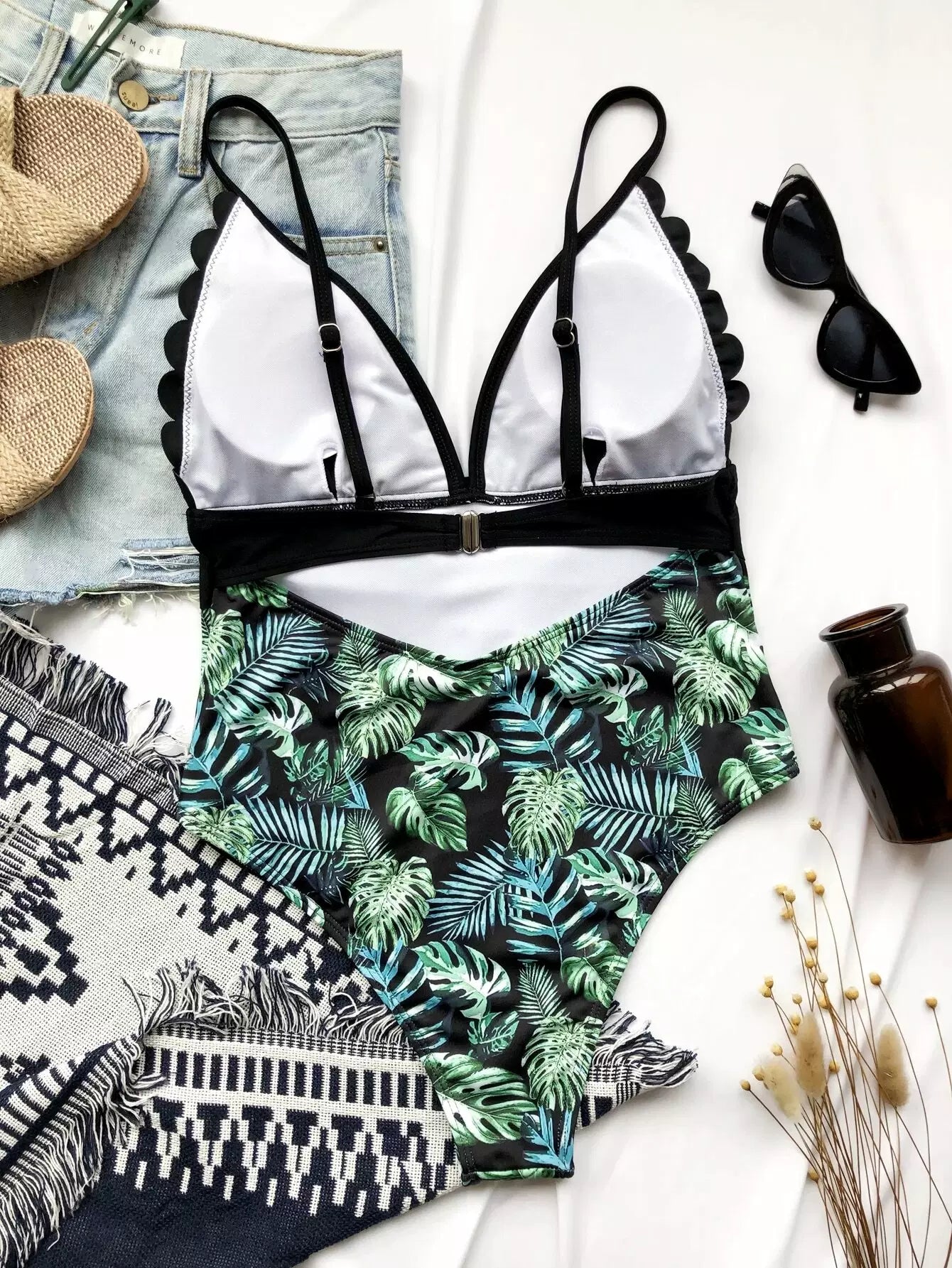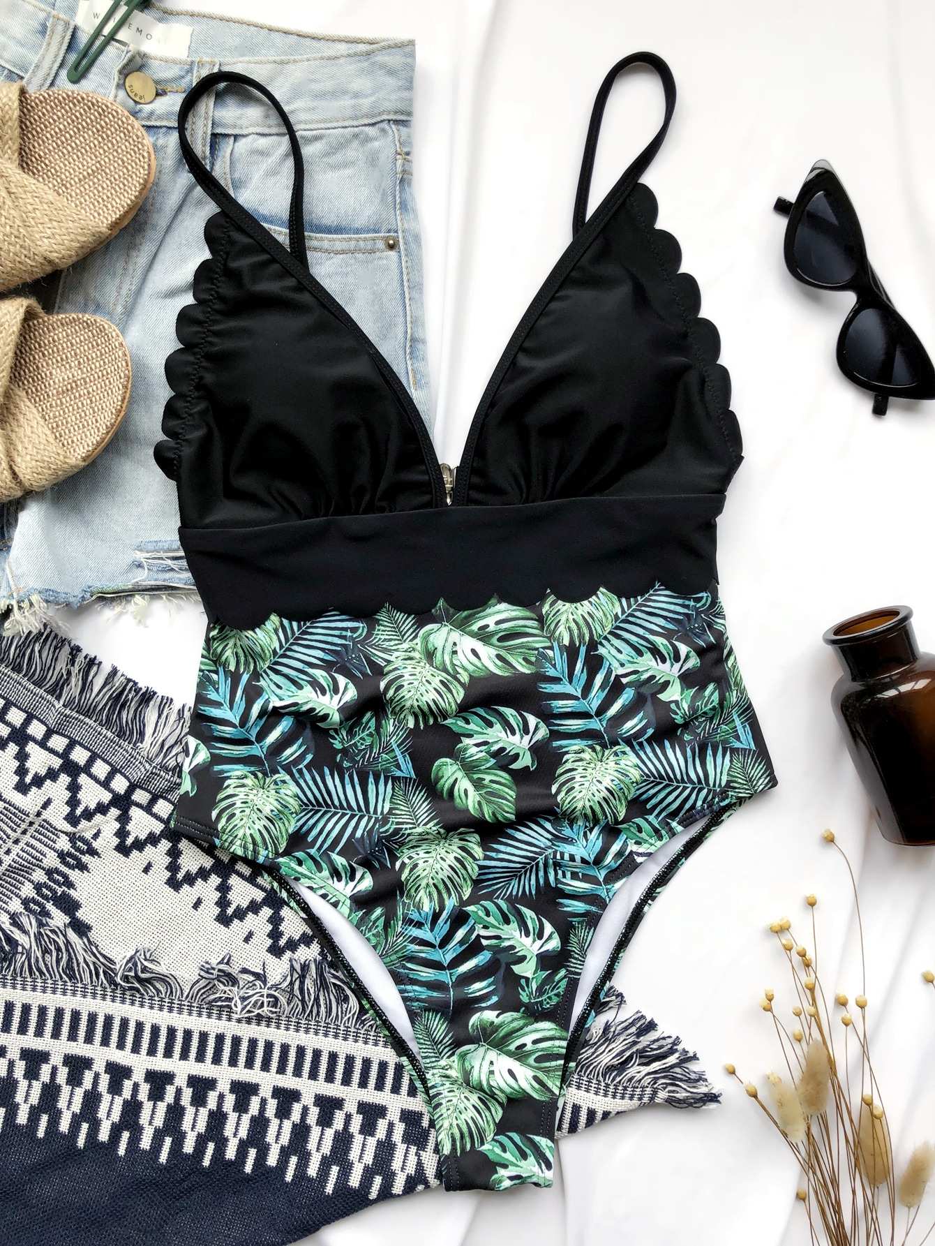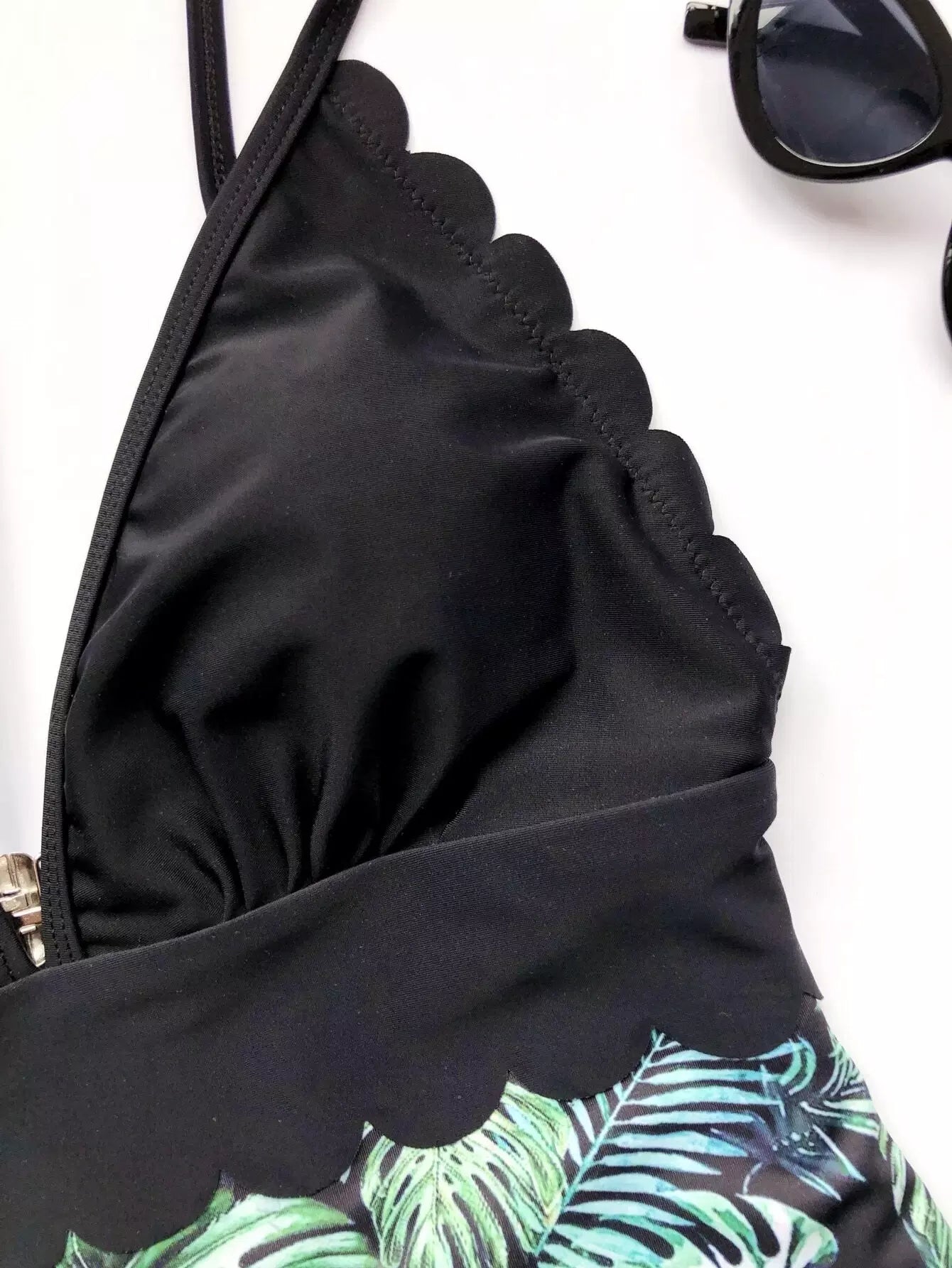 Tropical Scalloped Trim One Piece Swimsuit