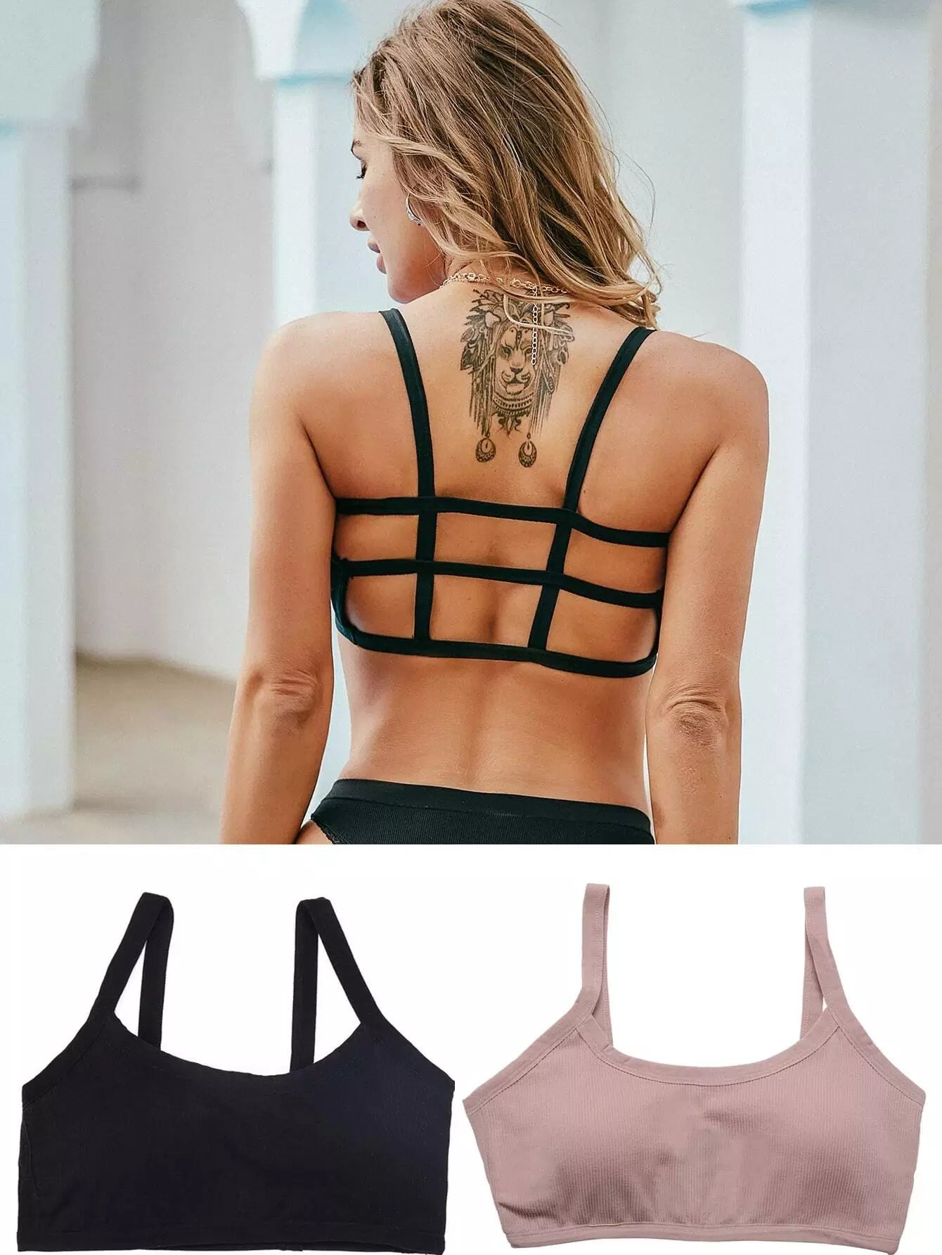 2 Pack Open Back Rib-knit Bra