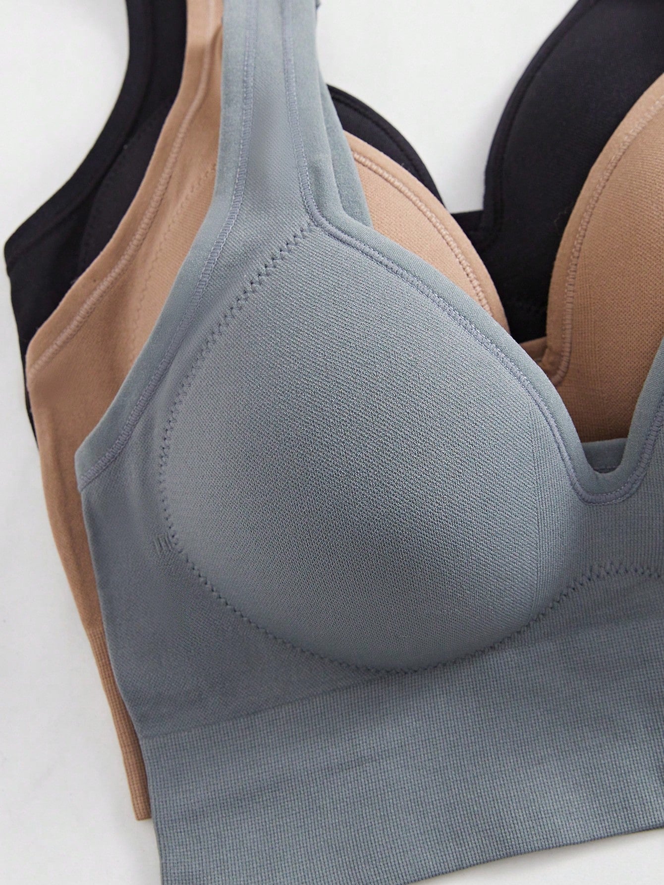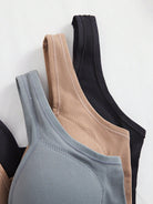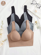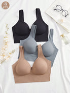 3PCS Plain Women's Fixed Cup Simple And Elegant Seamless Backless Underwear, No Steel Ring, Wide Shoulder