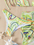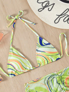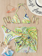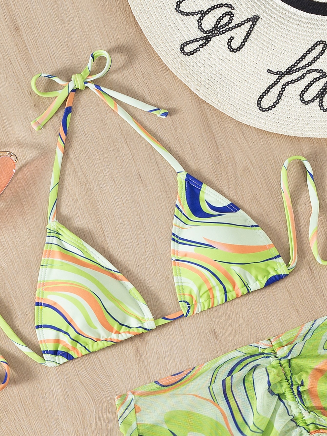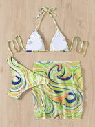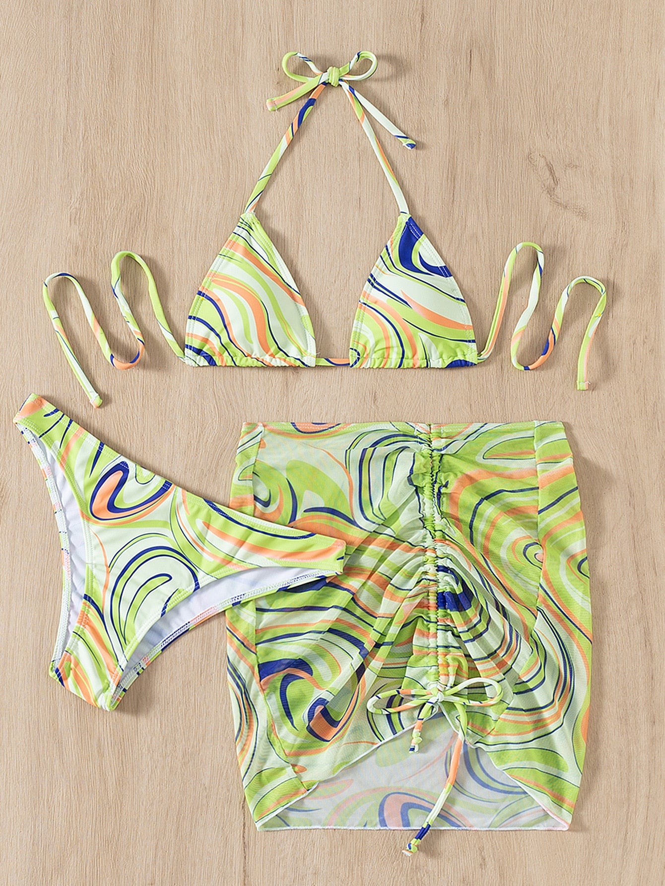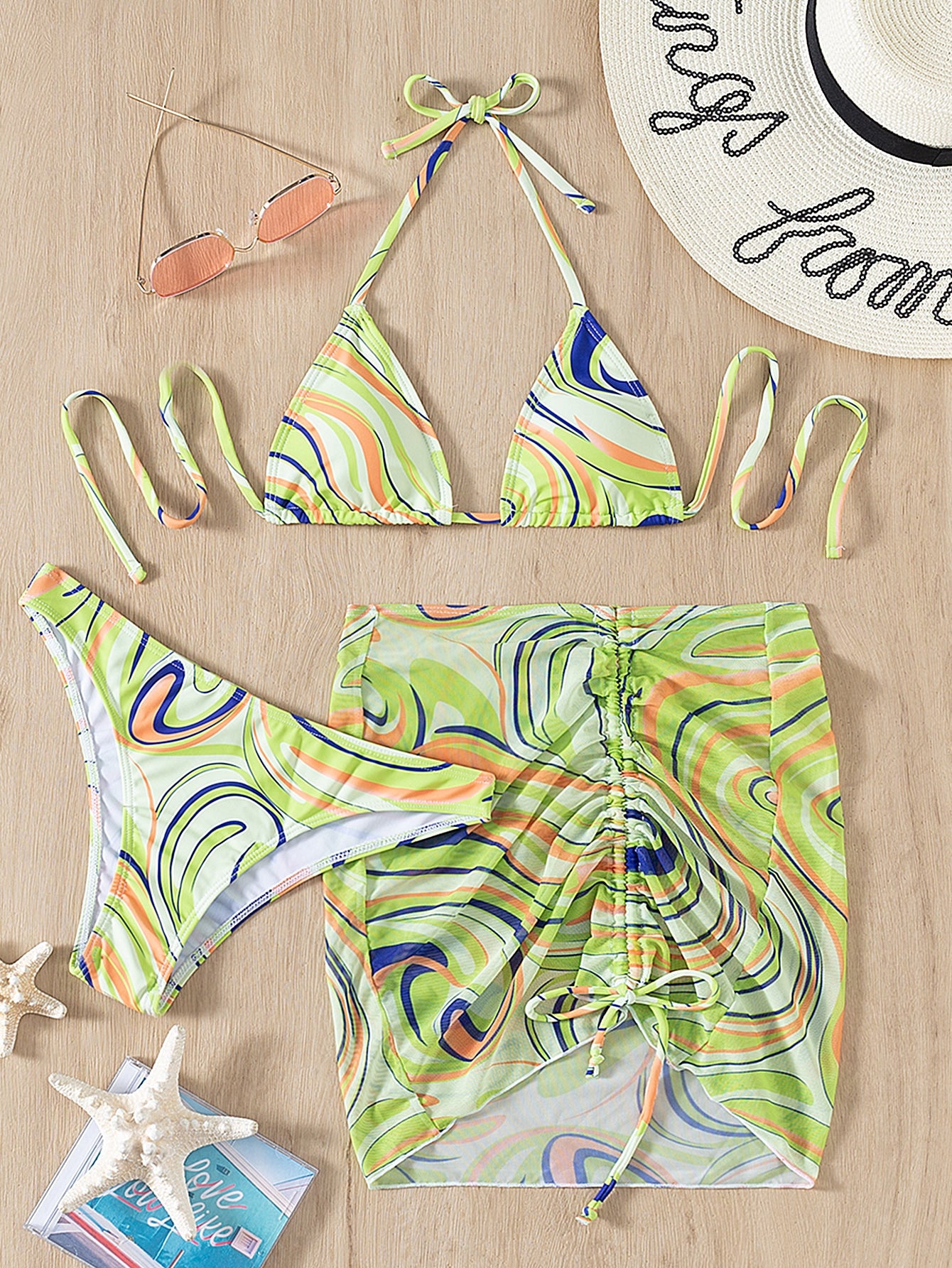 3pack Allover Print Halter Bikini Swimsuit & Cover Up