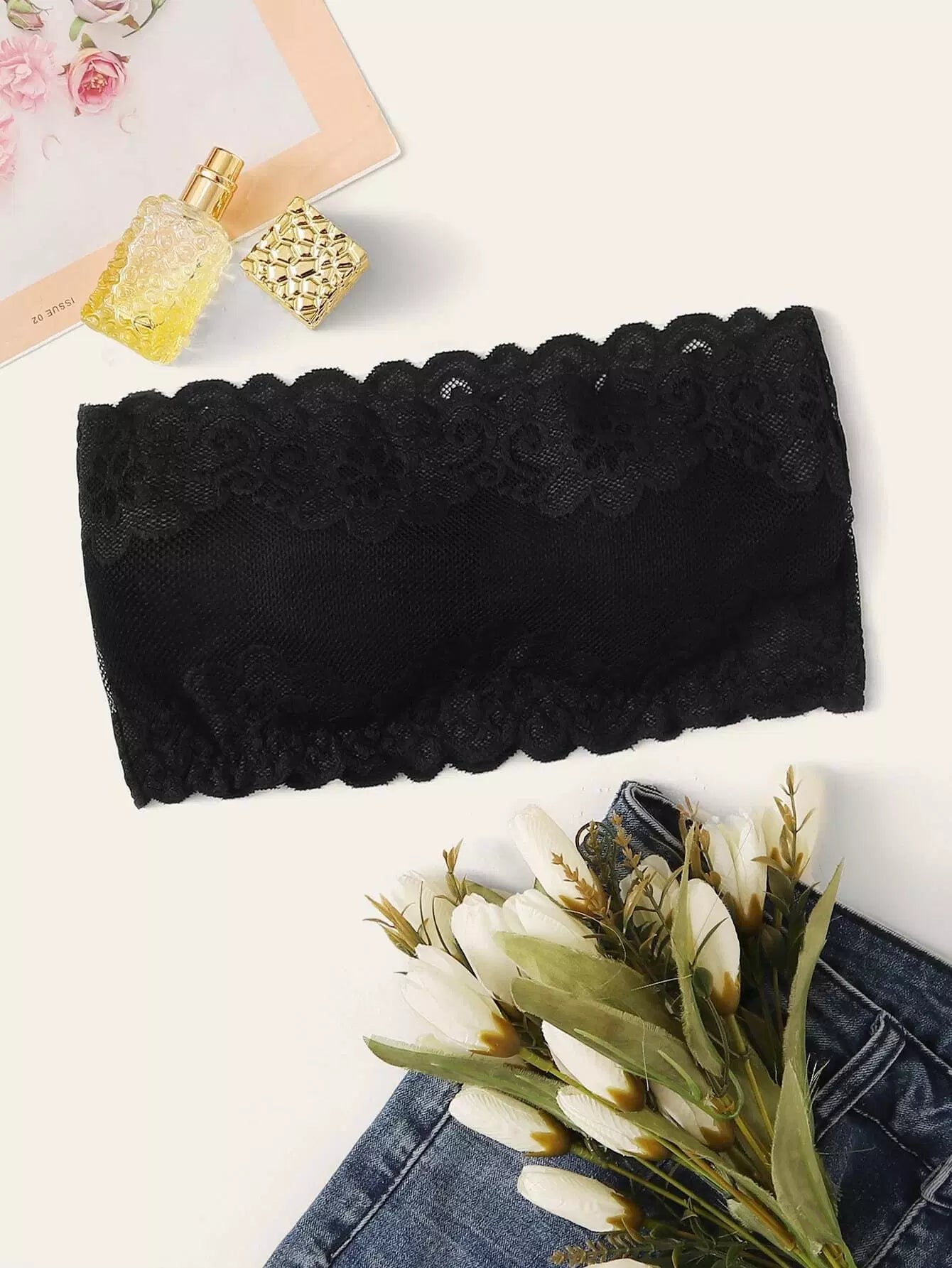 Scallop Trim Lace Bandeau Bralette