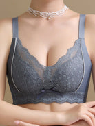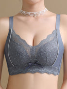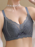 Grey Sexy Lace Bra For Small-Busted Women, With Wire-Free And Side-Buckle Design To Conceal Armpit Fat,Comfortable