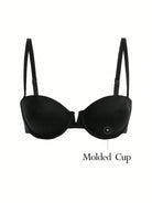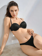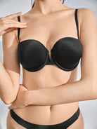 Ocili Women's Black Casual Knitted High Stretch Padded Push Up Bra With Backless Cup Detail