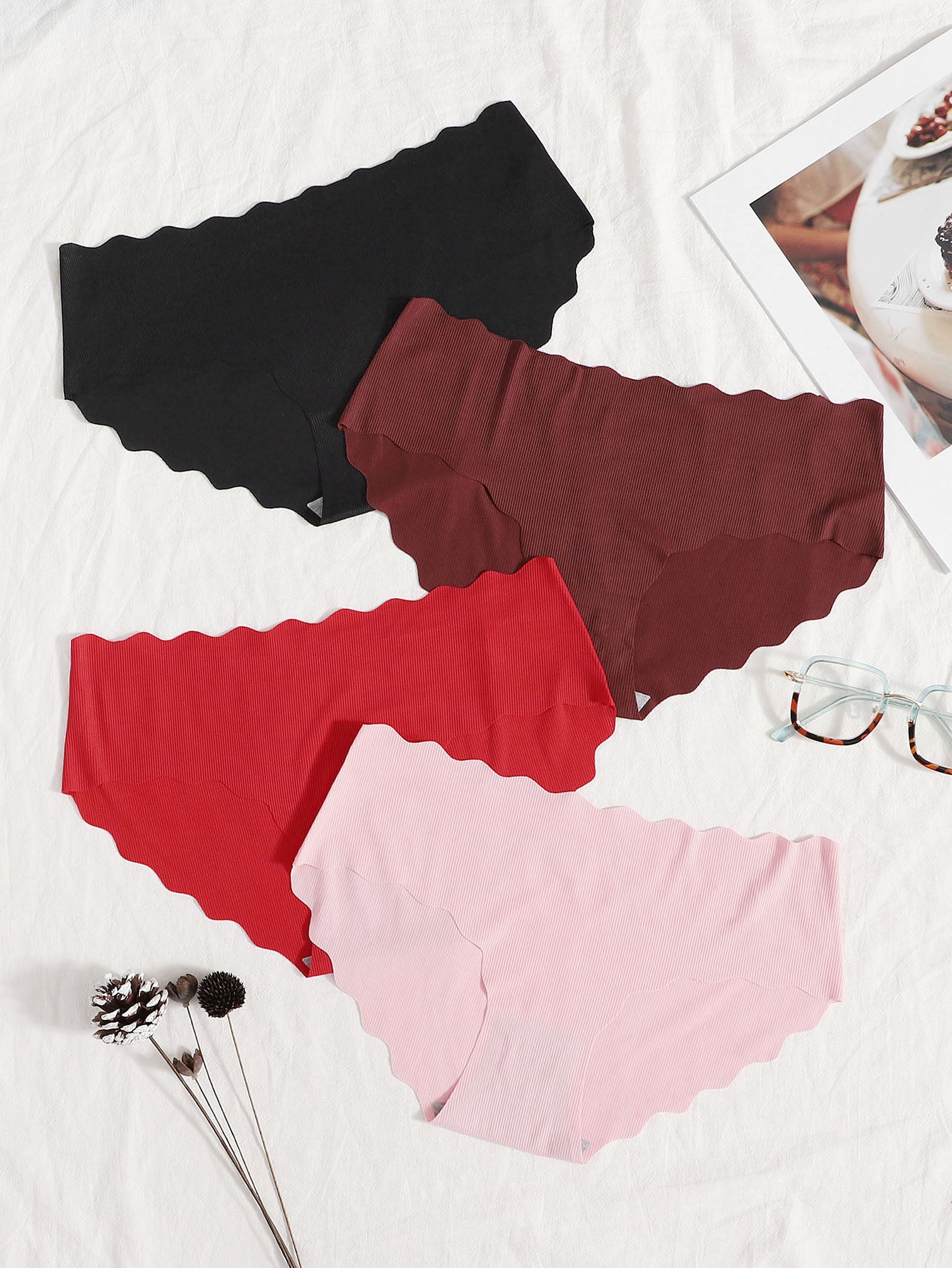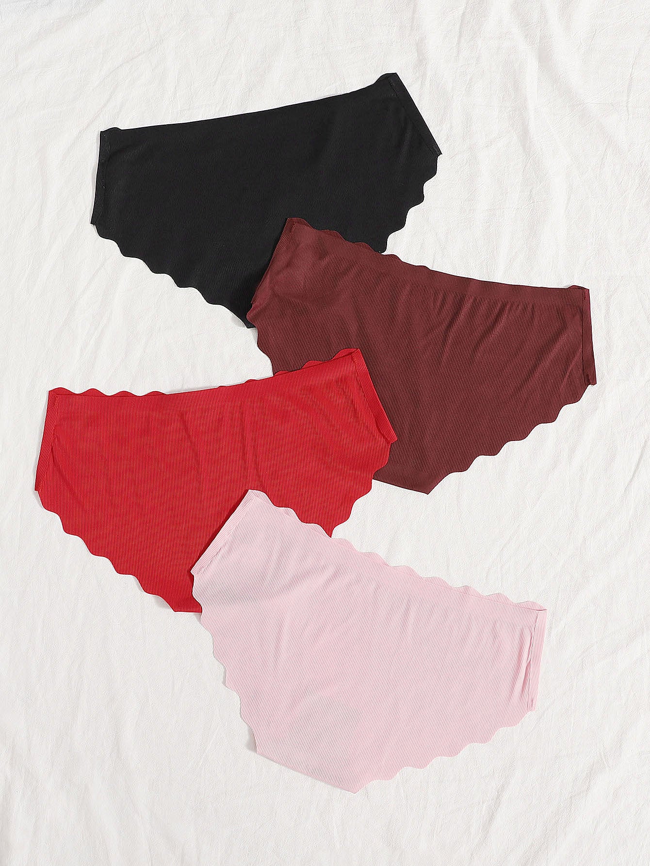 4pack Seamless Ribbed Scallop Trim Panty Set