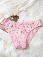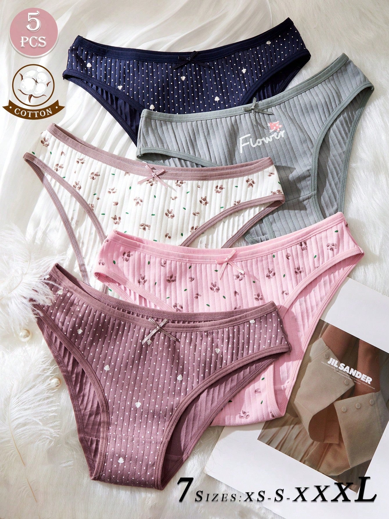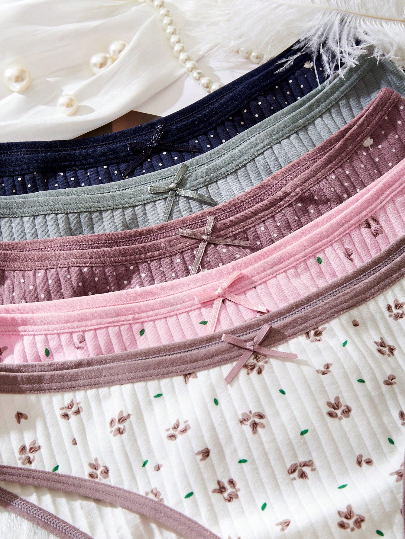 5pcs Women's Panties,Ribbed Knit Brief,Lace Edged Romantic Women's Sexy Lingerie,Bow Breathable Triangle