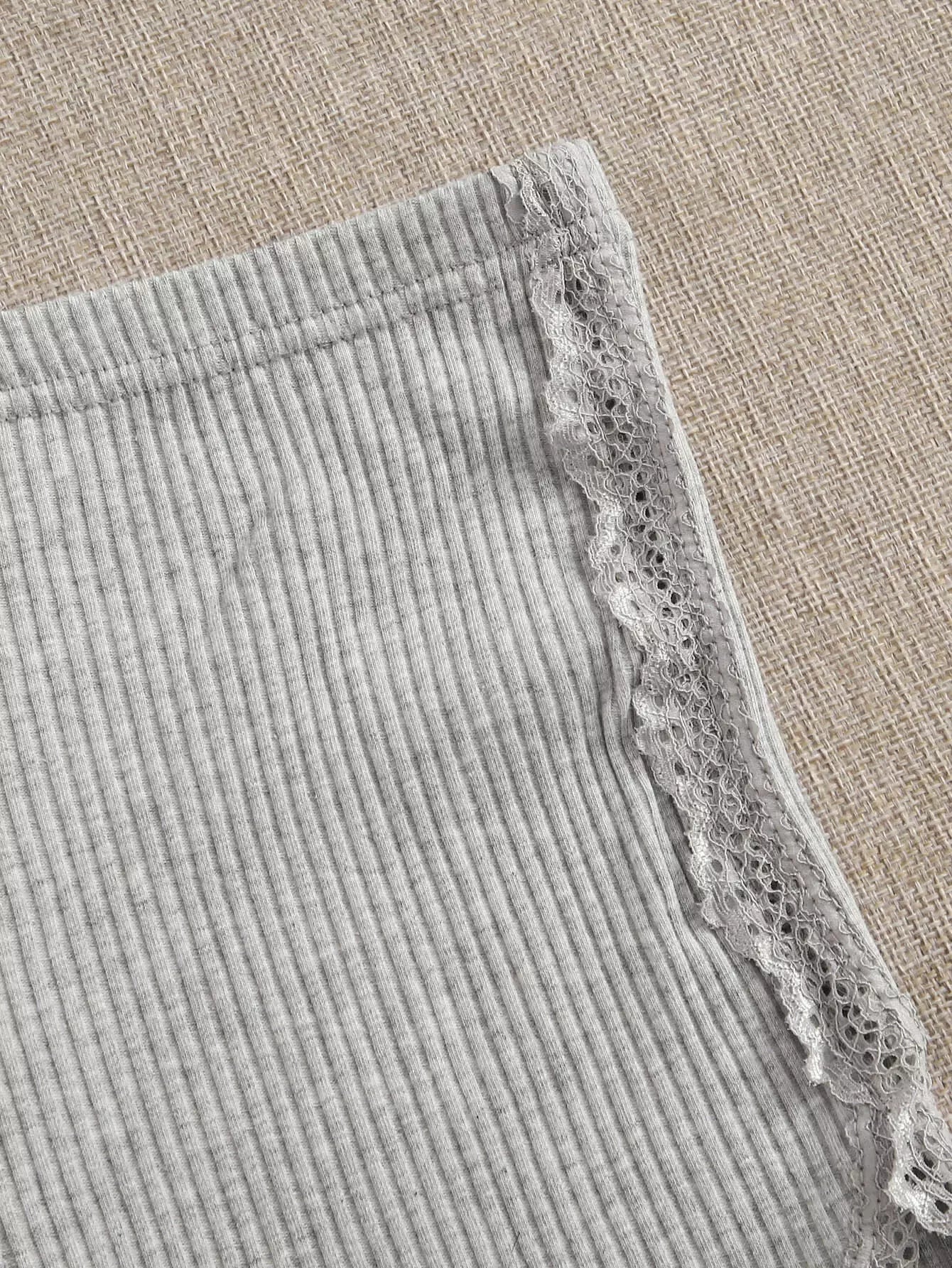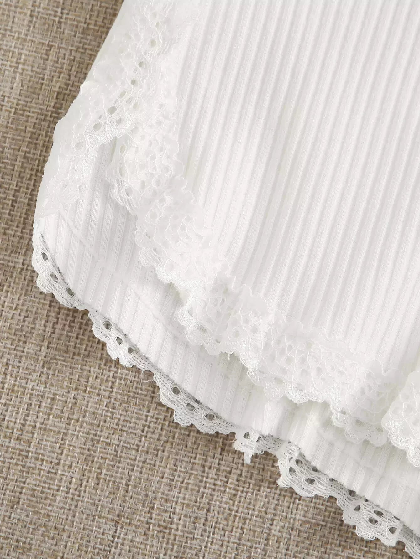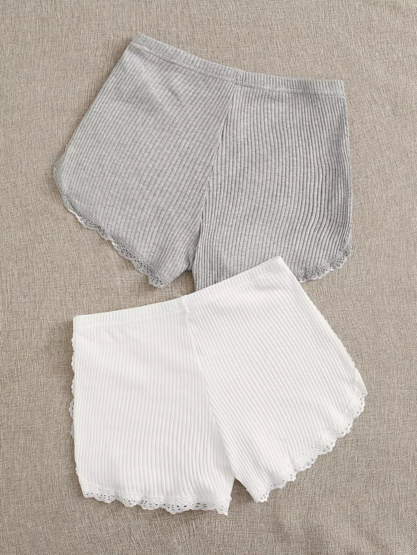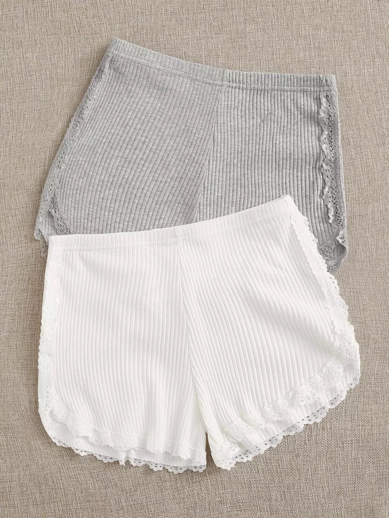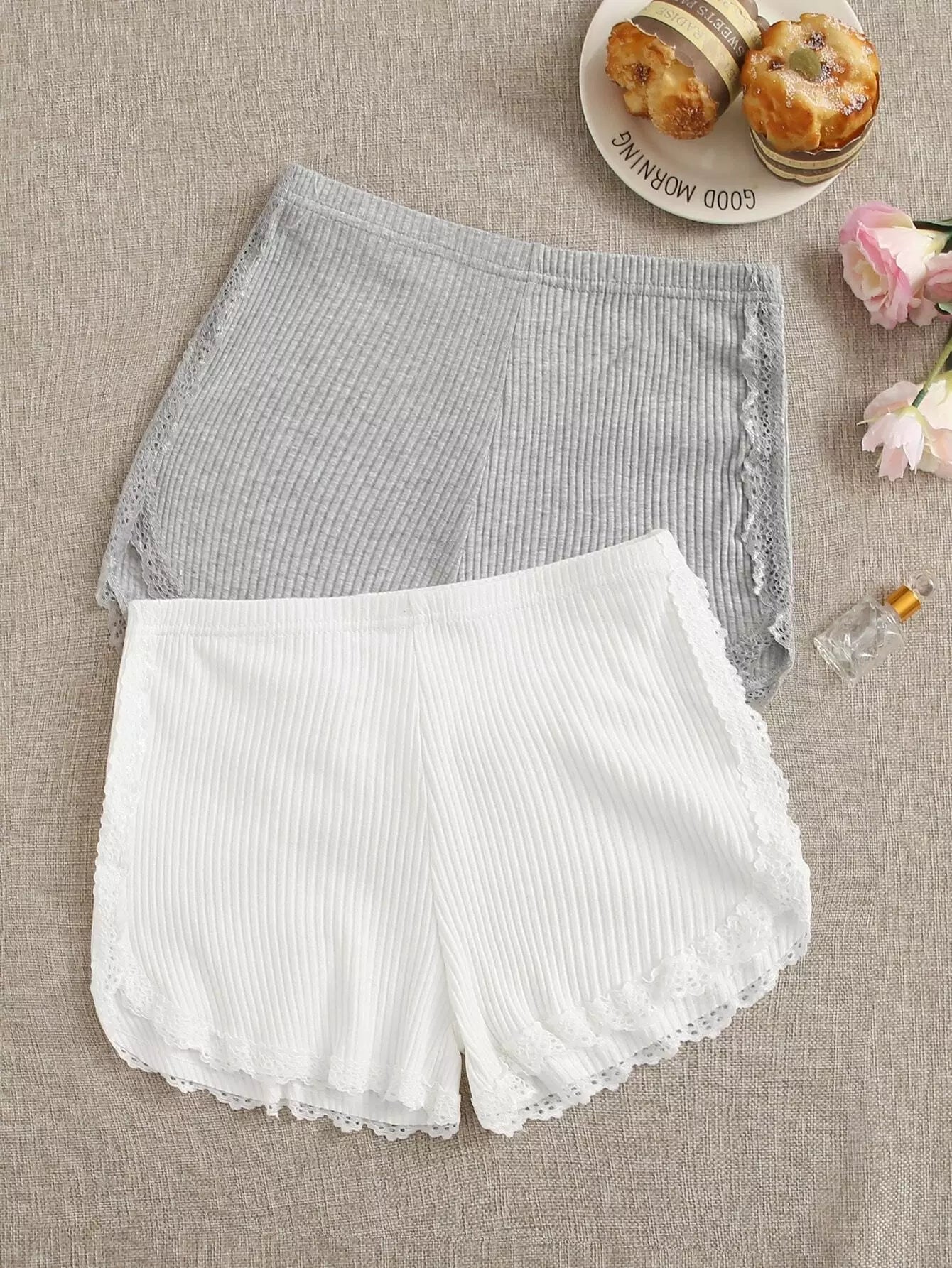 Ribbed Lace Trim Shorts Set - 2 Pack