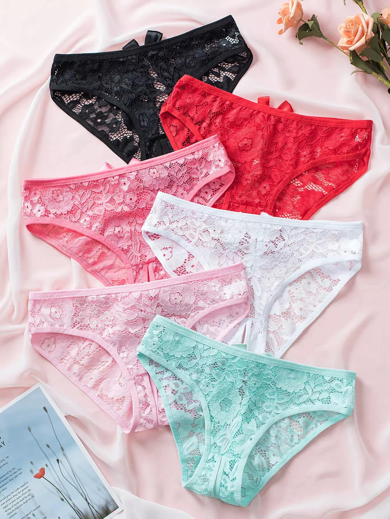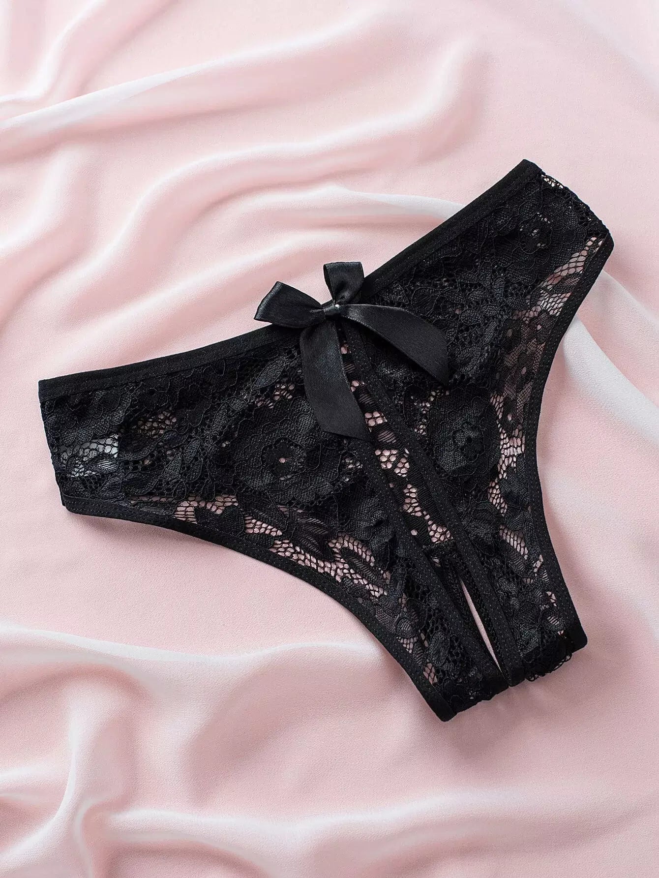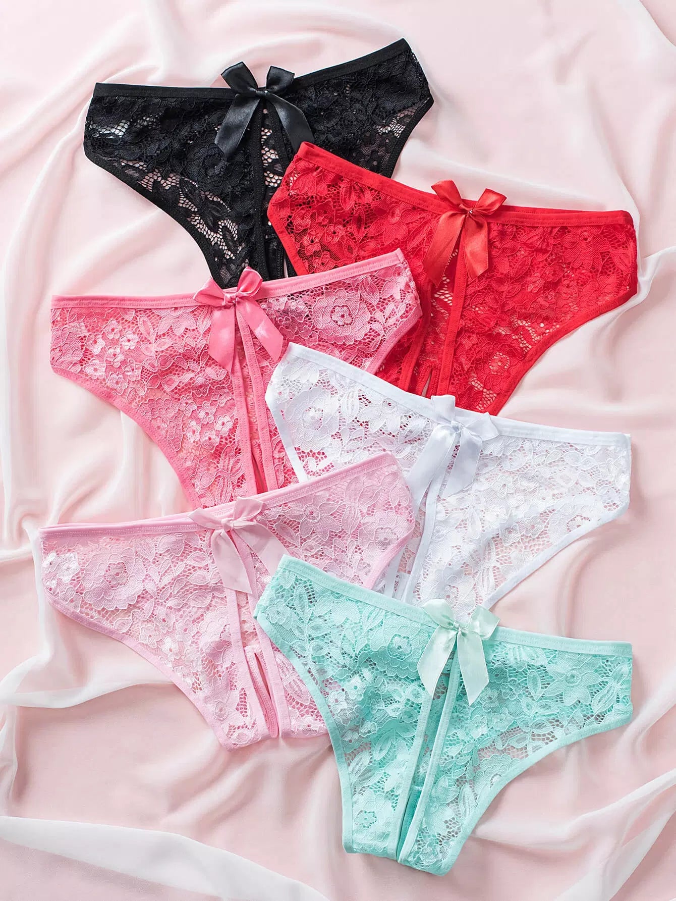 6pack Floral Lace Bow Front Crotchless Panty Set