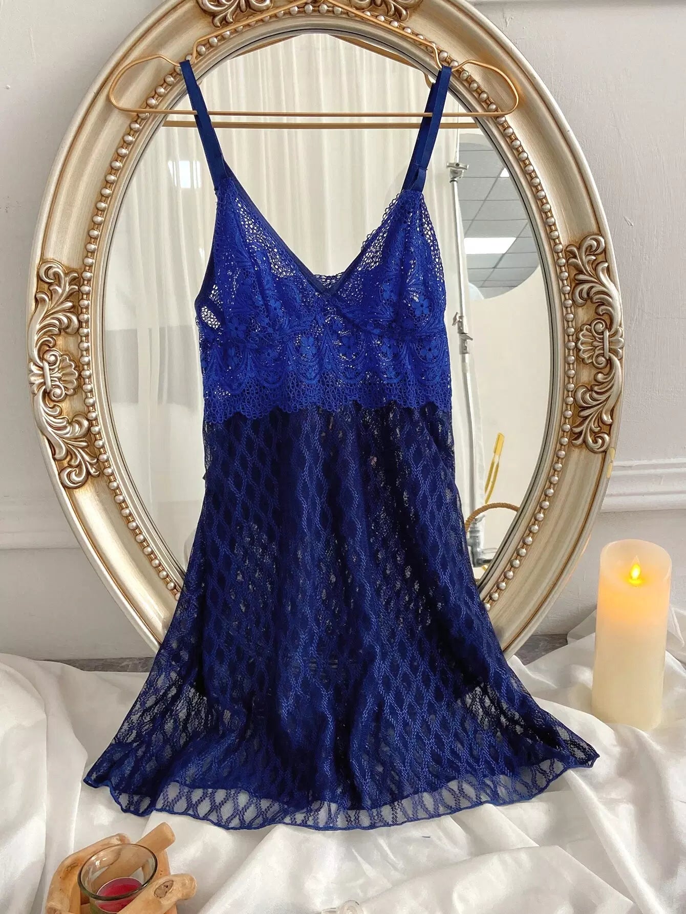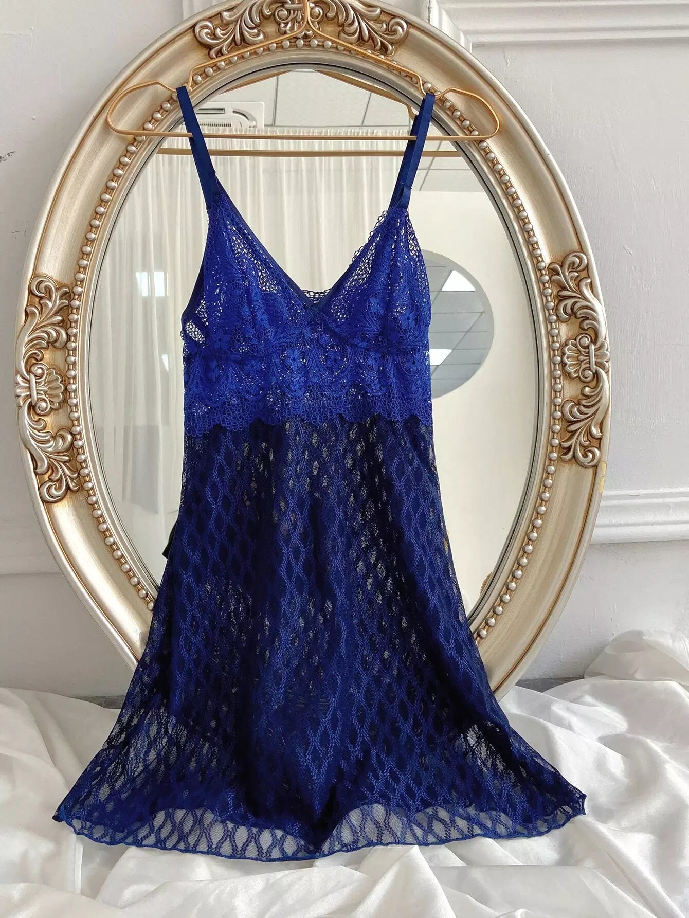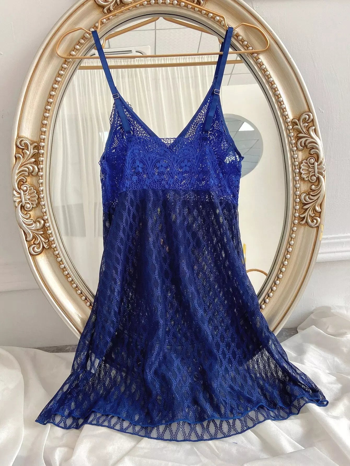 Women - Contrast Lace Sheer Mesh Slips Without Thong