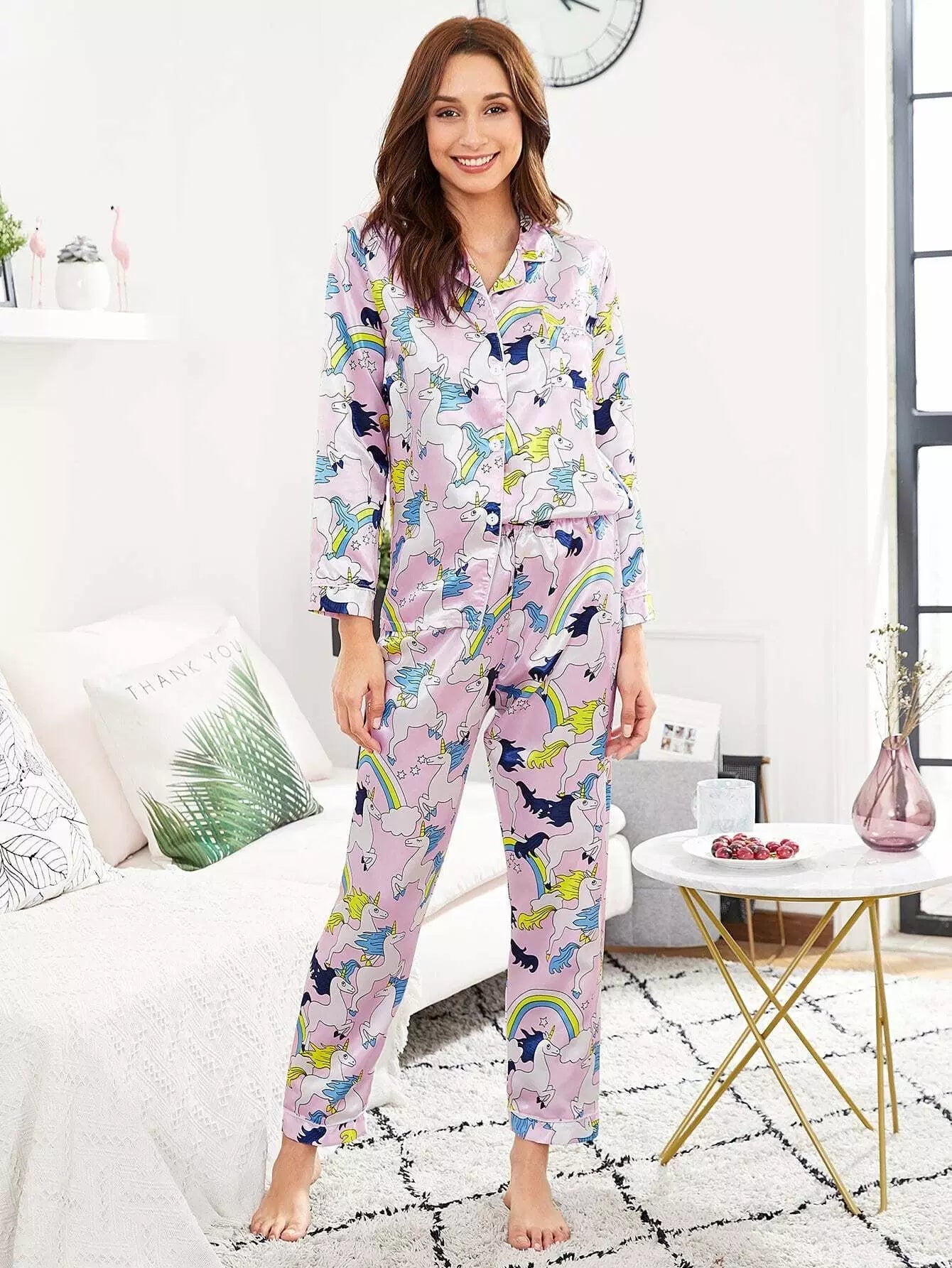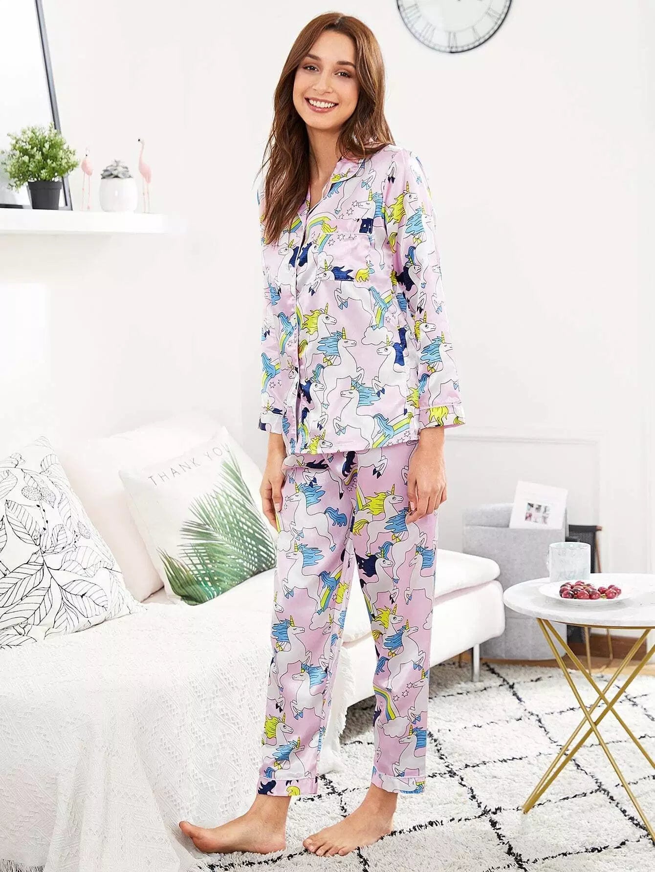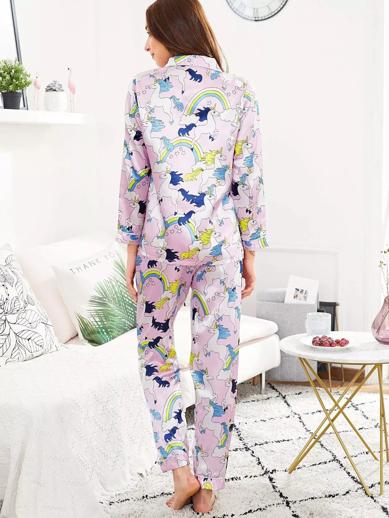 Women - Allover Unicorn Print Shirt & Pants PJ Set
