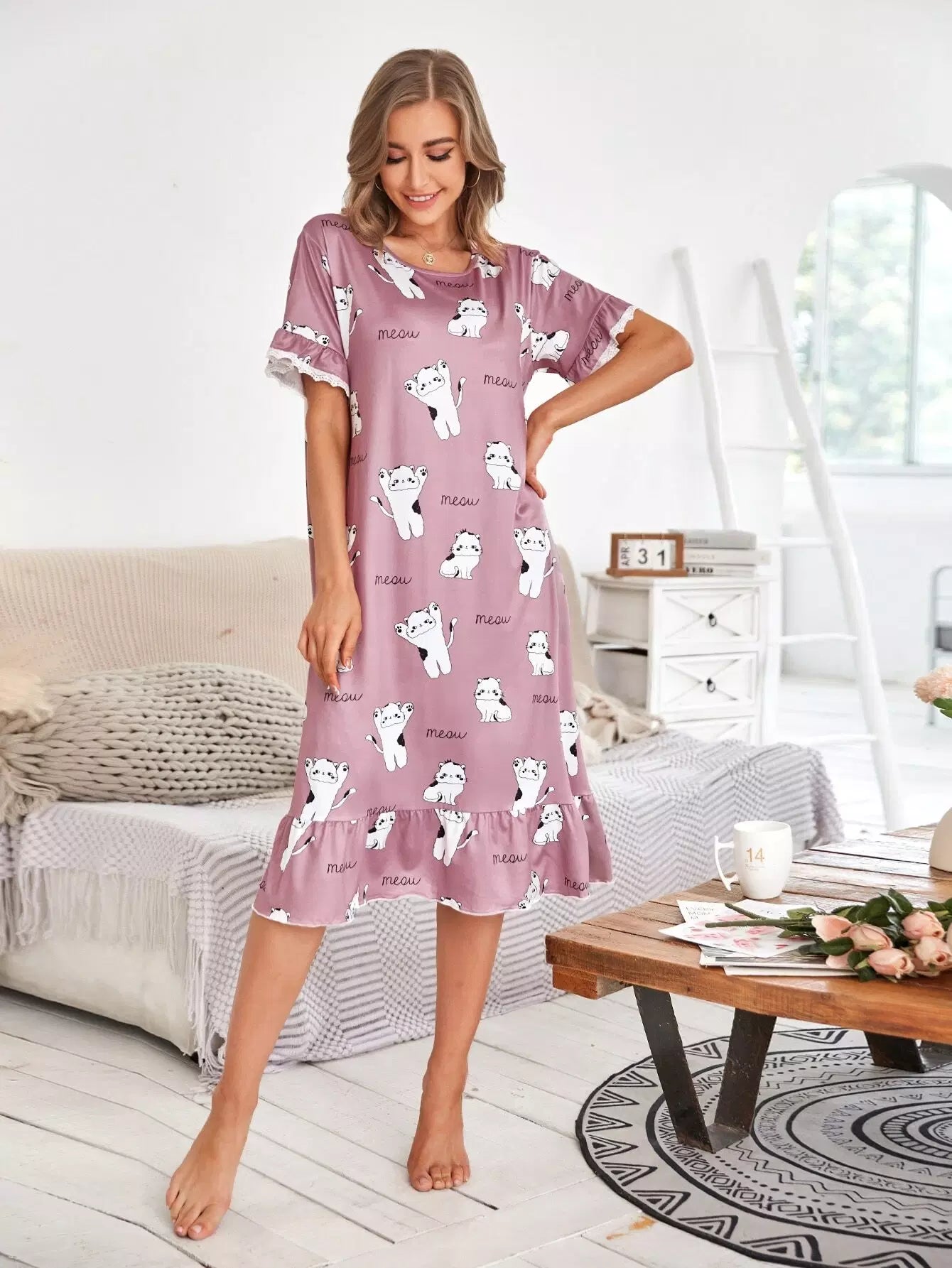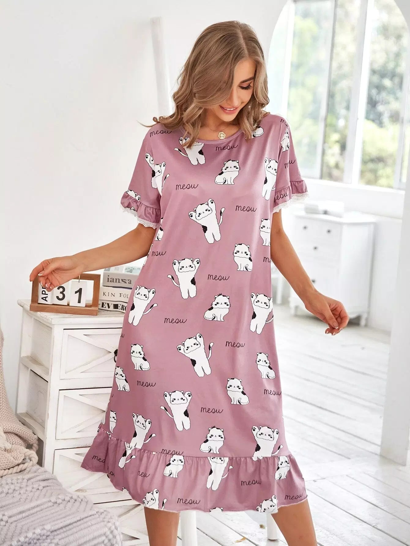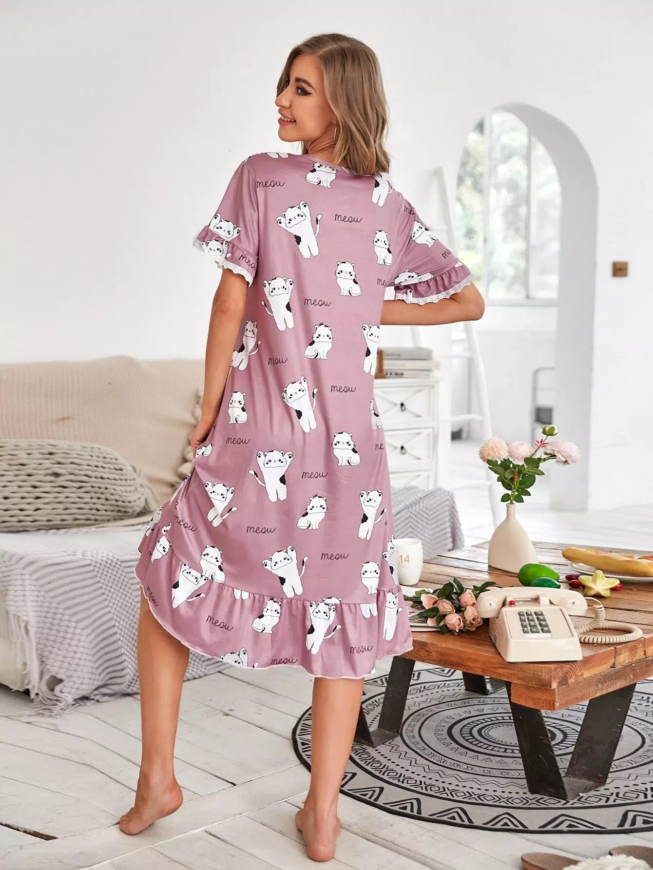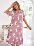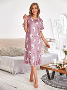 Cartoon & Letter Graphic Ruffle Trim Nightdress