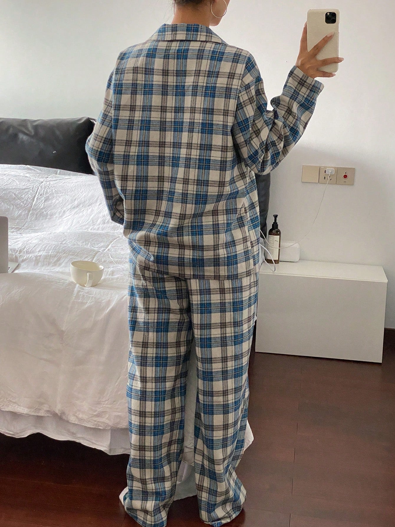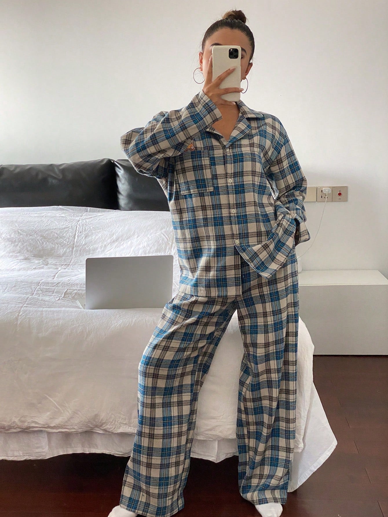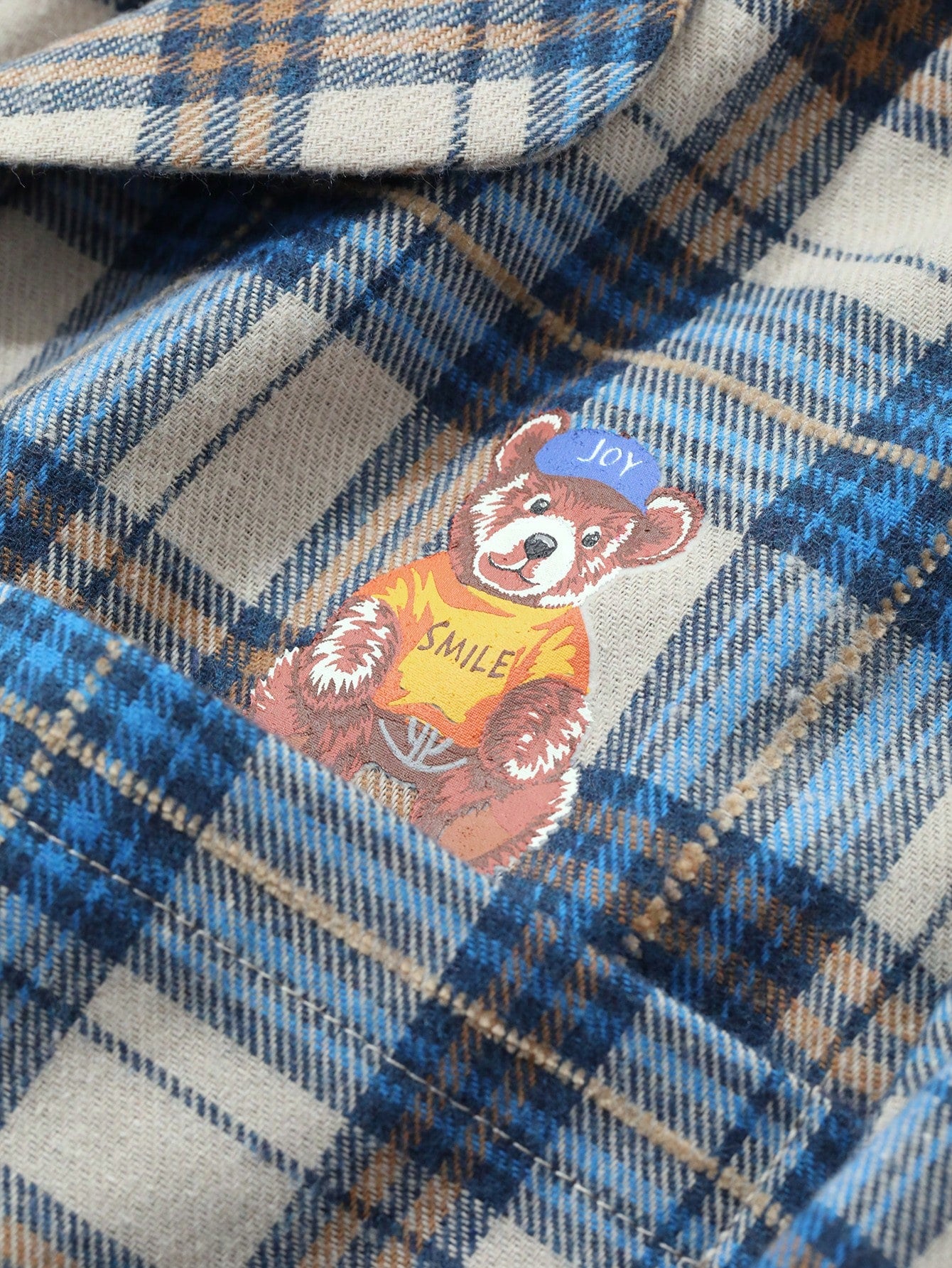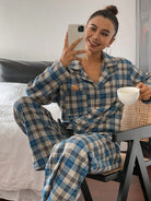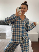 DAZY Cute Bear Pattern Plaid Fabric Loose Pajama Set