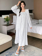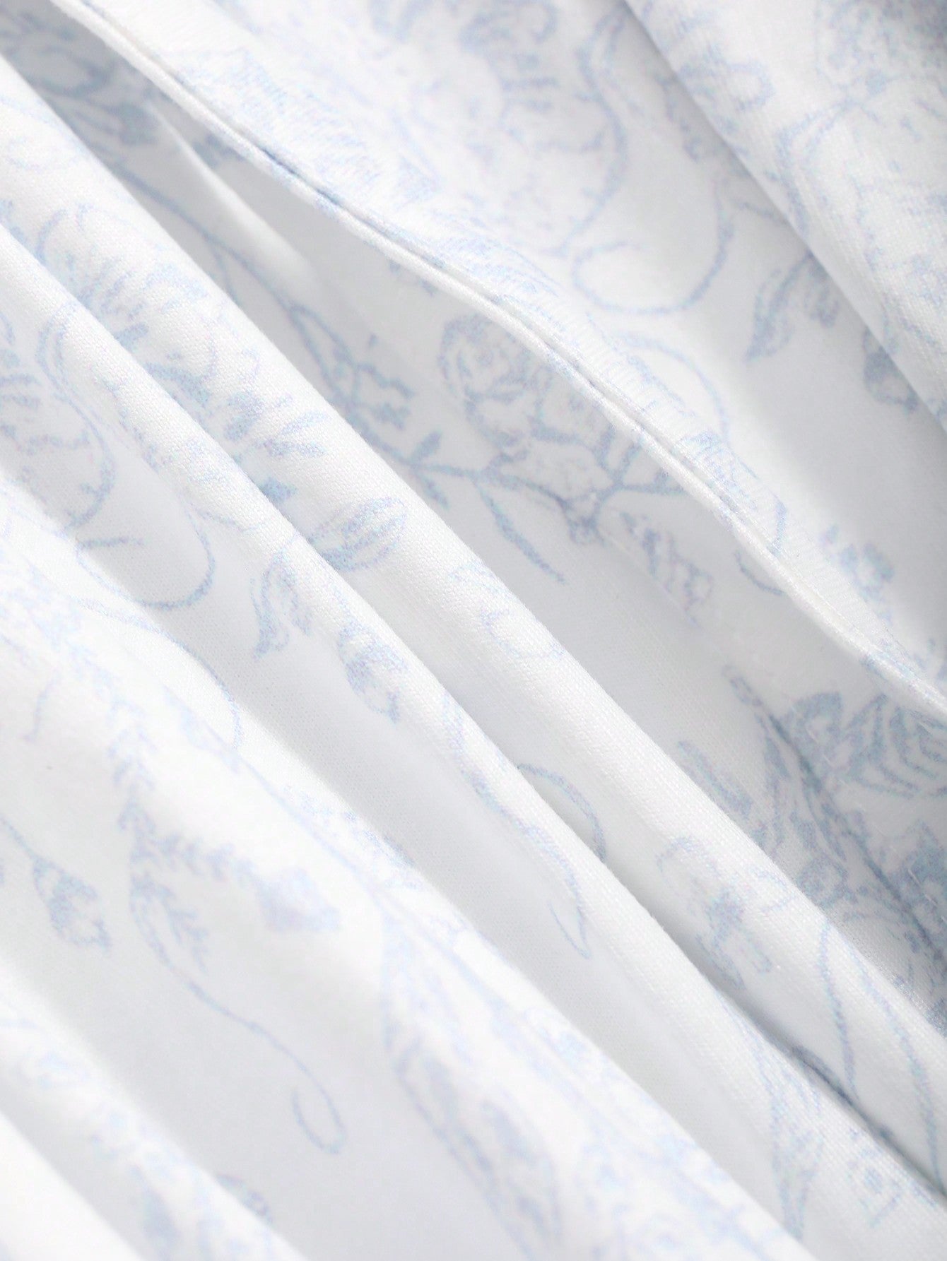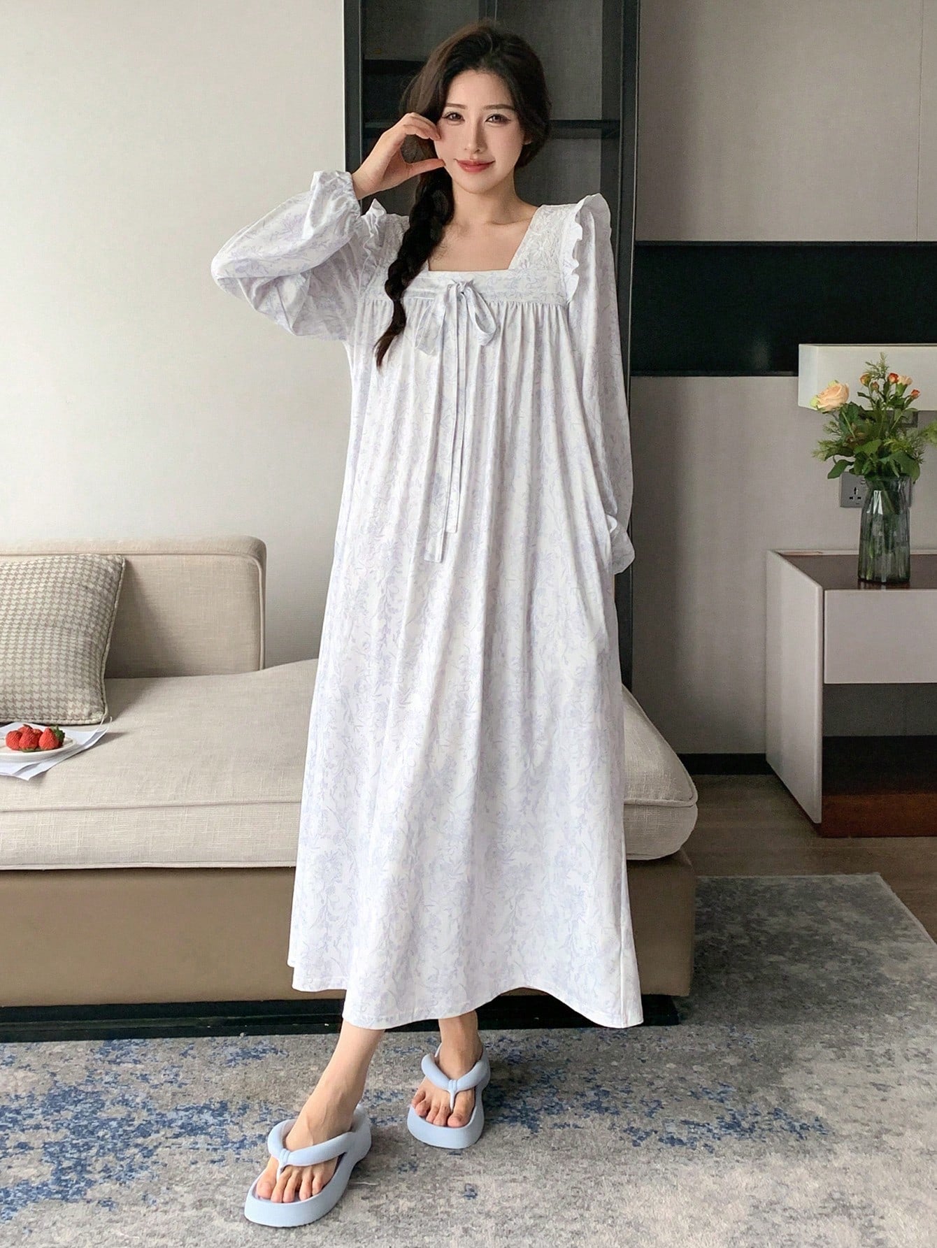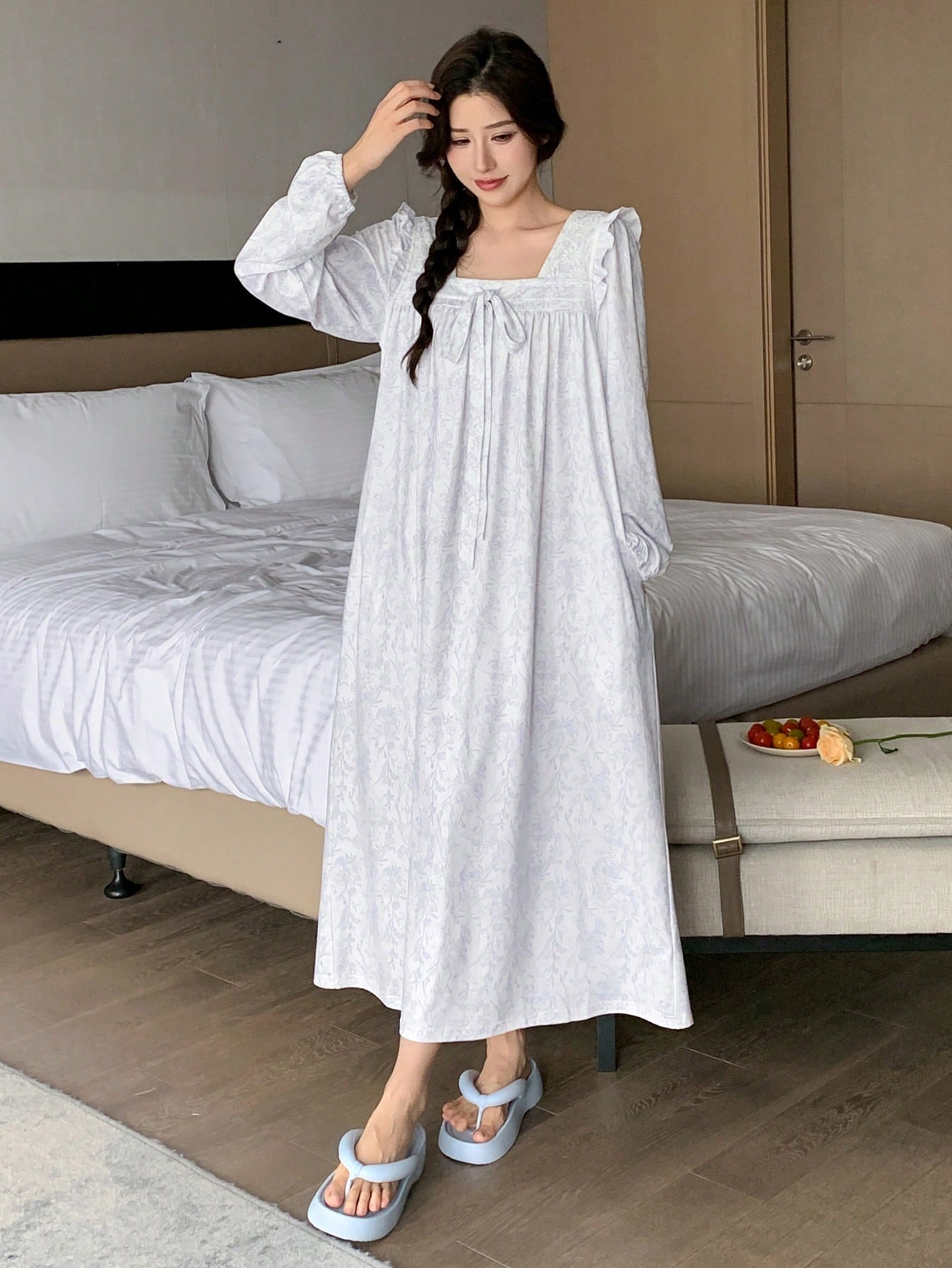 DAZY Floral Line Drawing Printed Ruffle Square Neck Sleep Dress