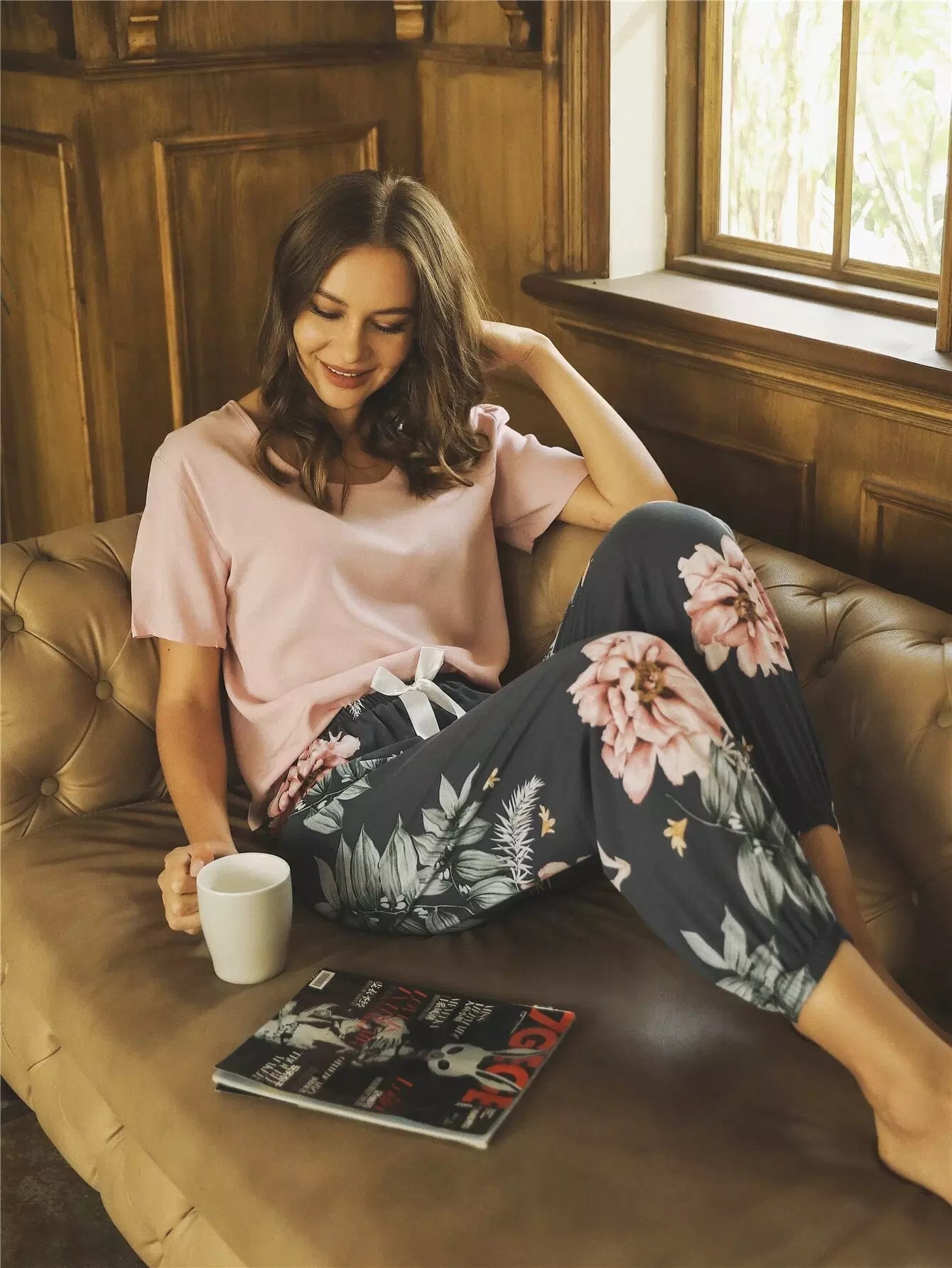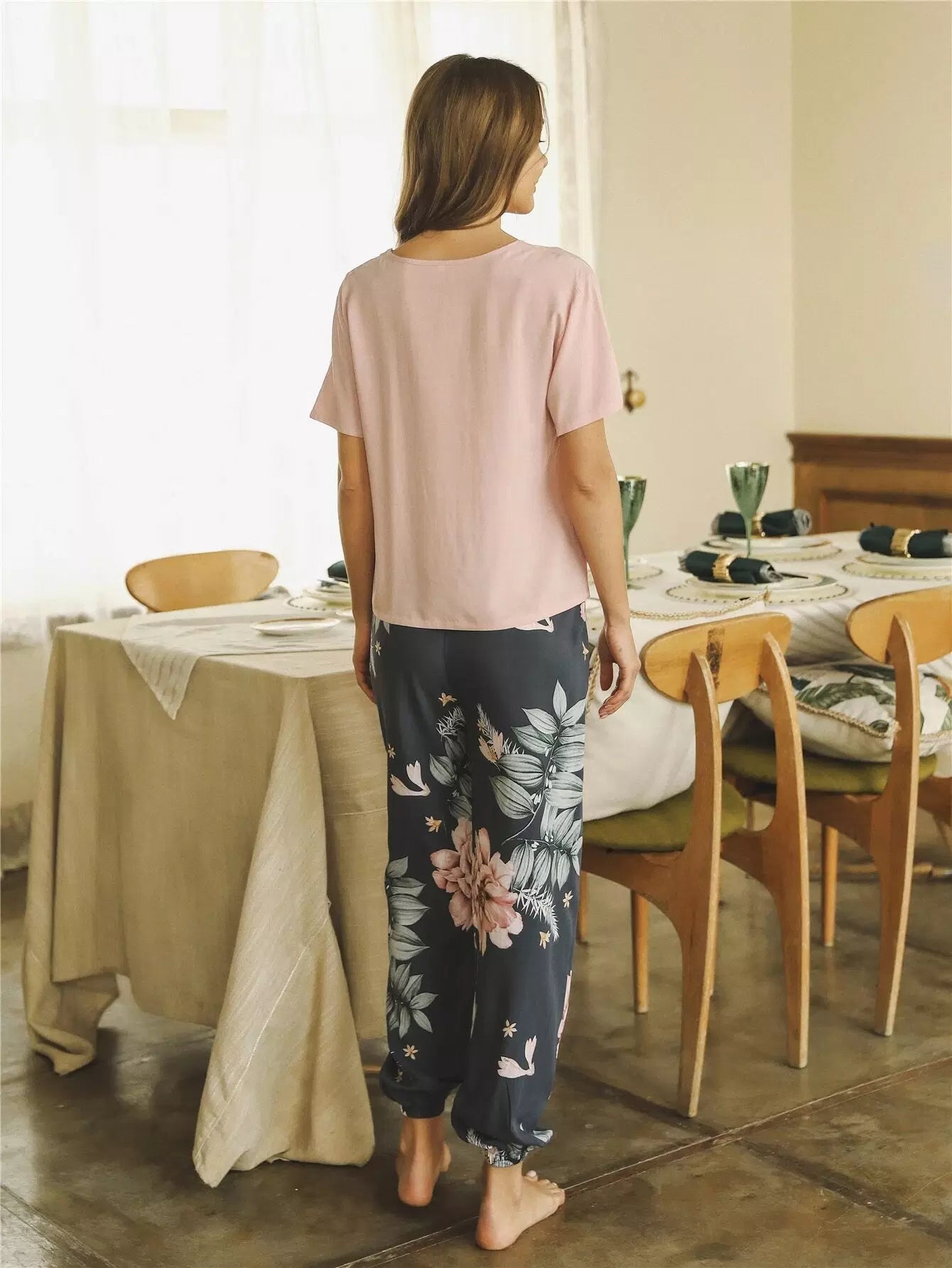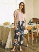 Floral Print Knot Front Pajama Set