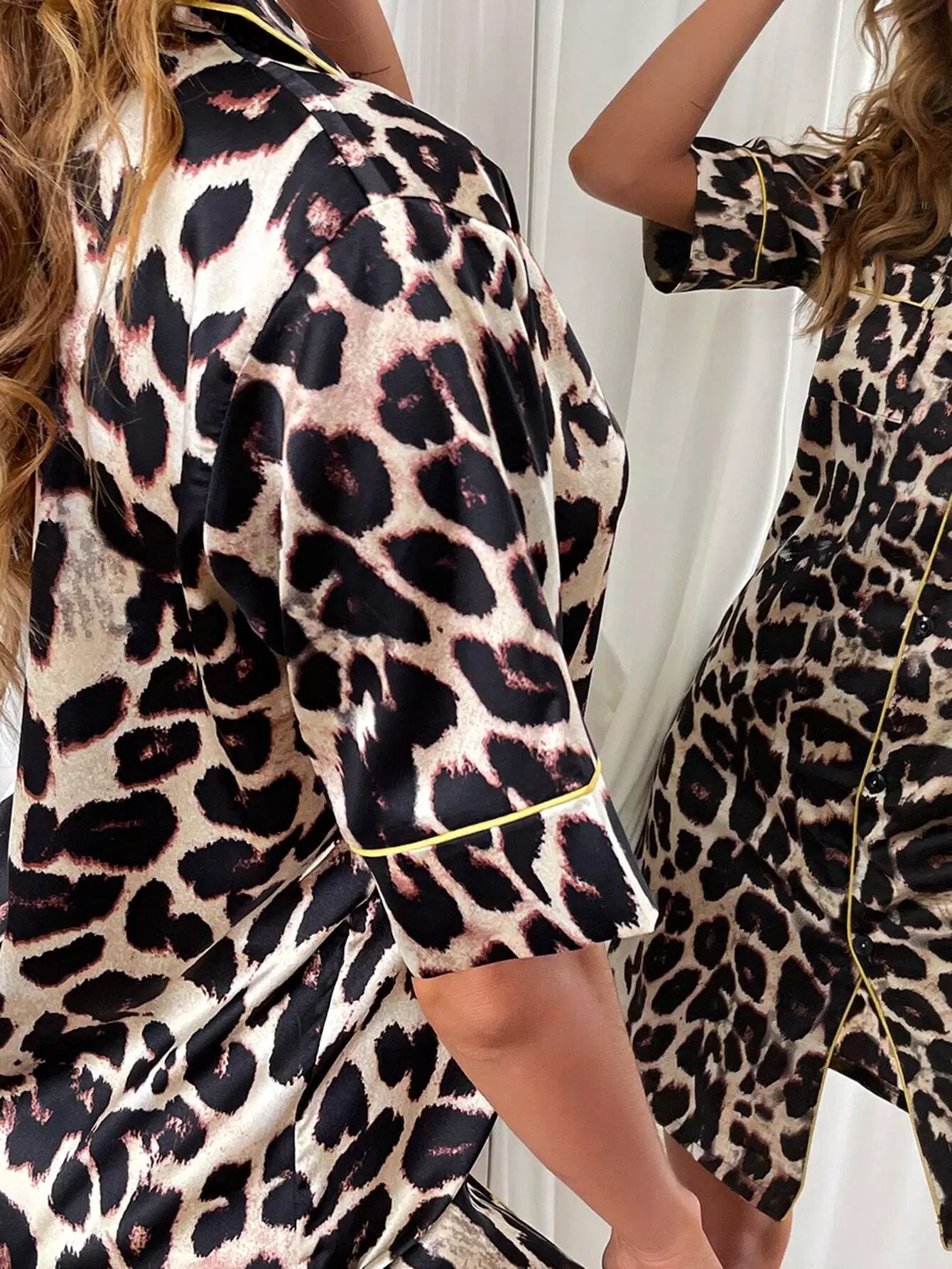 Leopard Print Button Front Contrast Binding Satin Night Dress