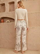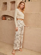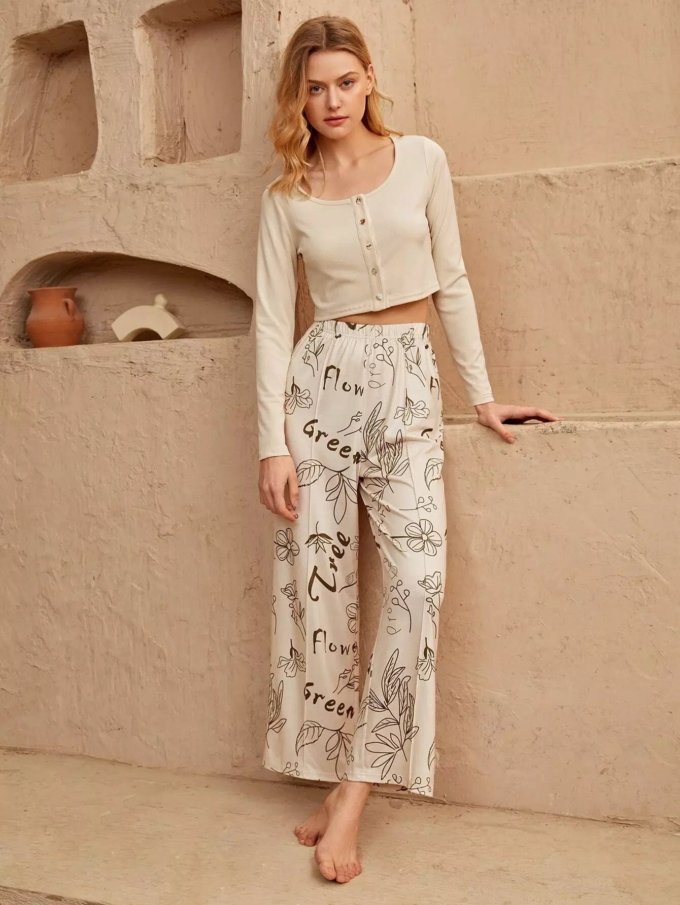 Letter & Floral Print Seam Detail PJ Set