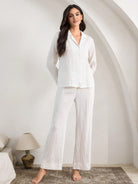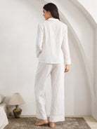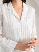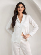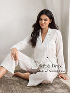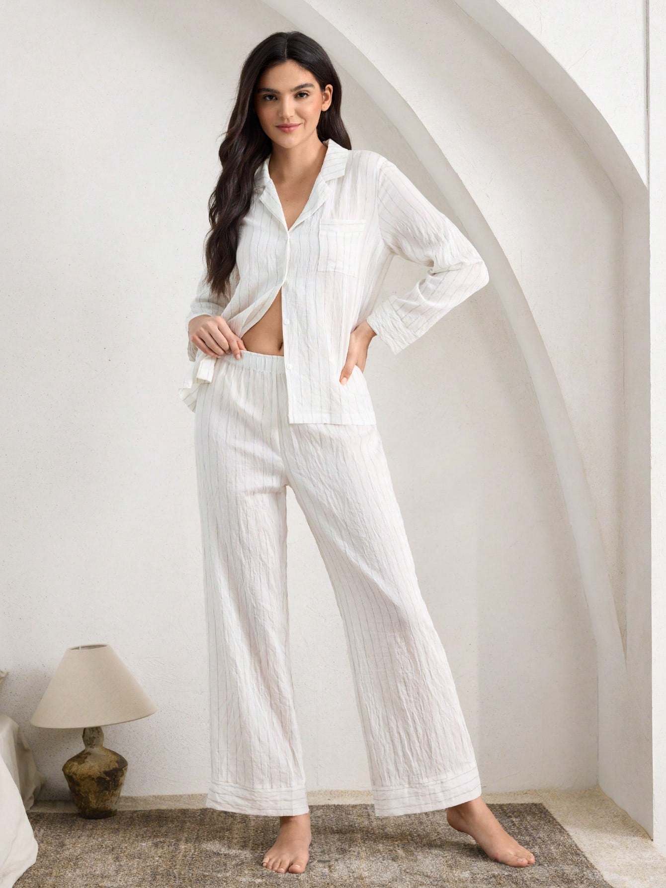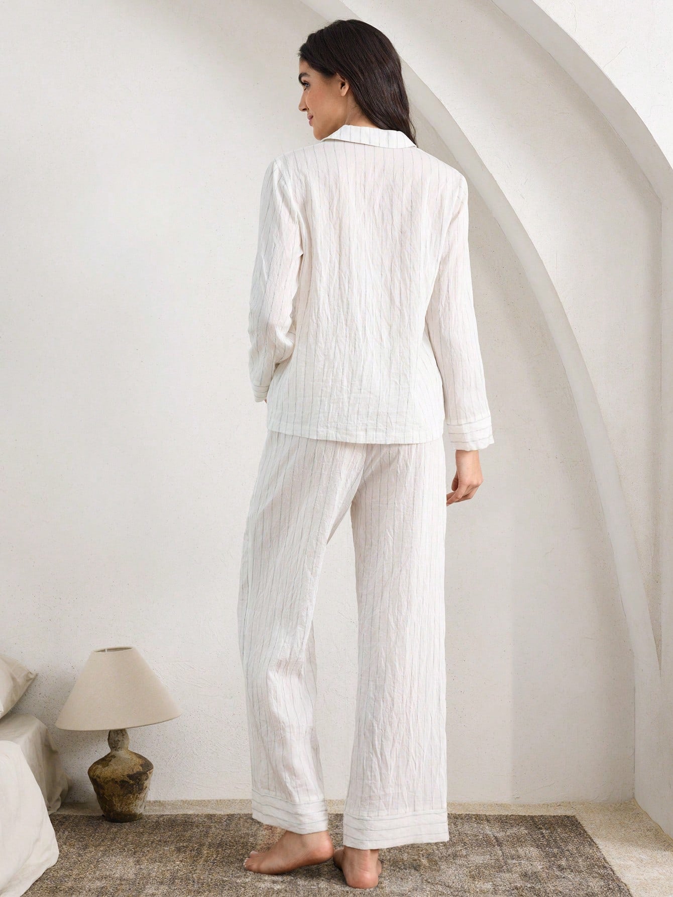 Ocili Leisure Linen Long Sleeve And Long Pants Stripe Pajama Set, Comfortable Holiday Season