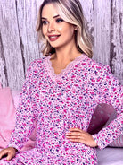 Women - Pink pajama with blue and red floral print