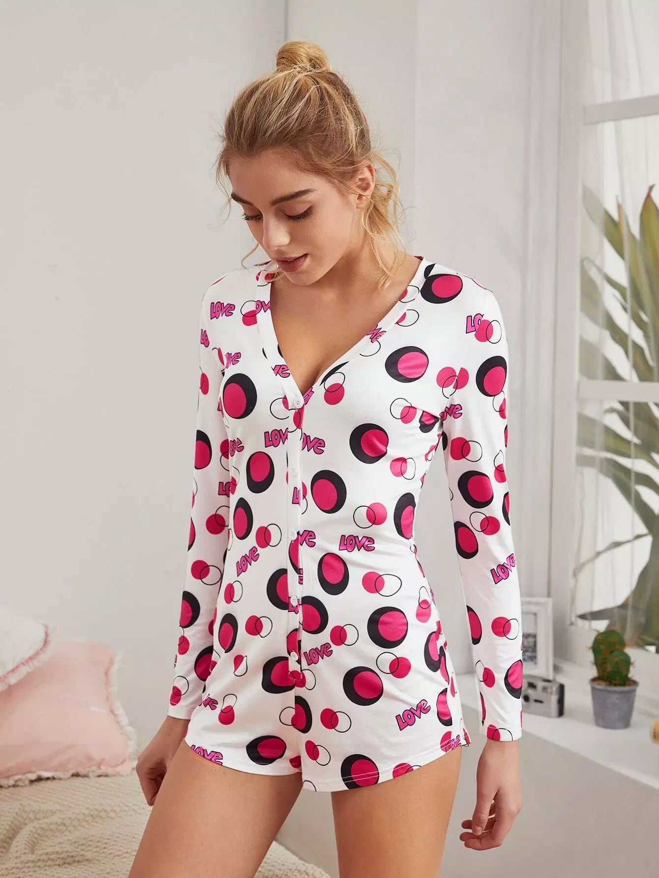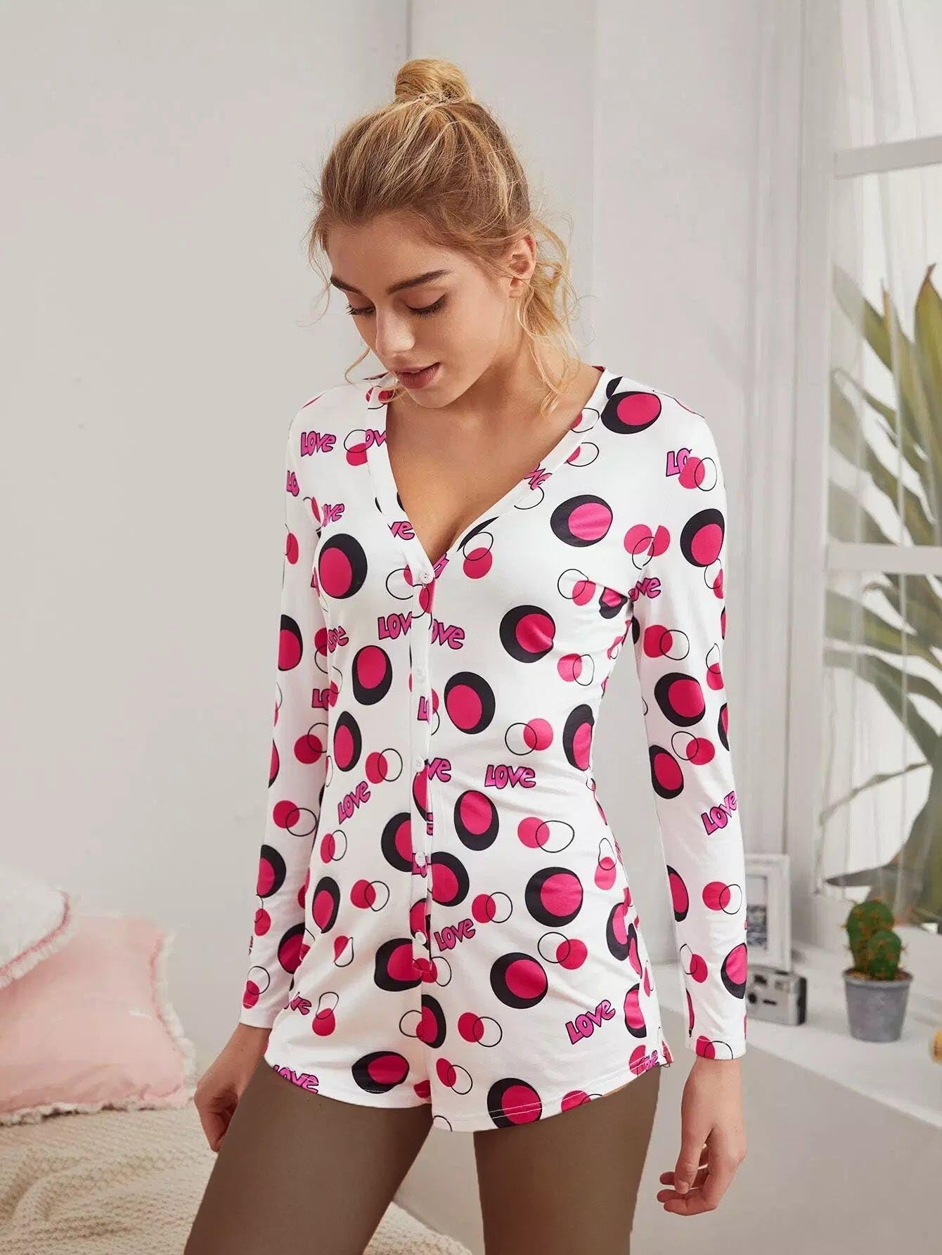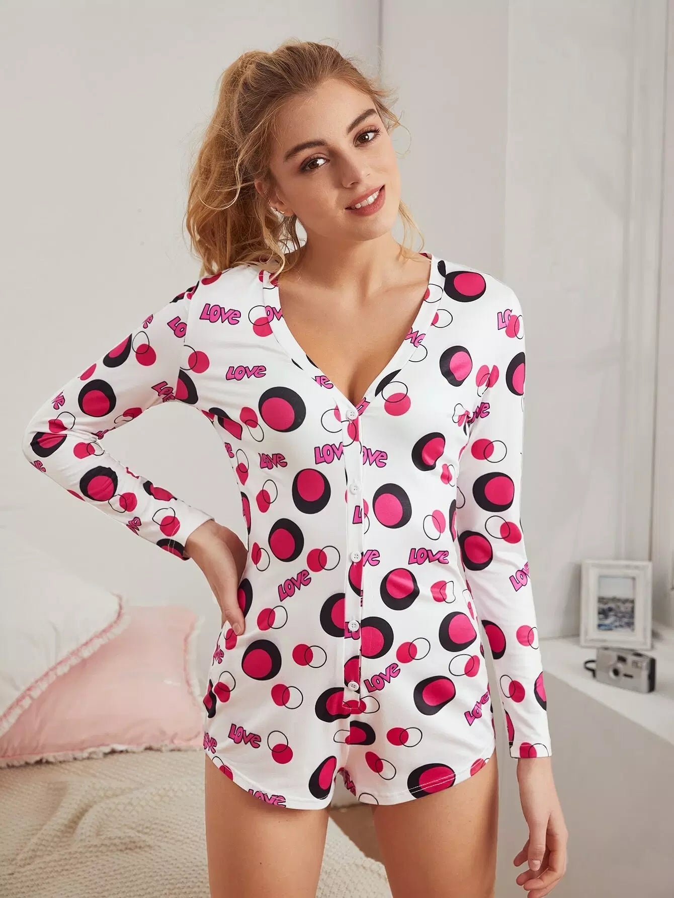 Polka Dot & Letter Graphic Sleep Romper