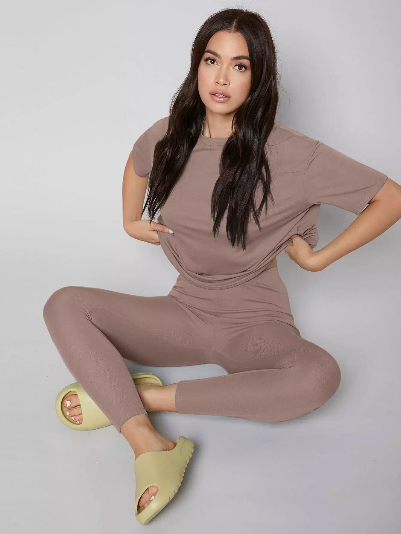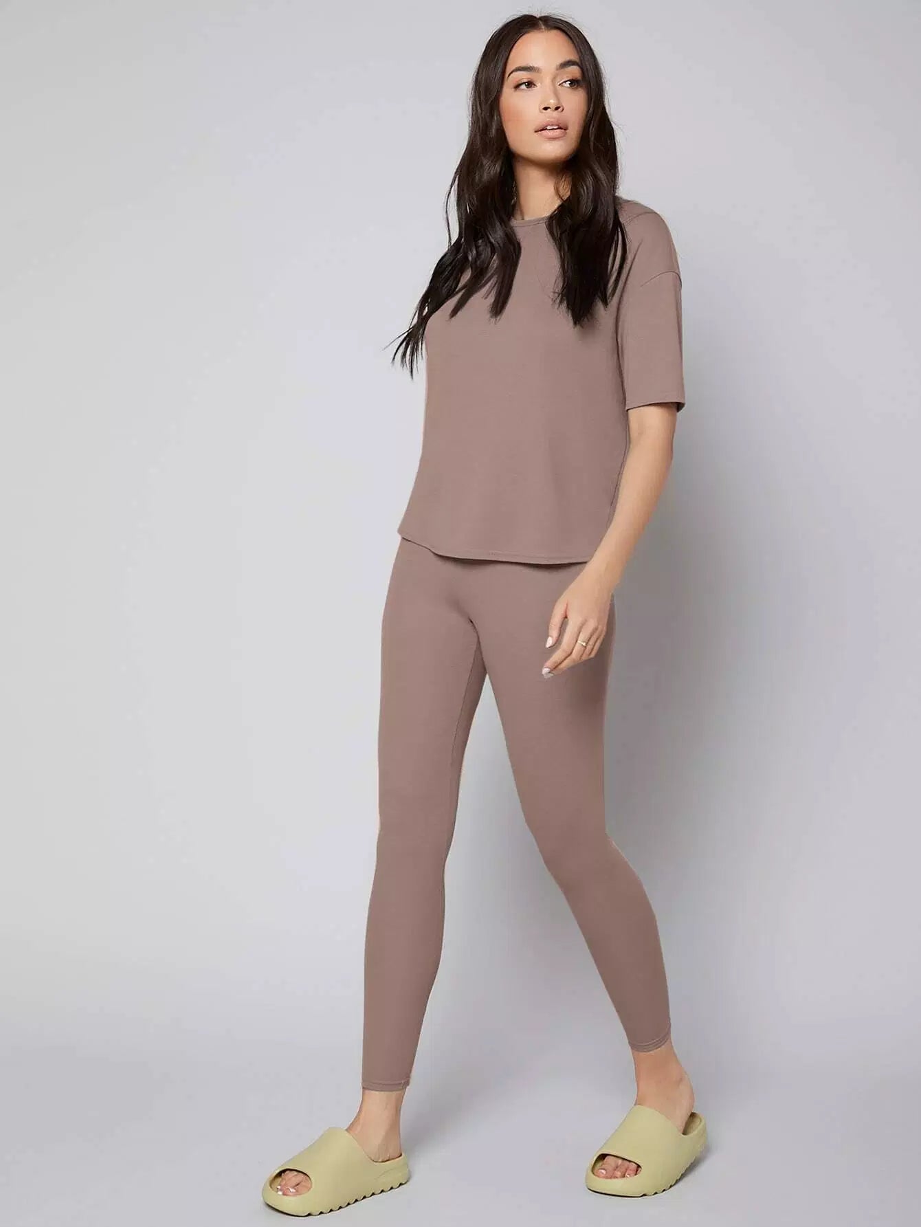 Solid Drop Shoulder Lounge Set