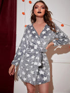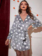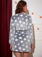 Star Pattern Pocket Front Flannel Lounge Robe Without Belt
