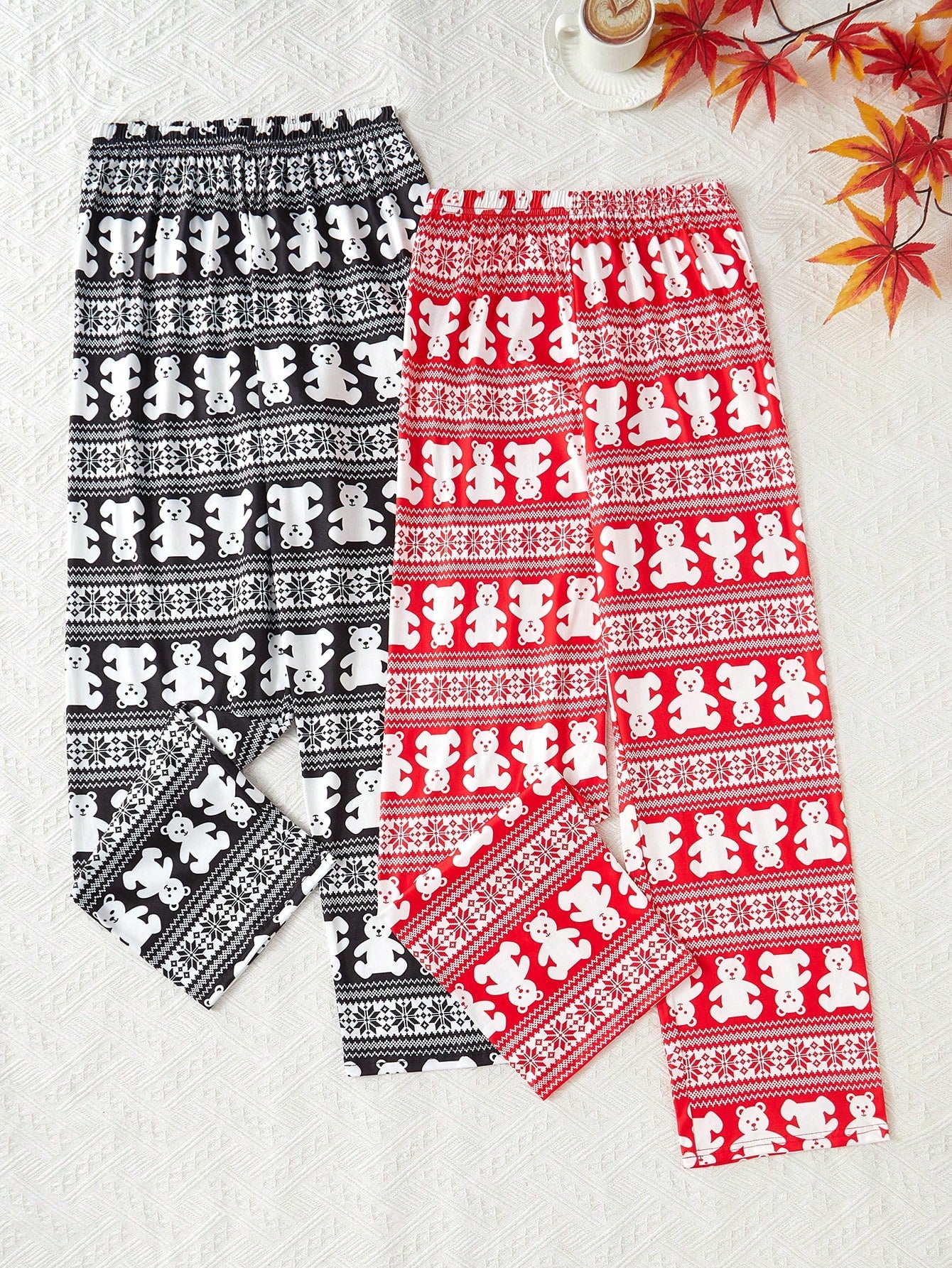 women 2pcs Women Bear & Geometric Print Pajama Set