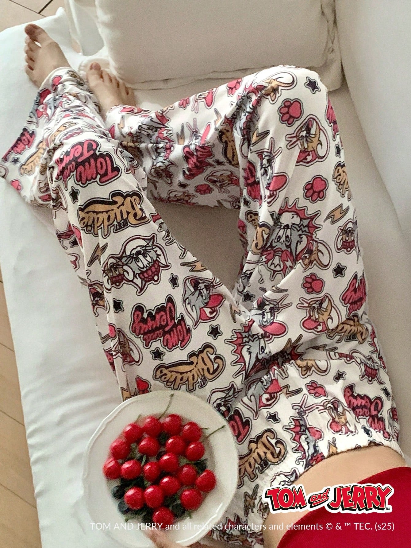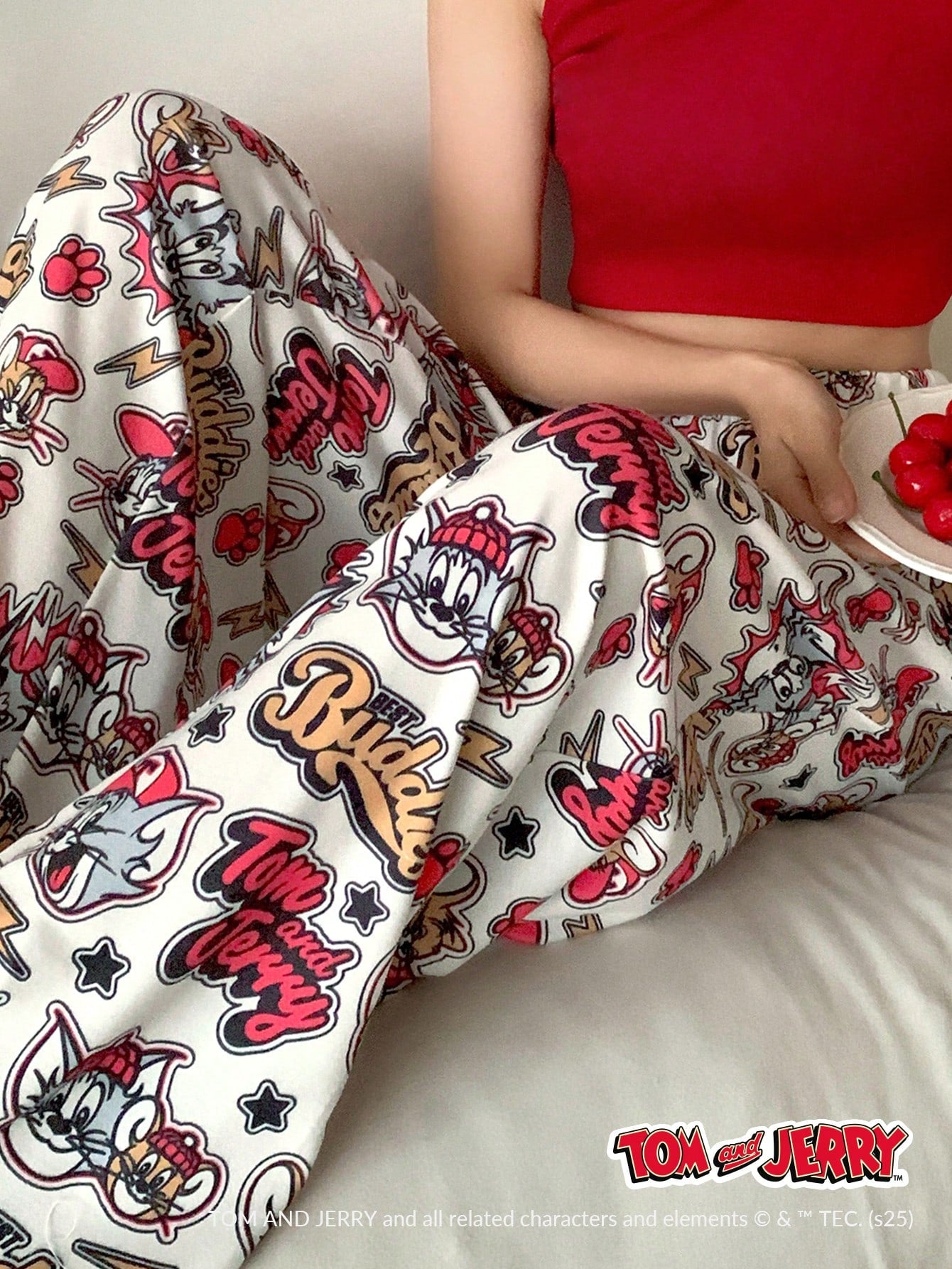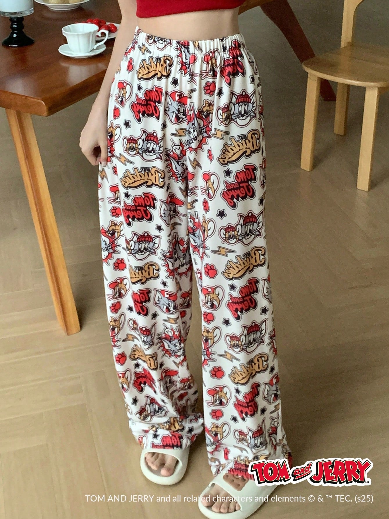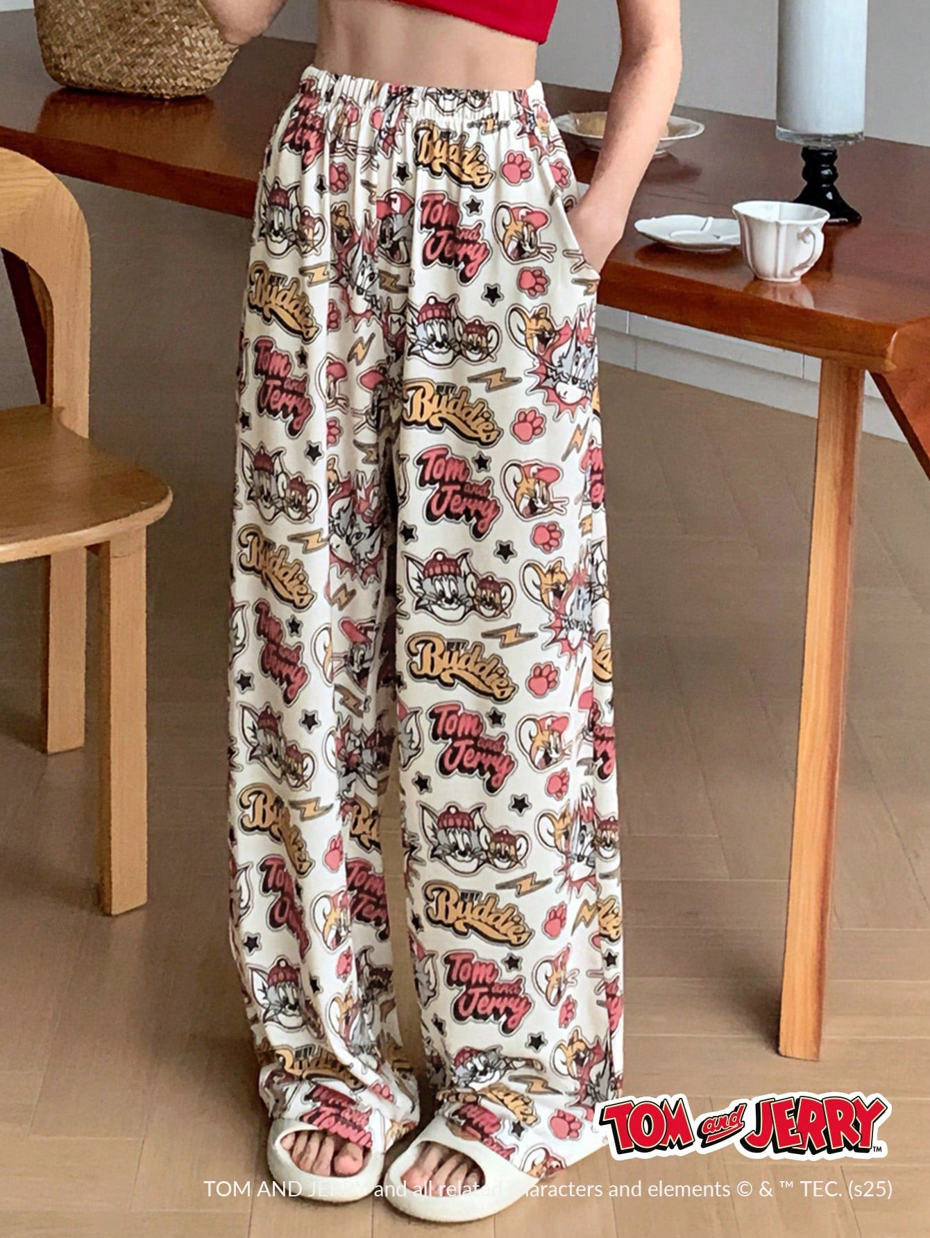 DAZY TOM AND JERRY X DAZY Cartoon Print Long Loose Fit Women Sleepwear Bottoms