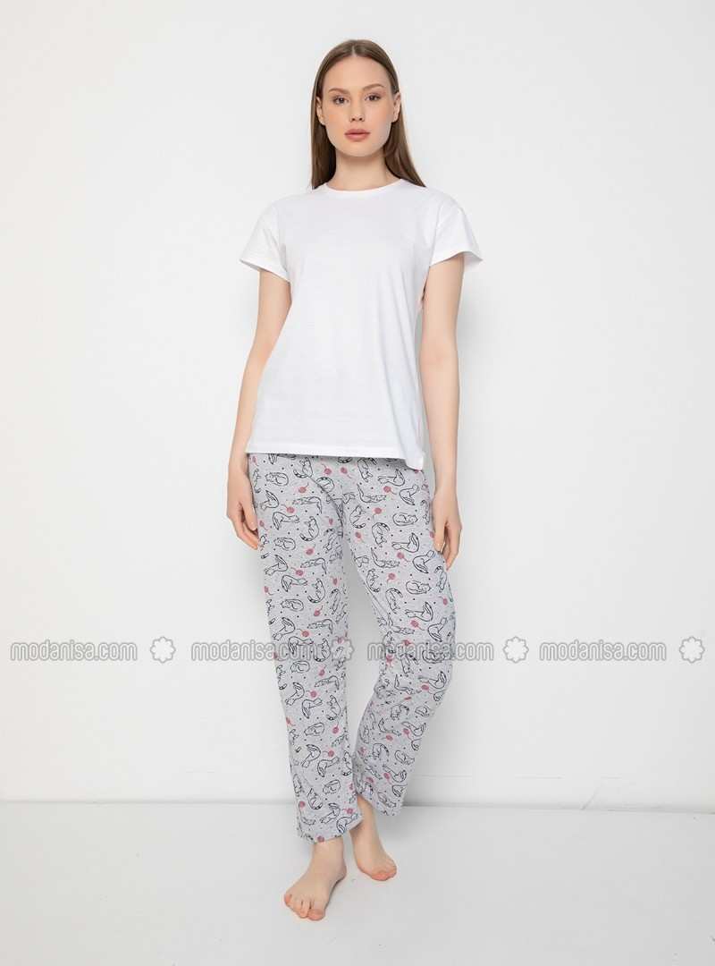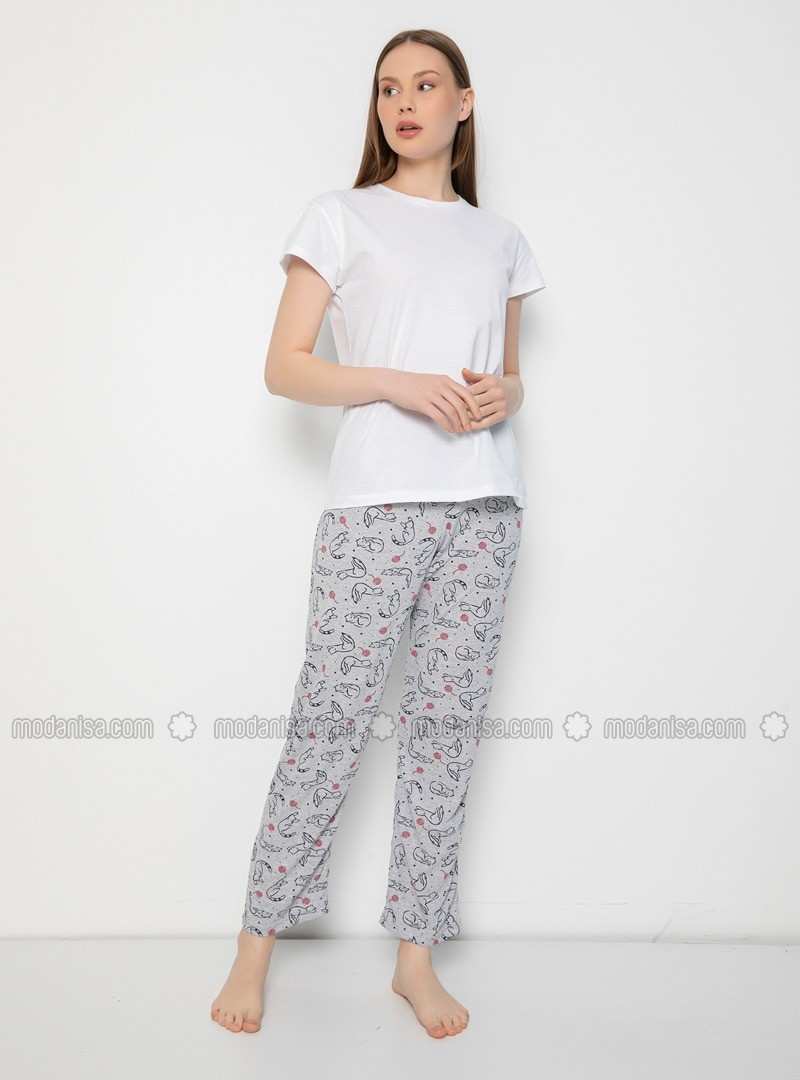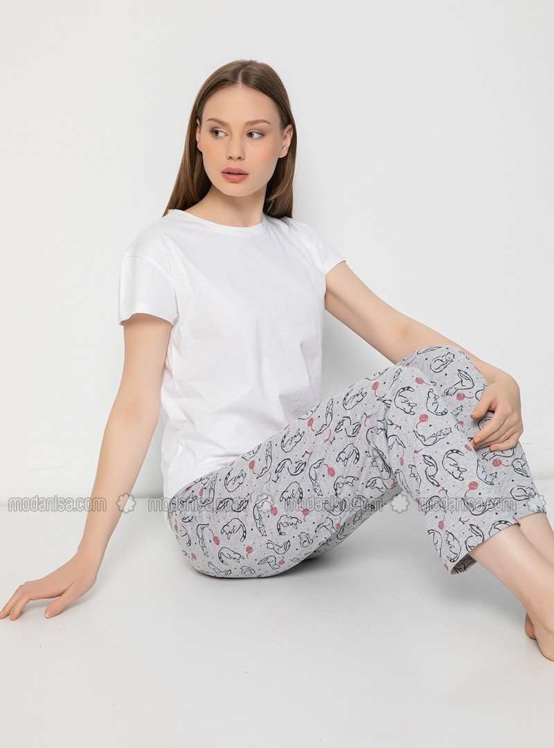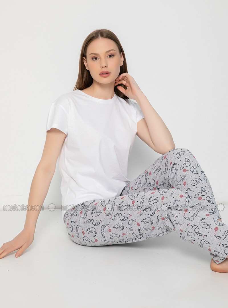 Gray Crew neck Multi Pyjama(pants only)