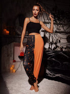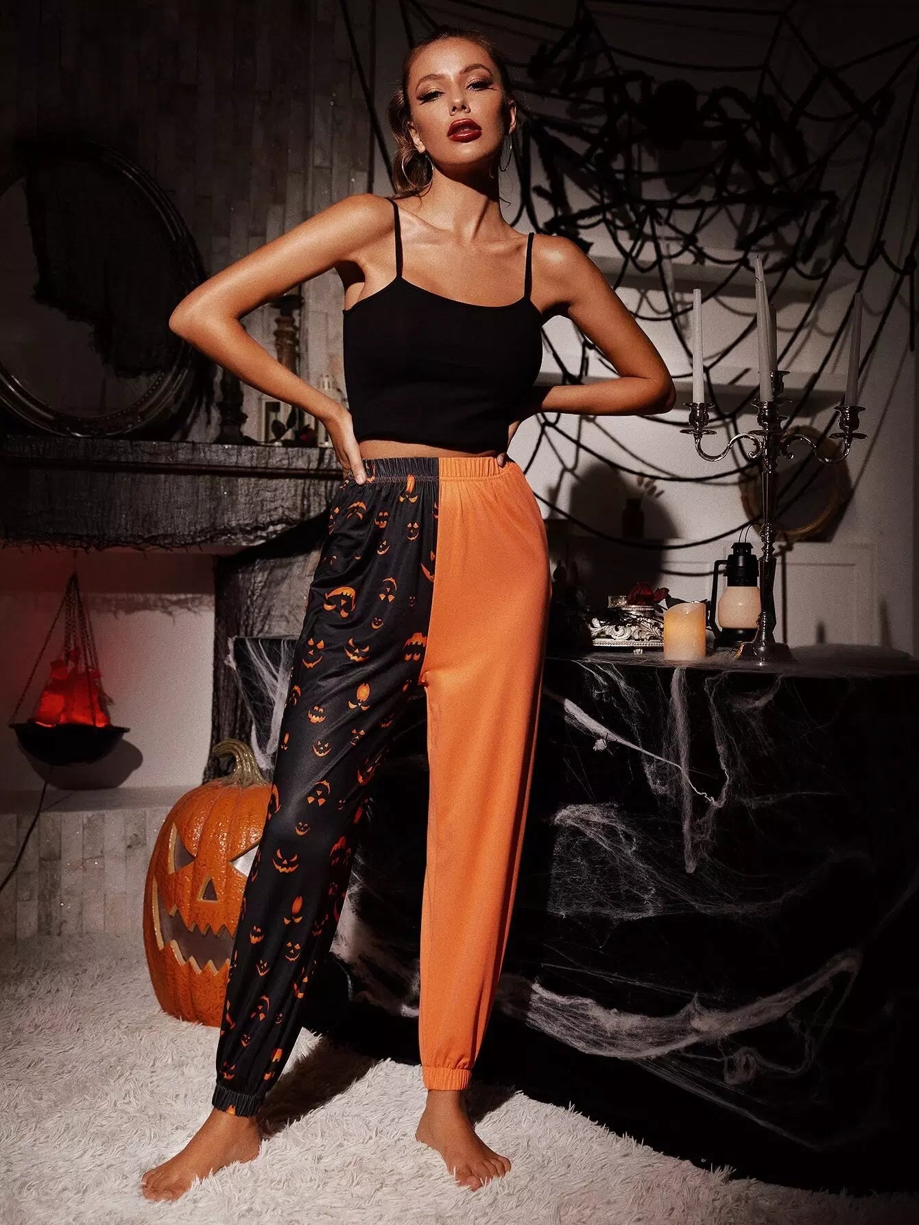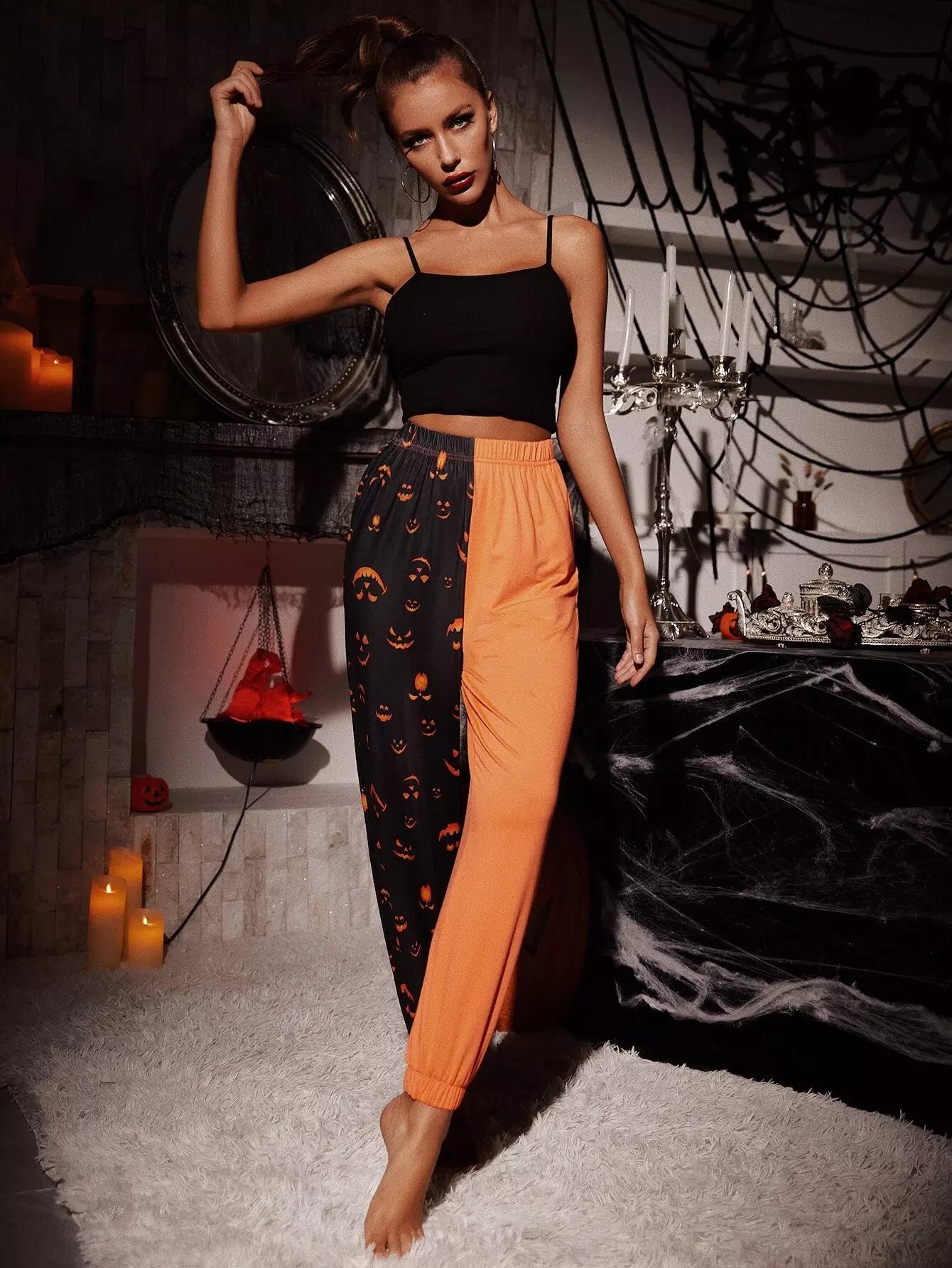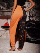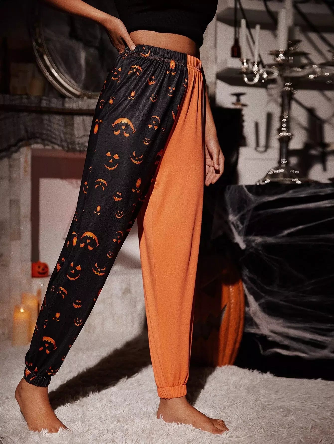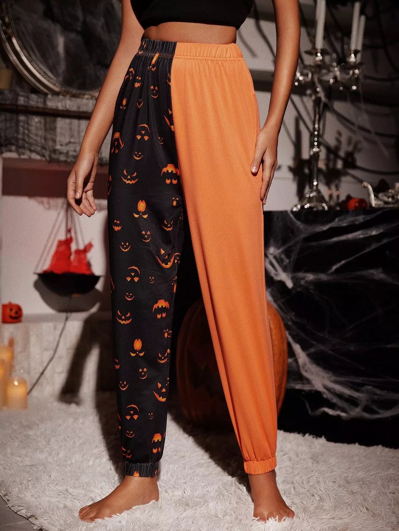 Halloween Pumpkin Print Two Tone Sleep Pants