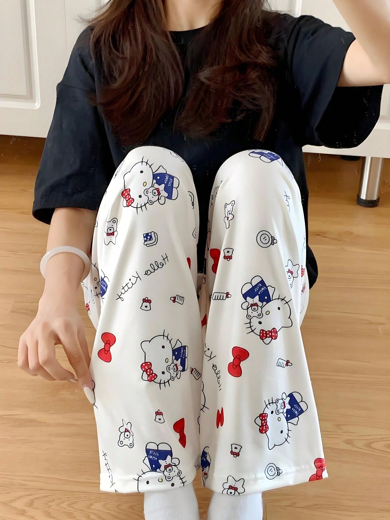 Sanrio Women's Comfortable Loose Hello Kitty Cartoon Print Pants
