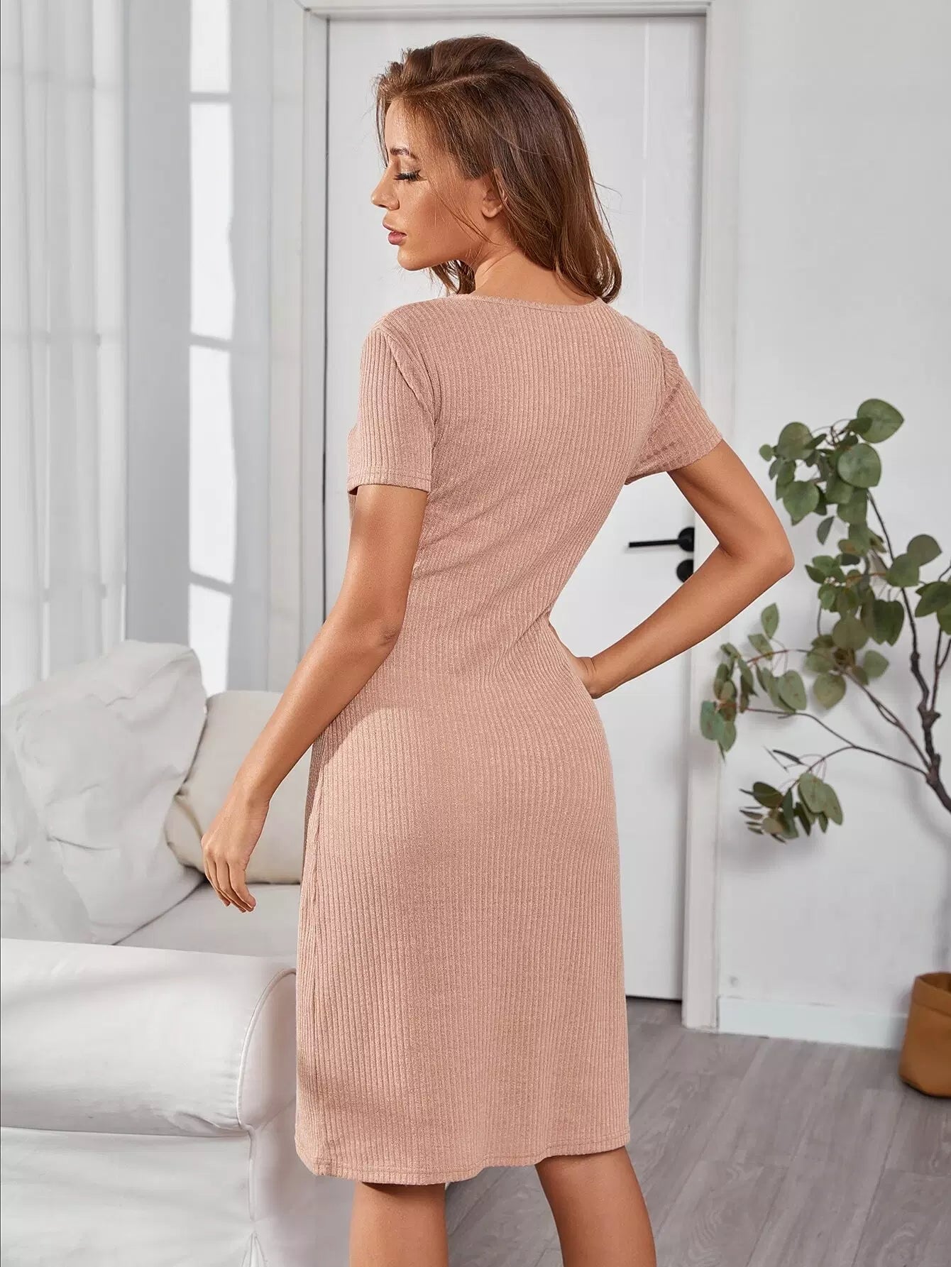 Notched Neck Rib-knit Lounge Dress