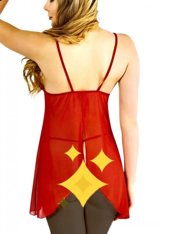 Women - Sleeping pajama with straps of red and transparent lace 2 pieces
