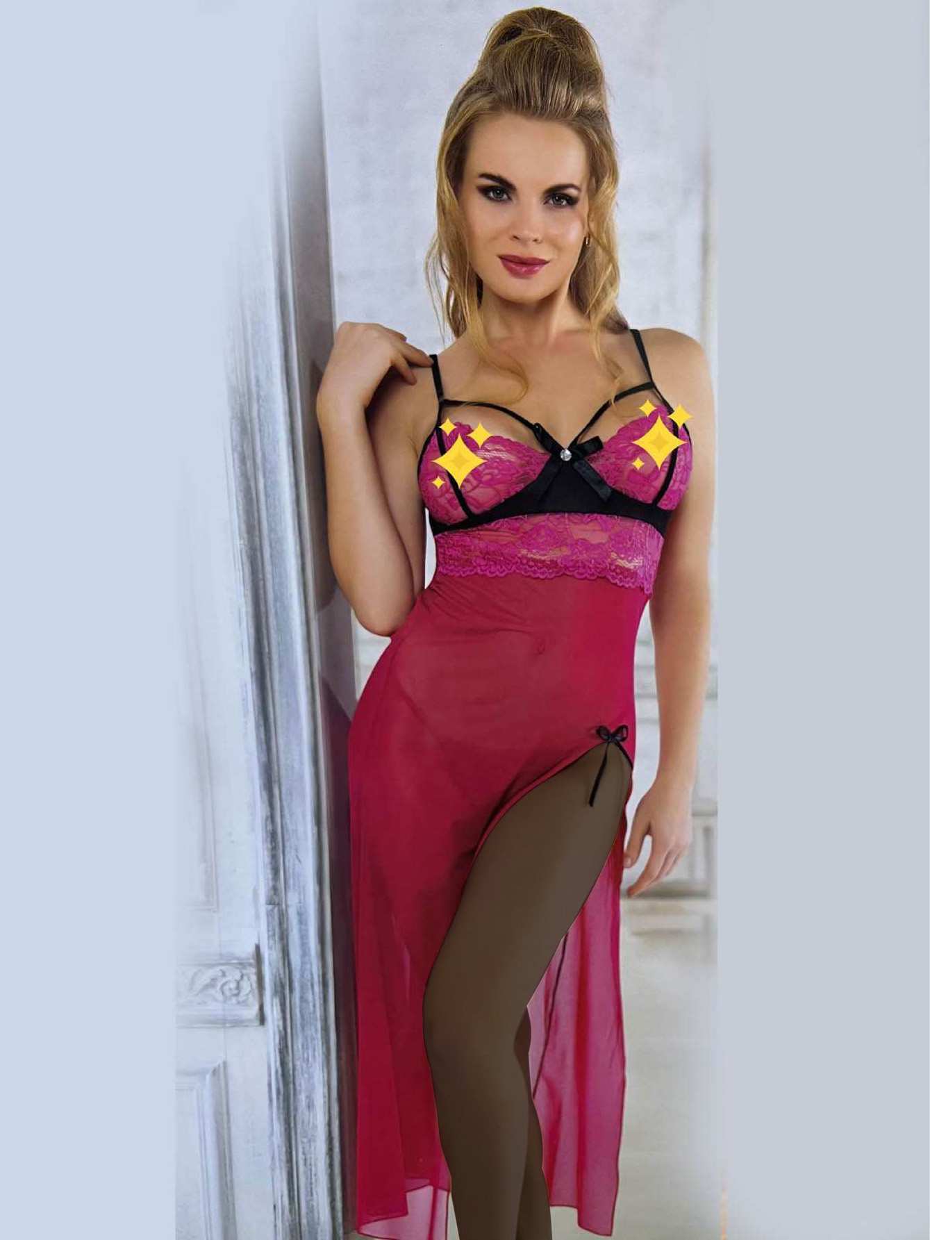 Lounge Dresses - Sleepshirt with lace straps two pieces Bambi and black