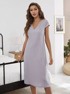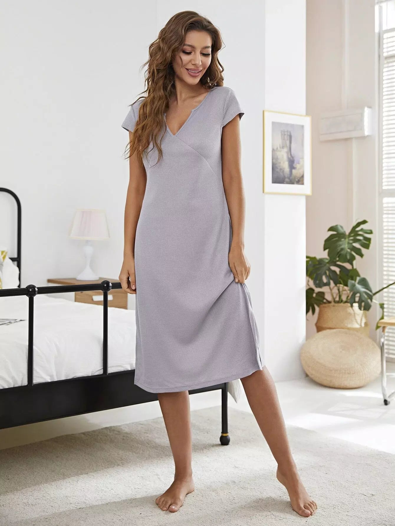 Waffle Knit Notch Neck Slit Hem Nightdress