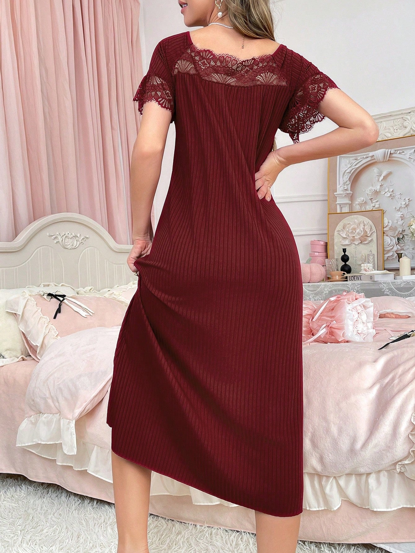 Women's Ruffle Lace Loose Nightgown Simple & Fashionable For Everyday Casual Wear