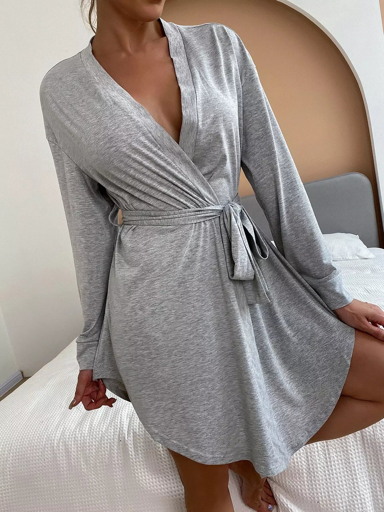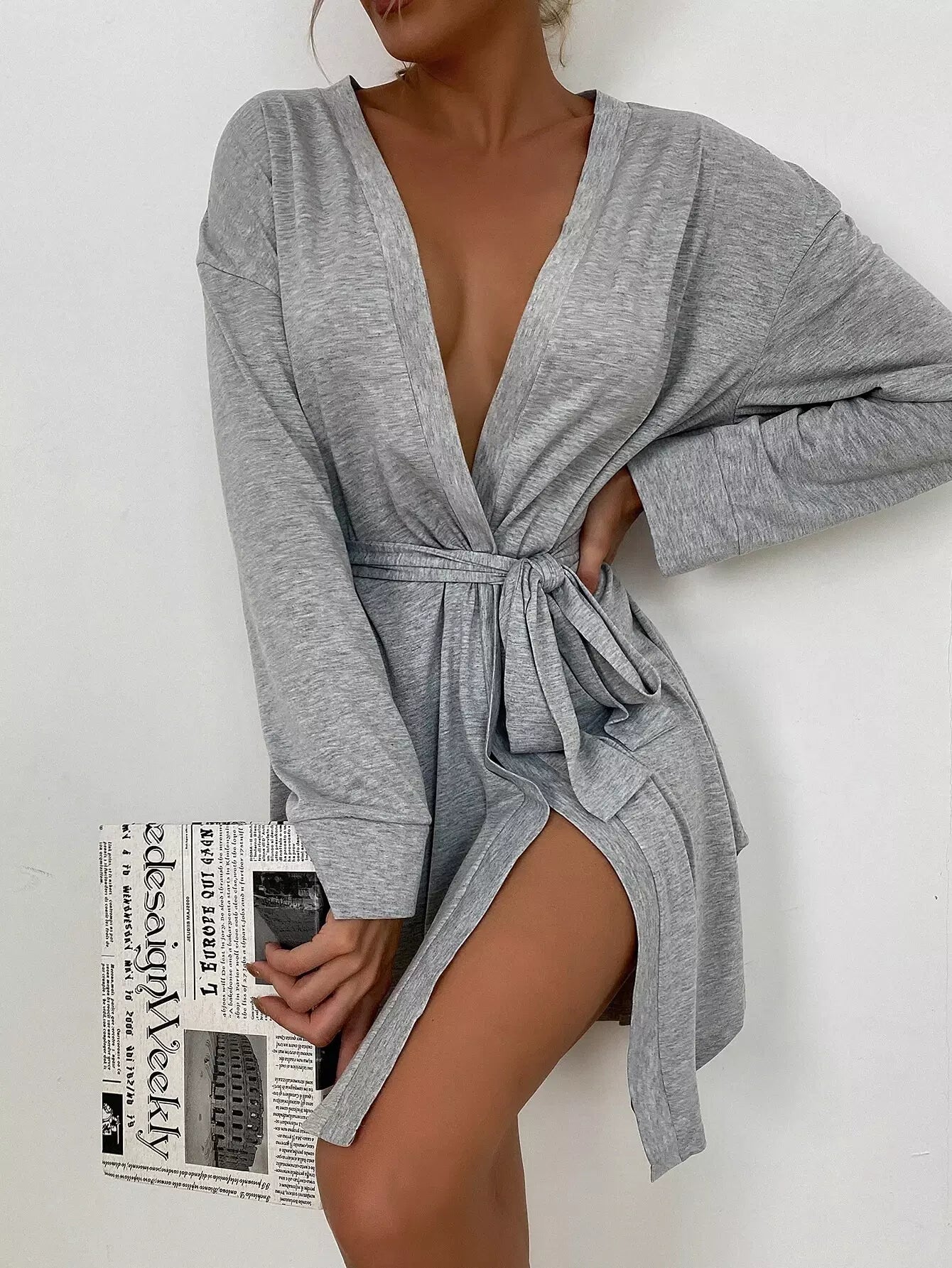 Drop Shoulder Open Front Lounge Robe Without Belt