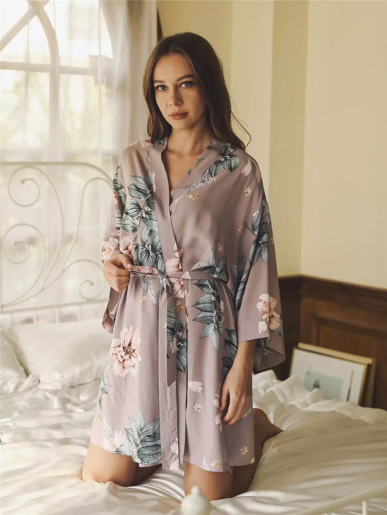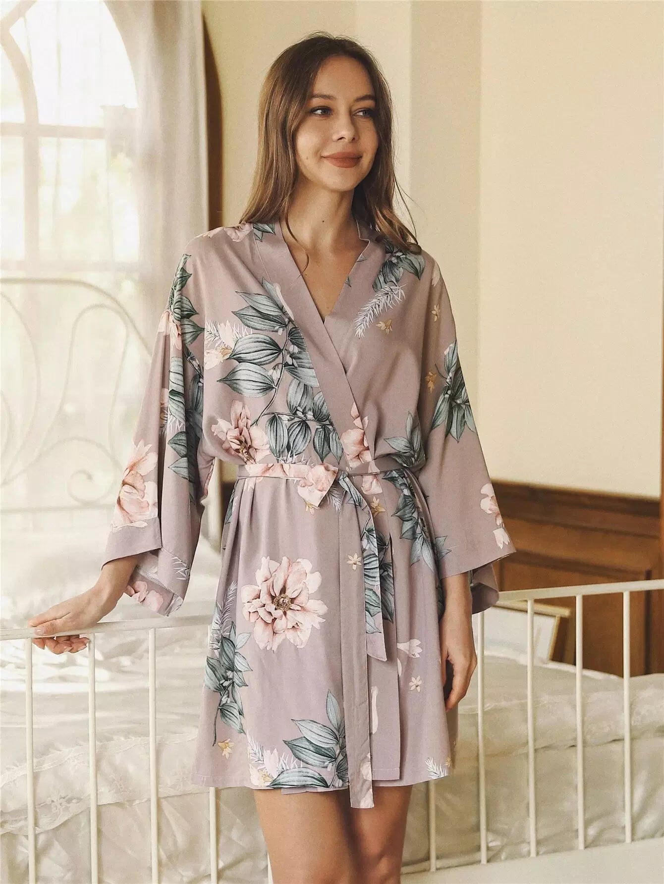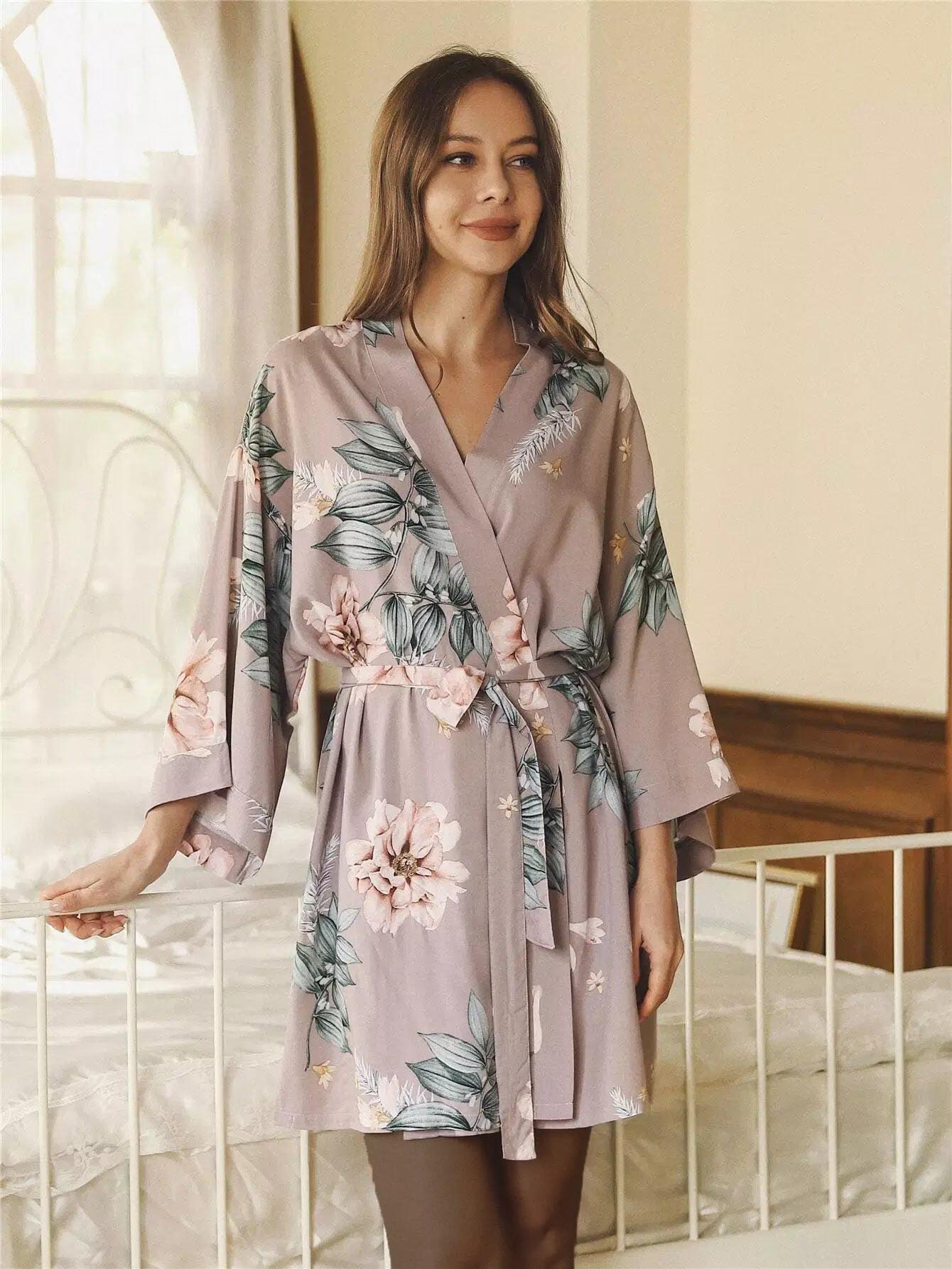 Floral Print Robe Without Belt