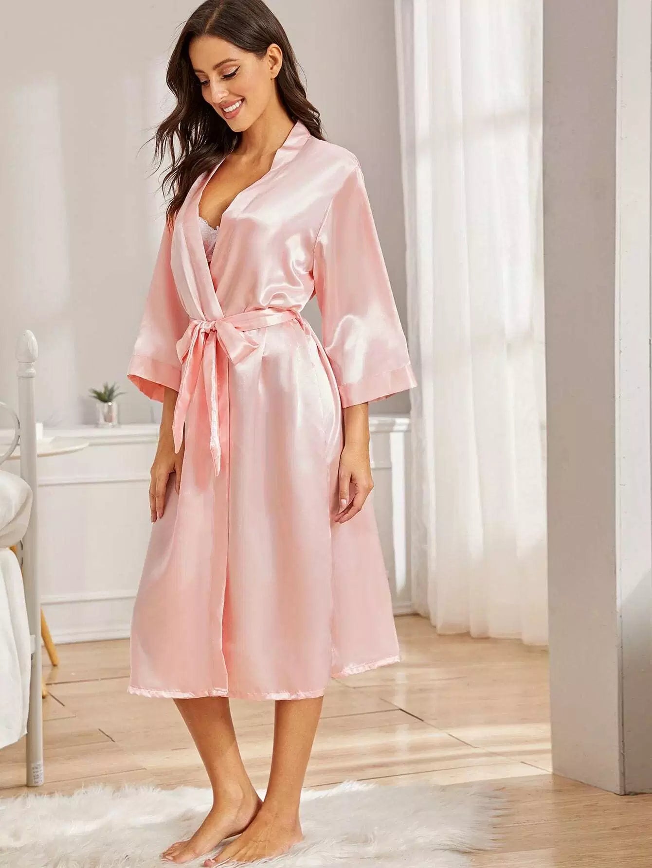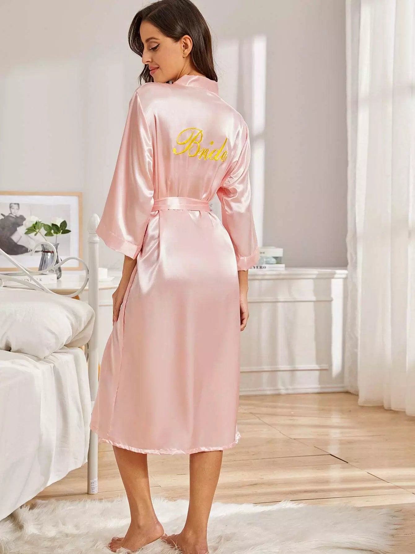 Letter Embroidery Satin Bride Robe Without Lingerie Without Belt