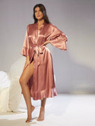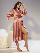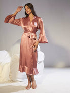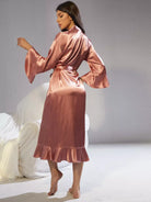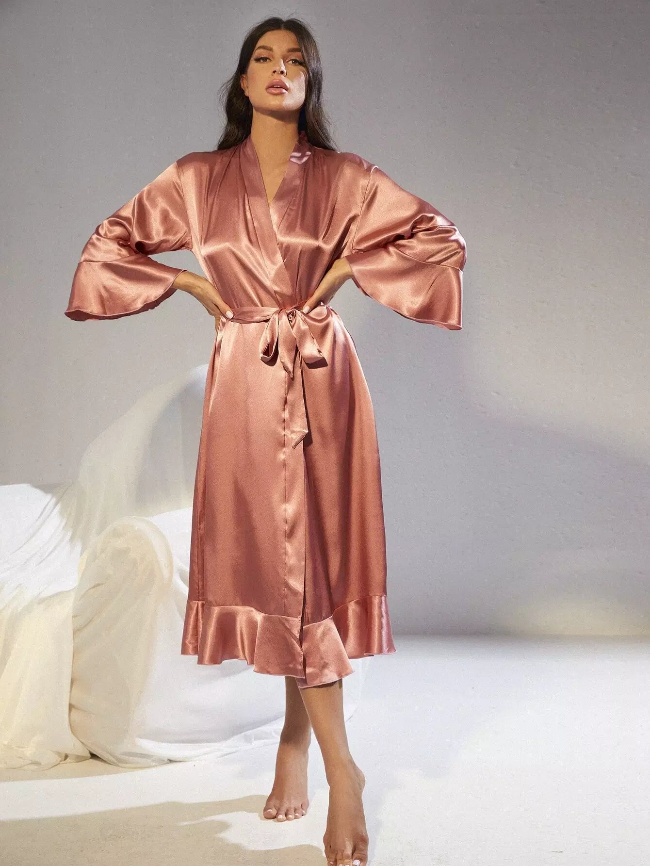 Satin Flounce Sleeve Ruffle Hem Night Robe Without Belt