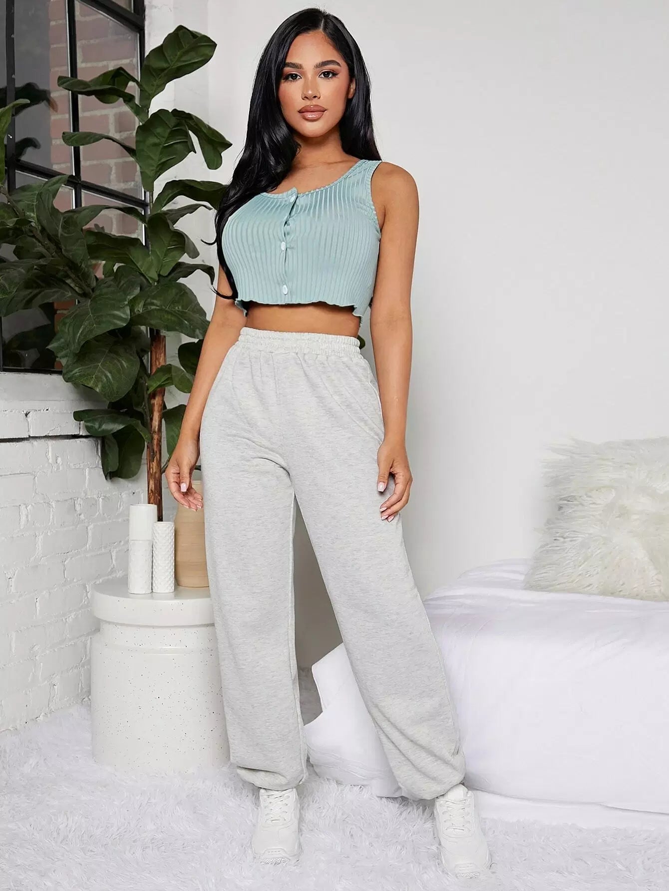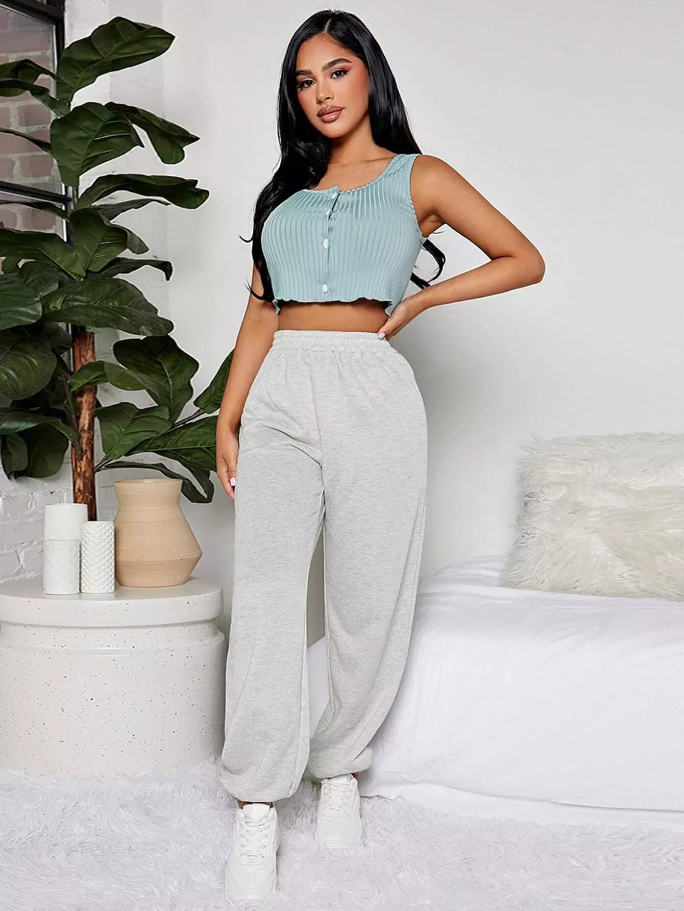 Button Front Tank Top & Pants PJ Set