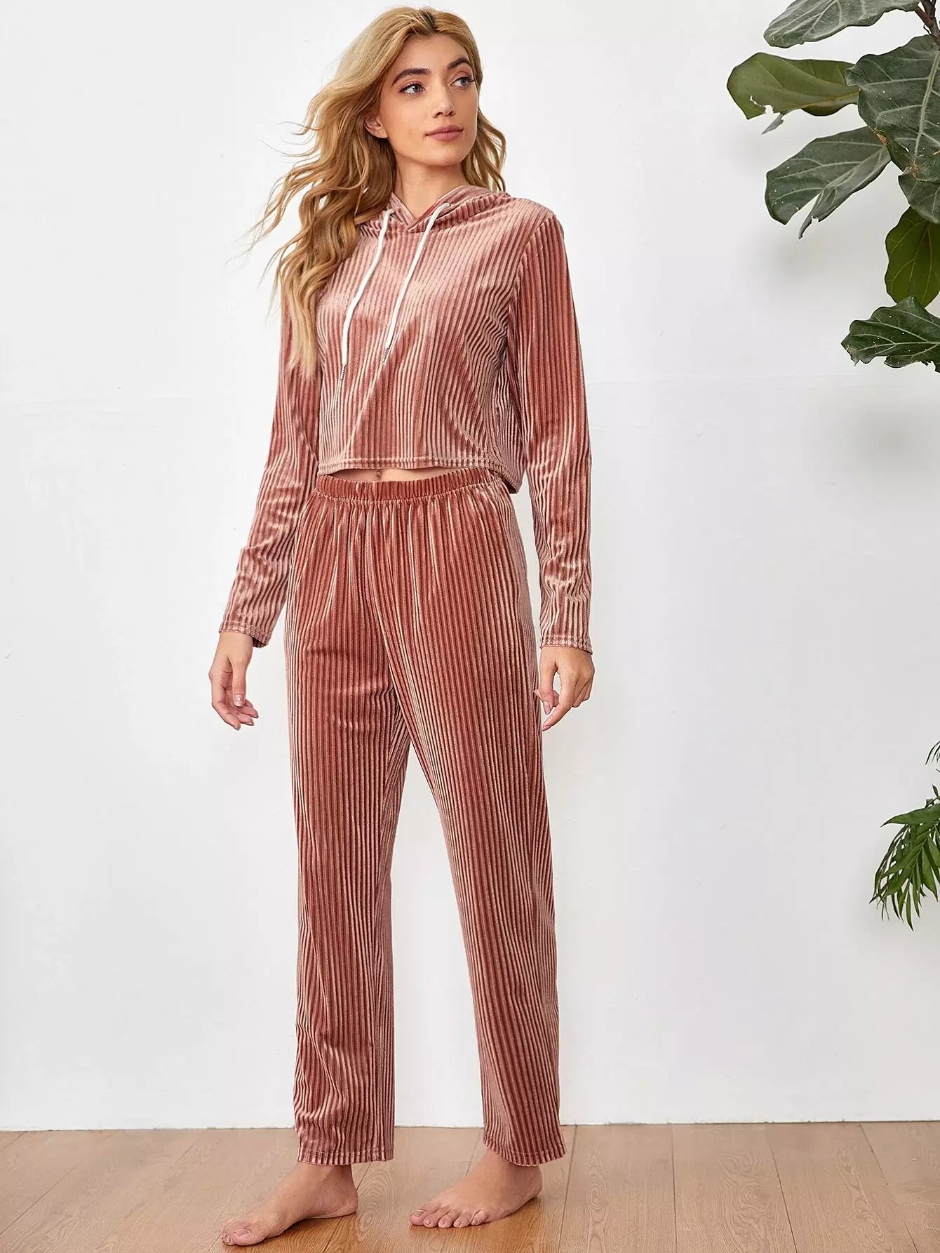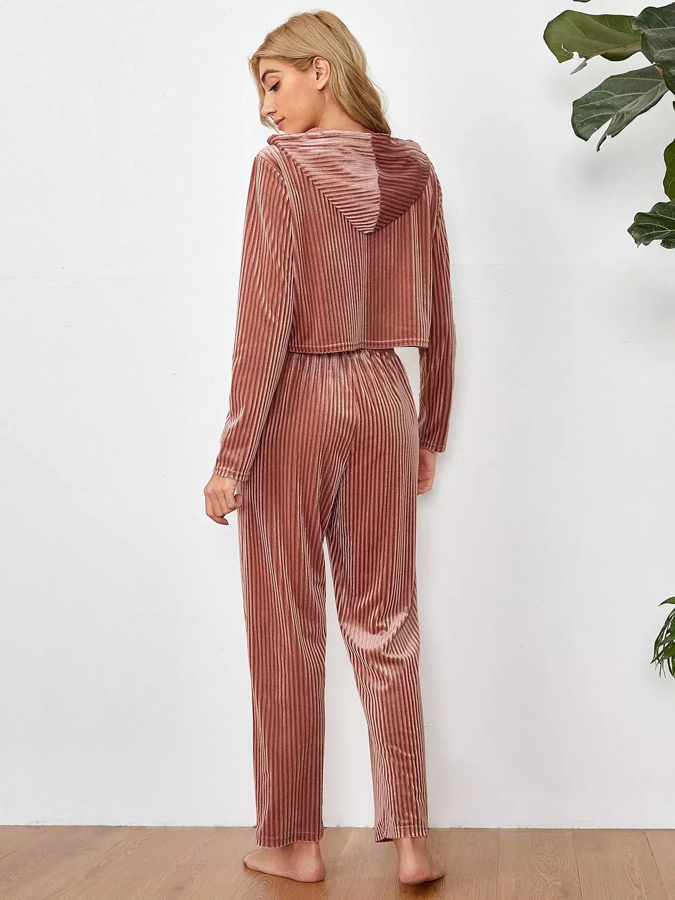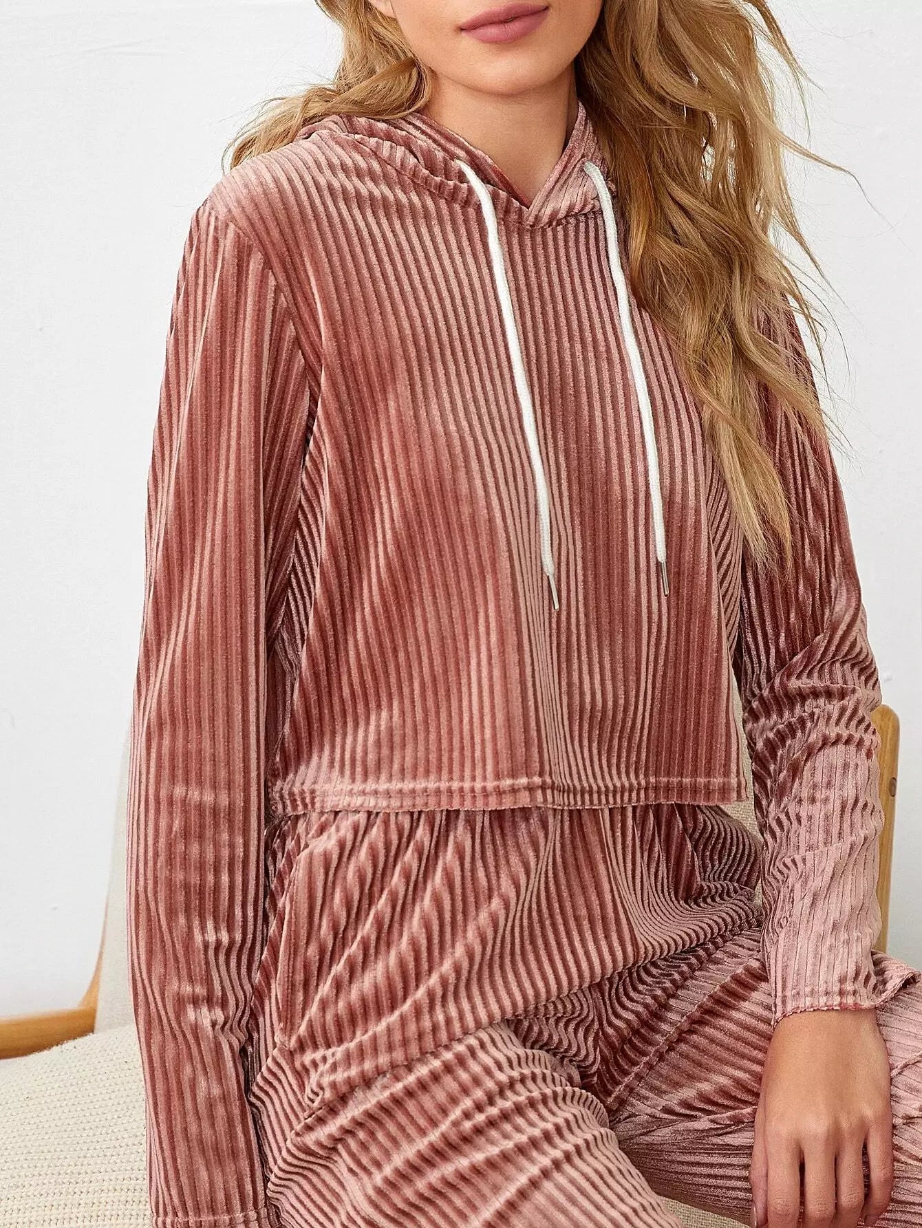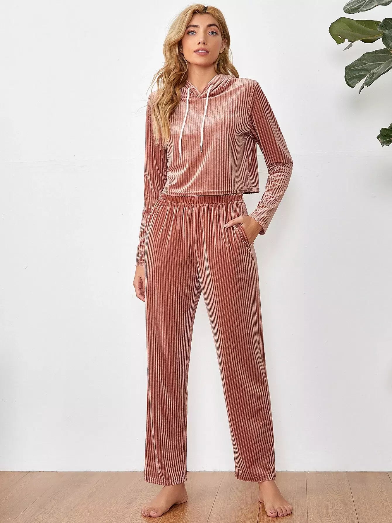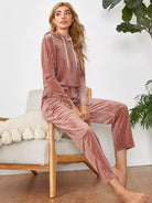 Drawstring Hooded Velvet Lounge Set