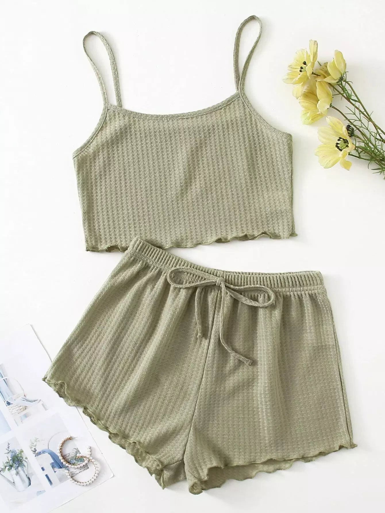 Lettuce Trim Knot Front Cami Lounge Set