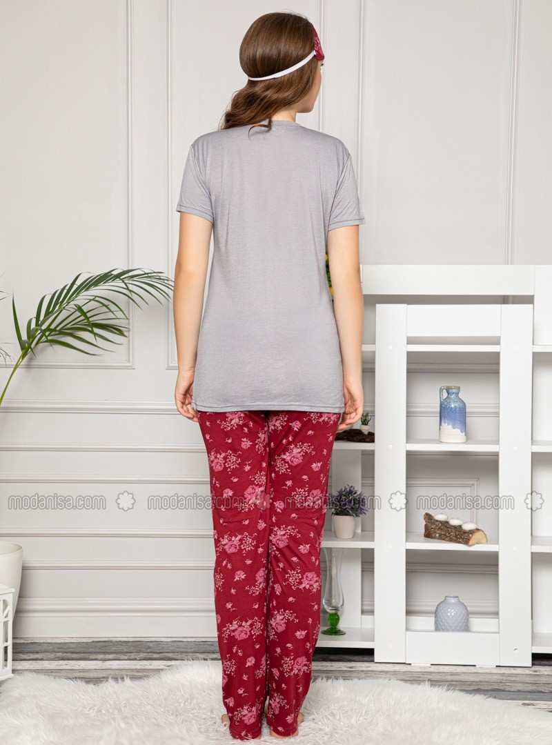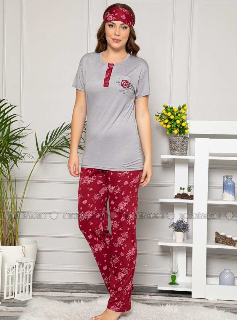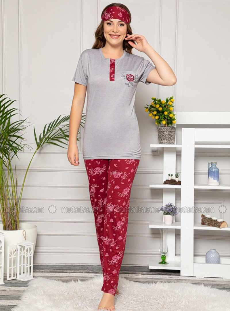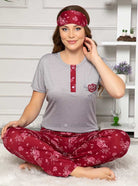 Maroon Floral Mink Crew neck Viscose Pyjama Set