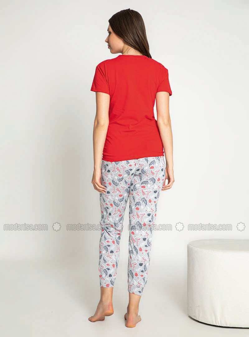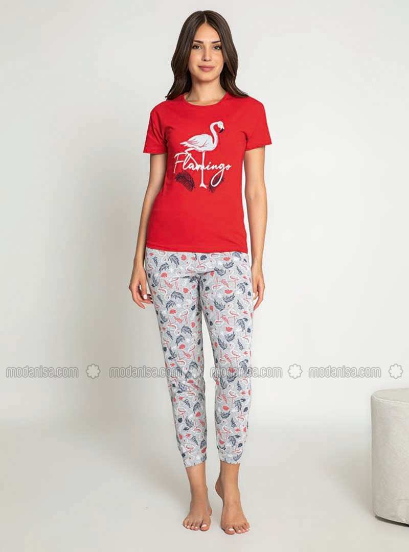 Red Crew neck Multi Pyjama Set