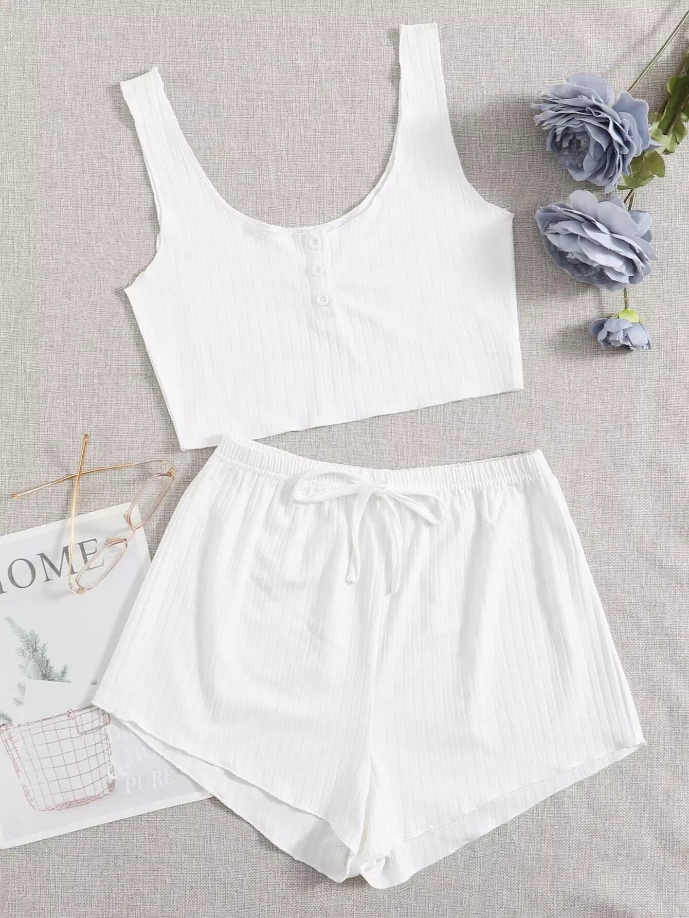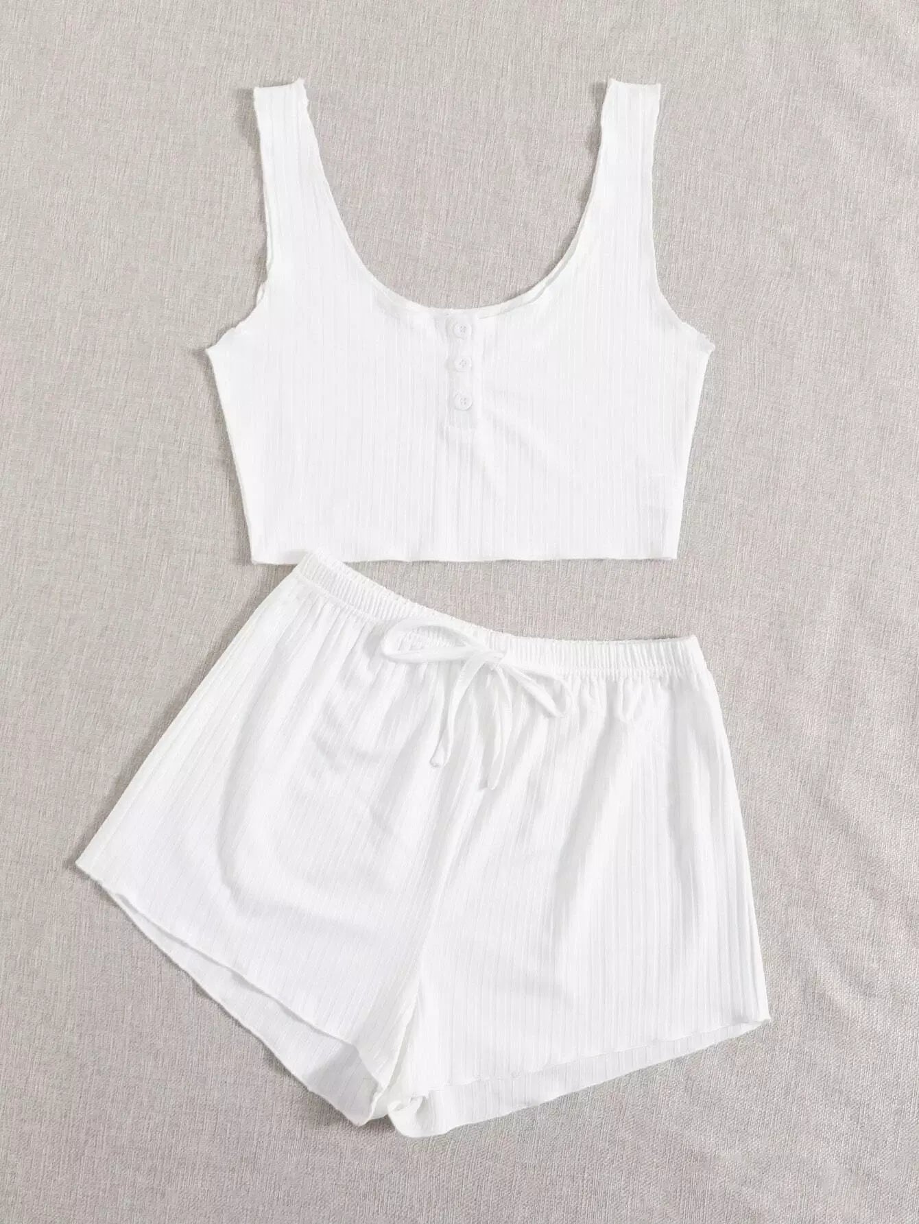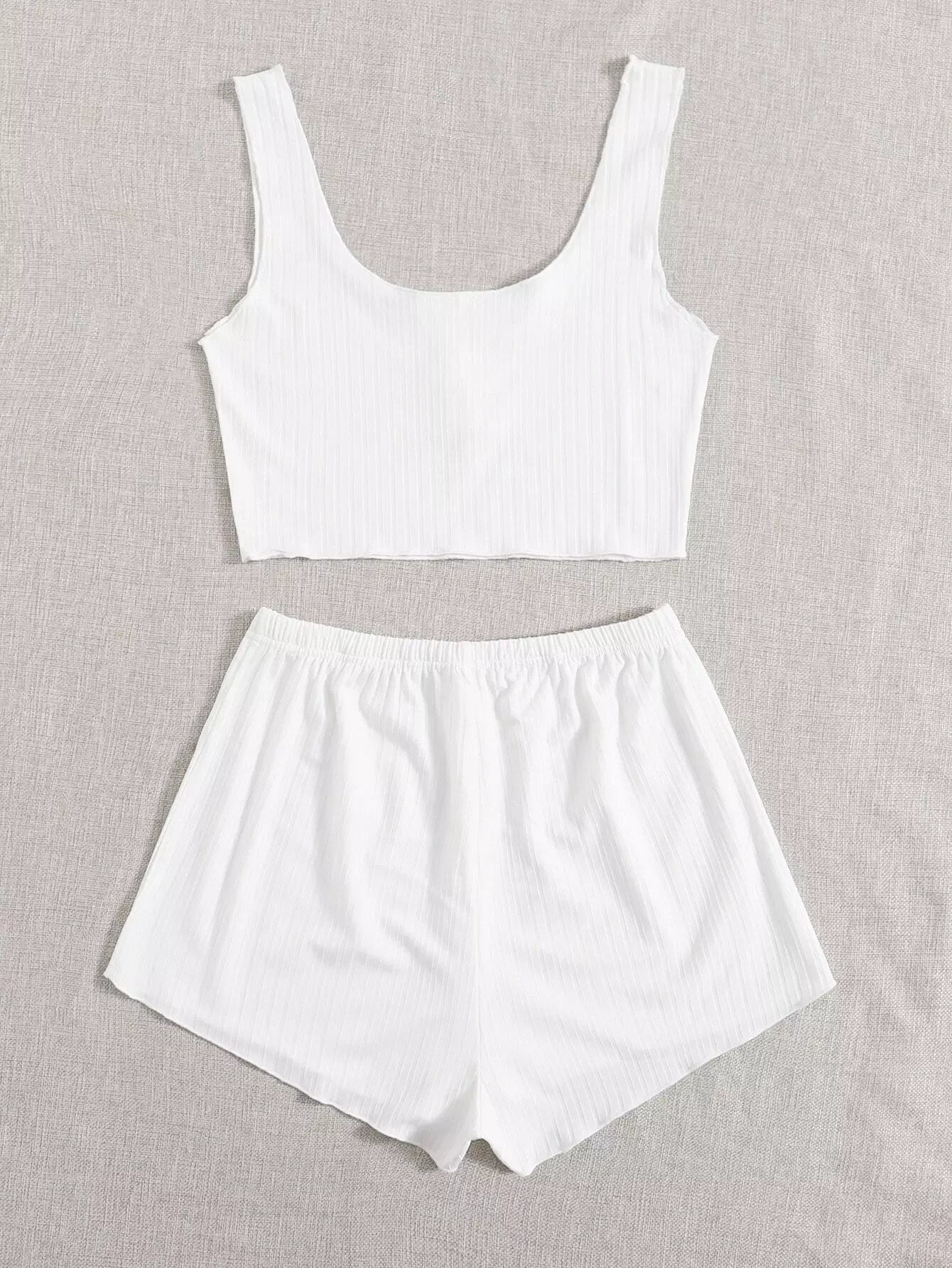 Rib Knit Crop Tank Top & Shorts Lounge Set